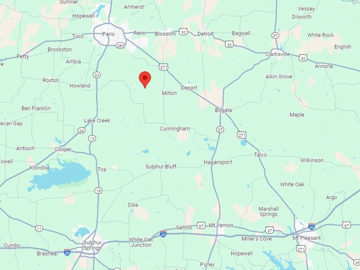 Location: Located 1 mile west of the small town of Clardy, TX in Lamar County. 8.3 miles SW of Pattonville, TX and 14 miles SE of Paris, TX. Just a 2 hour drive to the Dallas metroplex.