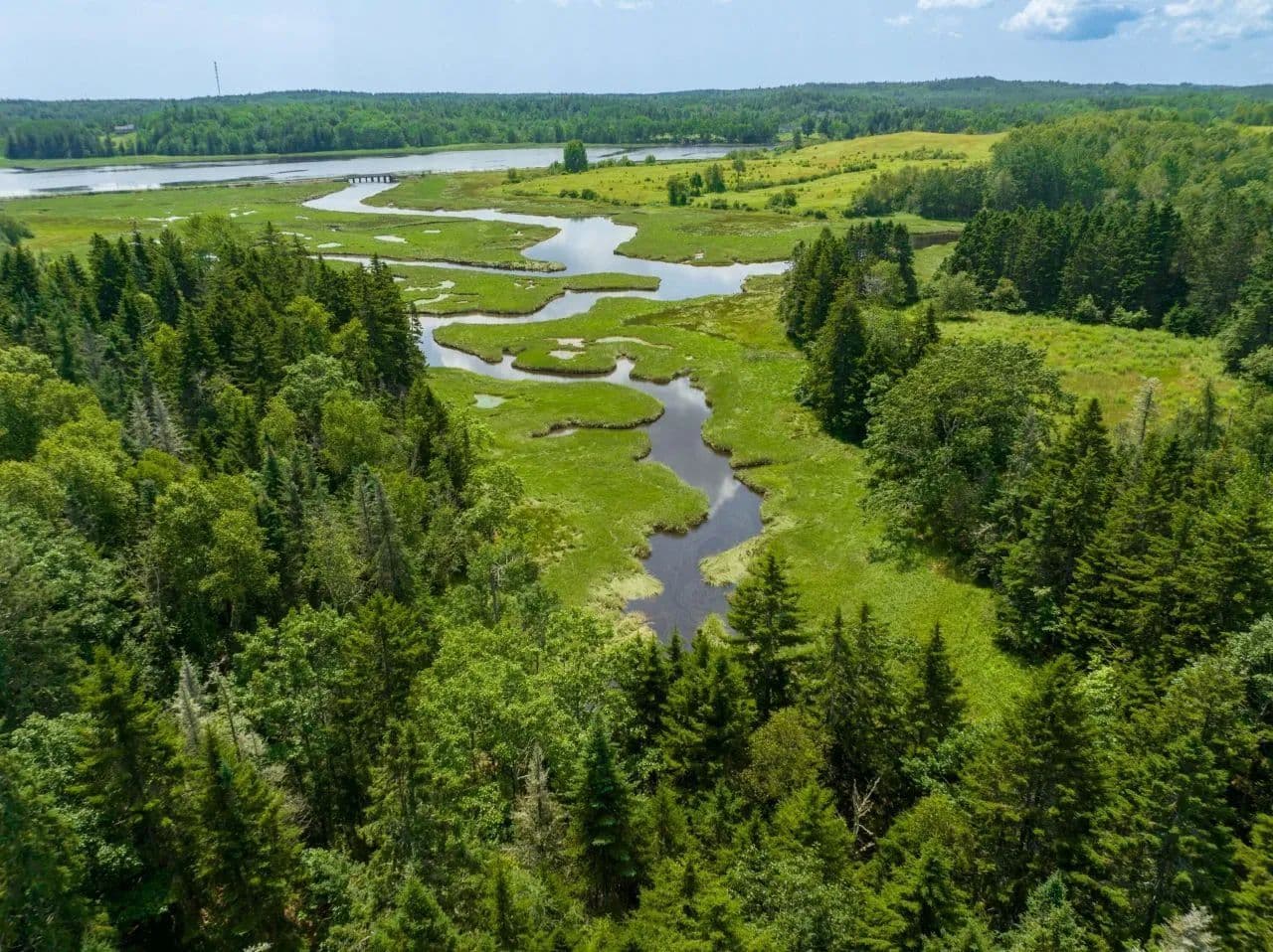 Waterfront: East Machias, Maine. Cleared building area with driveway and ready for your building project. Two combined wooded lots approximately 7.3 acres on the Machias River. Situated near Sunrise Trail (rails to trail along river) with easy access to amenities and on a paved public road with electricity at the road. This tidal waterfront attracts Maine's wildlife, water, land and air, and makes for a beautiful setting.