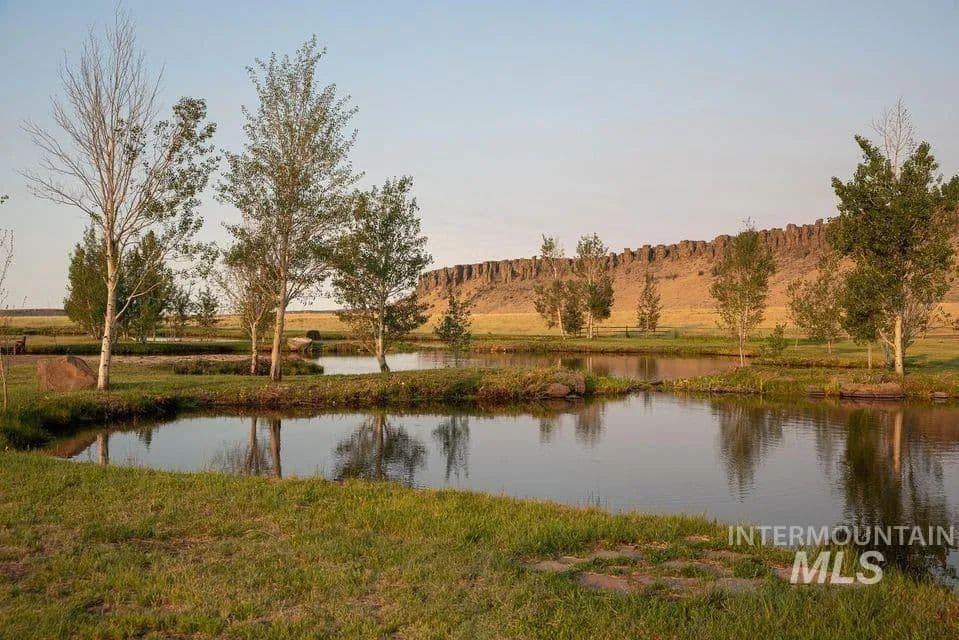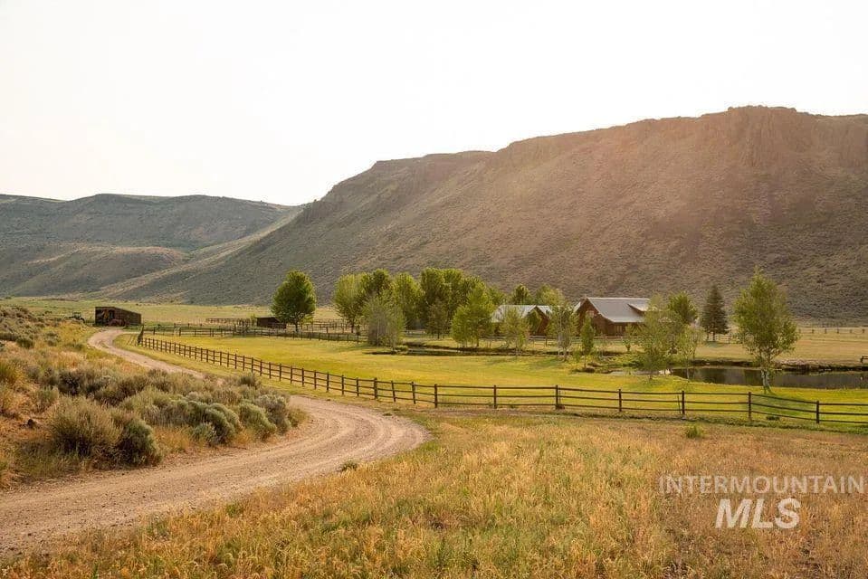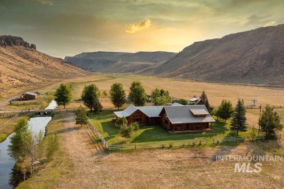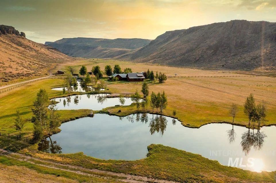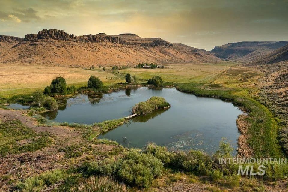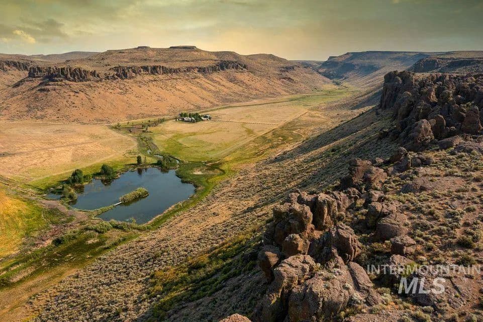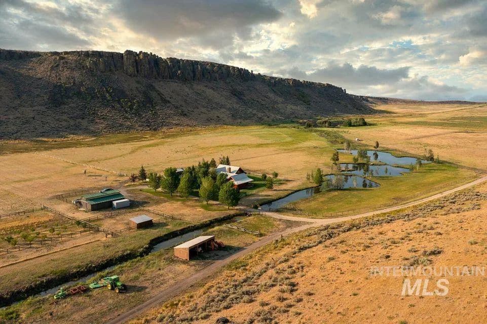 Gwin Spring Ranch is a 560 acre ranch tucked in a private rim rock canyon along the banks of Thorn Creek and bordered by BLM lands. 1 hour from Wood River Valley, the classic ranch improvements include a 3,820 square foot owners log cabin, a 1,000 square foot guest cabin, horse barn, storage building as well as farm equipment and a new solar system (installation scheduled for August 2021). Numerous spring fed ponds surround the cabin which creates a outdoorsmans paradise. Grazing and water rights included.