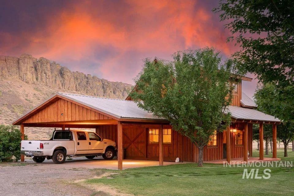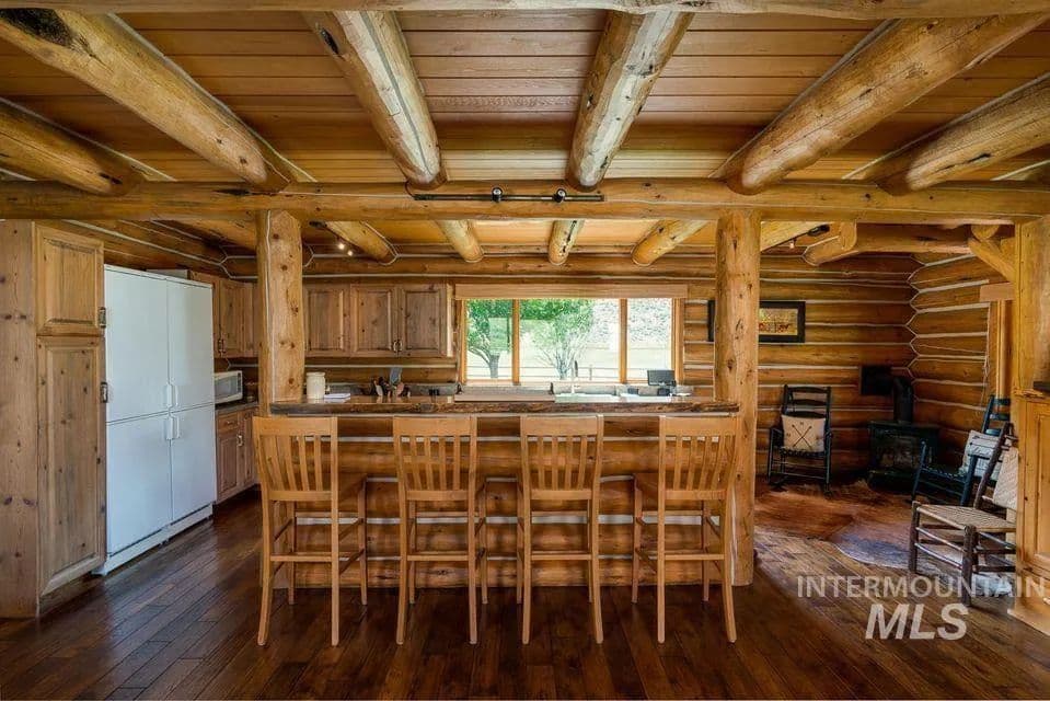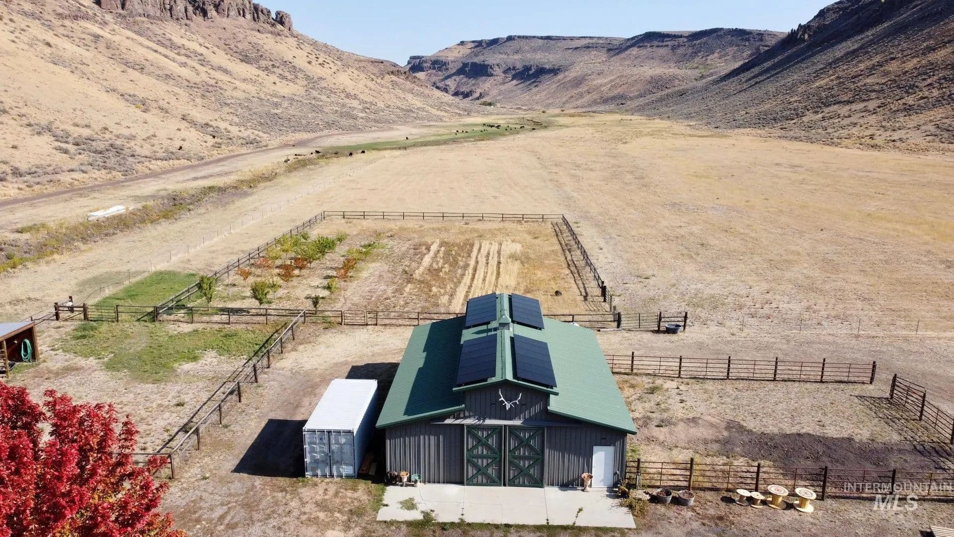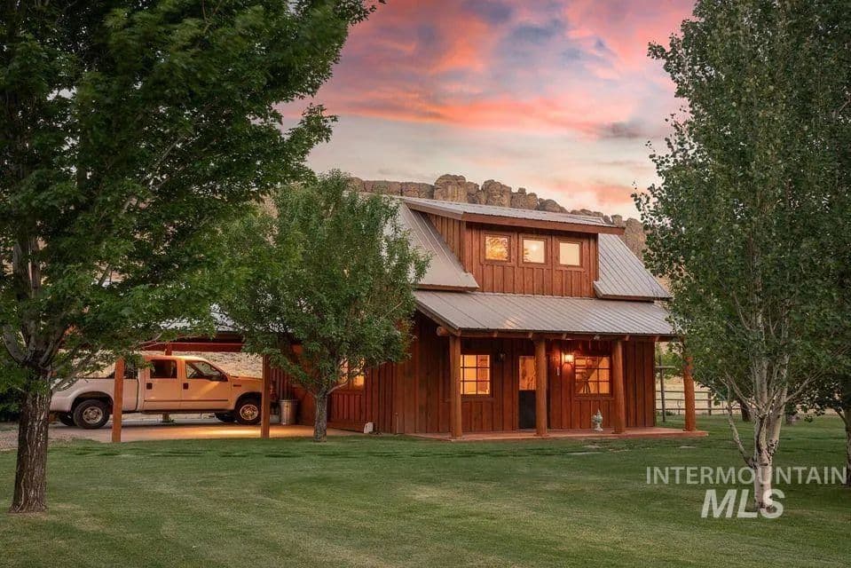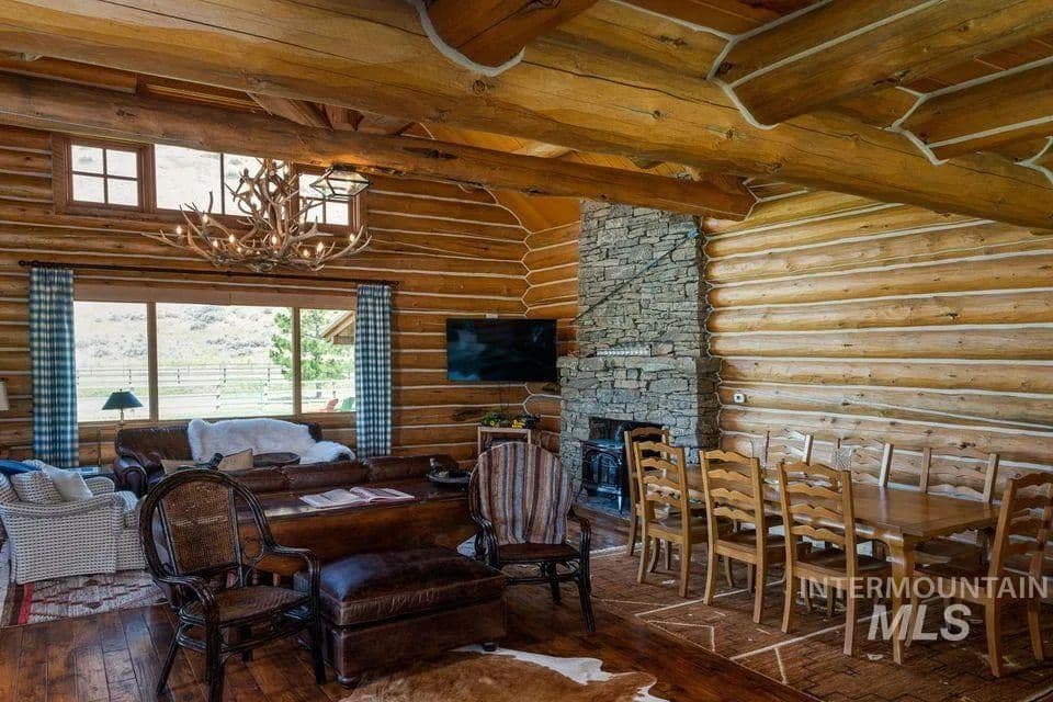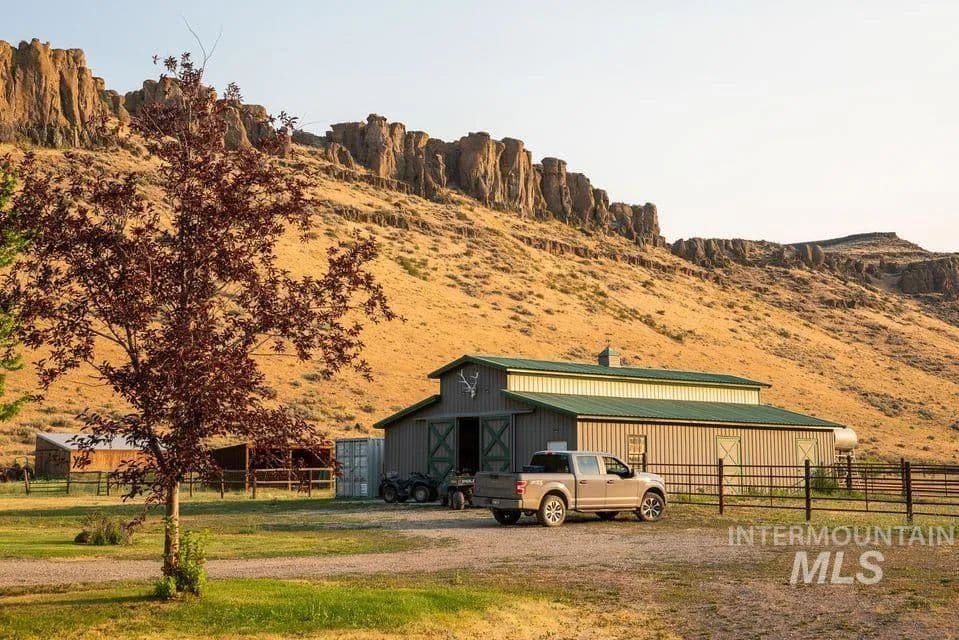 Gwin Spring Ranch is a 560 acre ranch tucked in a private rim rock canyon along the banks of Thorn Creek and bordered by BLM lands. 1 hour from Wood River Valley, the classic ranch improvements include a 3,820 square foot owners log cabin, a 1,000 square foot guest cabin, horse barn, storage building as well as farm equipment and a new solar system (installation scheduled for August 2021). Numerous spring fed ponds surround the cabin which creates a outdoorsmans paradise. Grazing and water rights included.