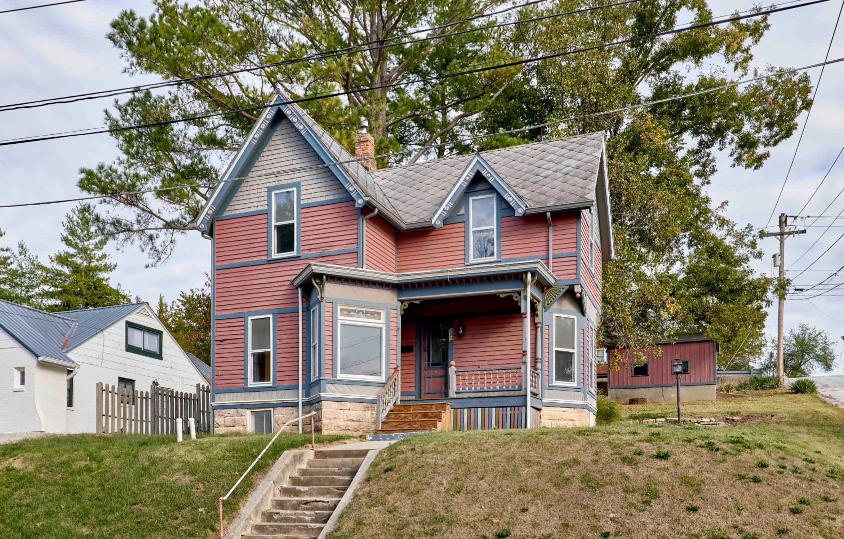 Step back in time with this charming Victorian-style two-story home, built in 1890 by a Missouri Riverboat Captain and nestled on a quiet hillside street just below the beautiful river bluffs in Hermann, Missouri. This historic gem features stunning original character throughout, including hardwood floors, stained glass windows, and spacious living areas with two living or great rooms perfect for entertaining or relaxing. A welcoming front porch offers a peaceful place to sit and enjoy views overlooking several of Hermann’s picturesque city streets. Offering four bedrooms and one bathroom, the home provides ample space and classic architectural details rarely found today. Outside, you’ll find a small tool shed and a playhouse in the backyard, adding extra charm and functionality. With great bones, rich history, and timeless style, this property is brimming with potential and just waiting for a new owner to give it a little TLC and make it shine once again.