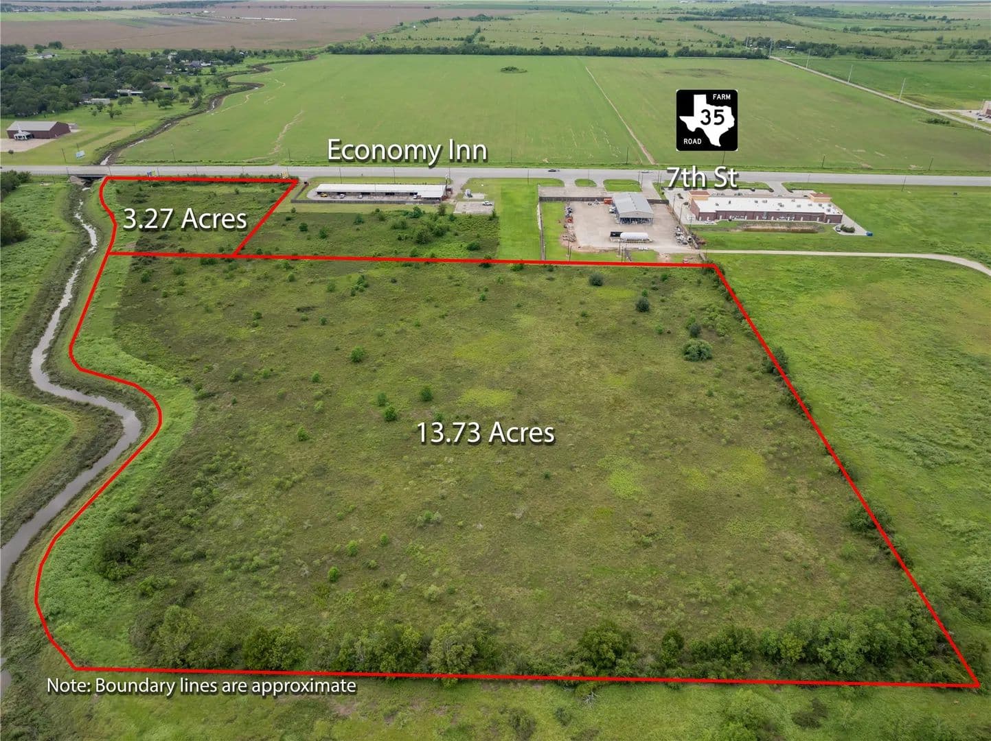The subject property is a 17-acre commercial land site located on State Highway 35, also known as 7th Street, between Cooperative Way and Ben Eva Drive. This expansive parcel is strategically located near major thoroughfares including Highway 60 and FM 457. Proximity to Bay City Regional Airport, Bay City Civic Center, Matagorda Regional Medical Center, nearby retail centers, restaurants, and services, enhances the property's attractiveness for various commercial uses. Additionally, the STP Electric Generating Station (nuclear power station), Tenaris Bay City and Chevron Phillips in nearby Sweeny, provide significant employment opportunities and economic stability to the area. Ideal for retail centers, office parks, hospitality, or mixed-use developments, this land offers high visibility and easy access. The property is uniquely situated with the front lot falling under Bay City's jurisdiction, while the back lot extends into Matagorda County's jurisdiction.