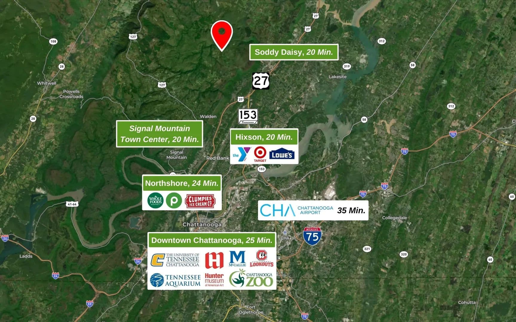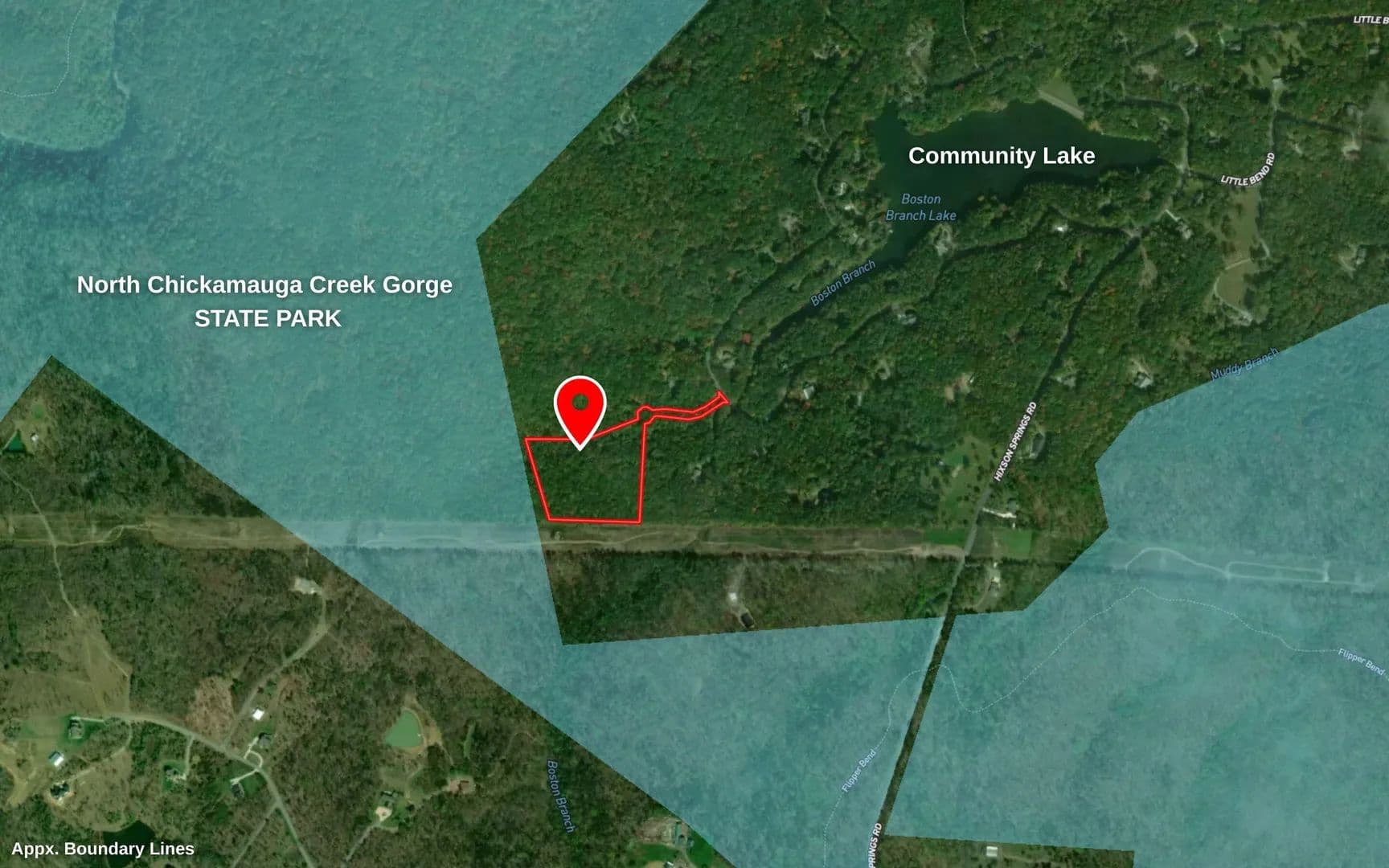 OVER 8 ACRES BORDERING A STATE PARK! Located atop Signal Mountain, the sought-after BOSTON BRANCH community hosts a gated entrance, native flora and fauna, and a stocked 17+ acre lake. North Chickamauga Creek Gorge State Park surrounds the Boston Branch community, providing nearby access to scenic hiking trails, gorges, and 6,000 acres of protected land: an outdoor lover's dream. This is the idyllic setting to pick up hobbies like birdwatching, woodworking, gardening...or to simply enjoy the elbow room. 8.3+/- acres with utilities available at the street. Survey and soil test completed - just bring your house plans! Zoned for award-winning Signal Mountain schools. Despite the private location, you're less than 30 minutes from the heart of Signal Mountain with local favorites like Pruett's Grocery, The Bread Basket, and Signal Mountain Golf & Country Club. Hwy 27 and Hwy 153 are only 15 minutes away via Roberts Mill Rd. Easy access to Hixson, Northshore, and downtown Chattanooga within 25 minutes. Don't miss the rare opportunity to build your mountain home in one of the most beautiful communities. Schedule your private showing today! (Any and all property lines on photos are simulated and are approximate. Some images may be virtually staged. Buyer is responsible to do their due diligence to verify that all information is correct, accurate and for obtaining any and all restrictions for the property deemed important to Buyer.)
