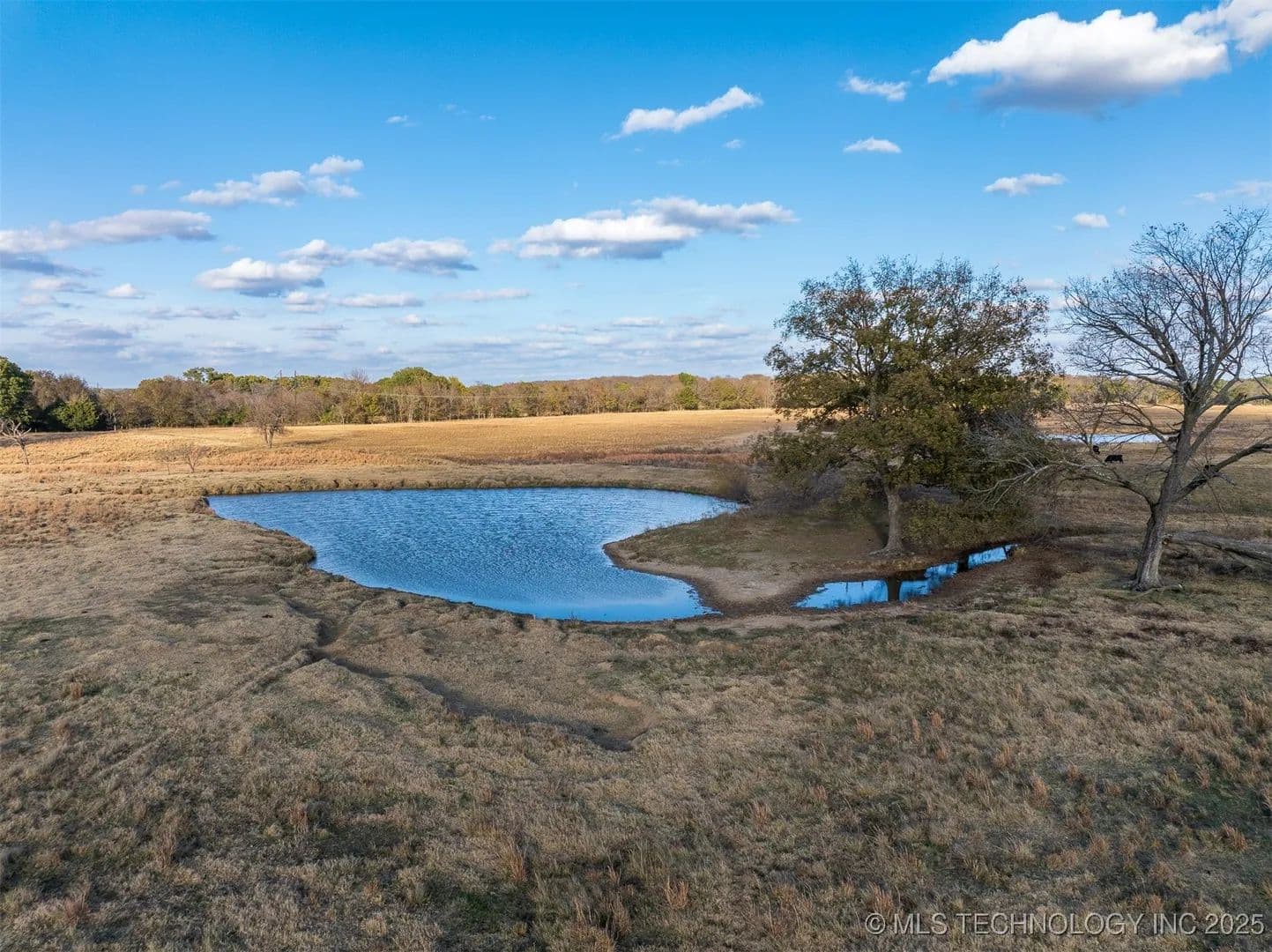 Two ponds and a creek run through the property, giving it a natural water feature setup that’s increasingly hard to find. The western property line is lined with mature trees, creating both privacy and shade while still keeping the majority of the acreage open and fully usable. With proper planning, this property could support livestock, a hay operation, or recreational use with room to add trails, food plots, or a shop and barndominium.