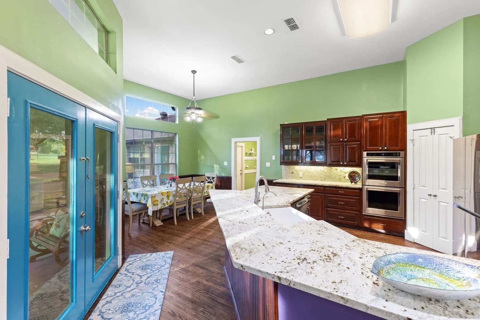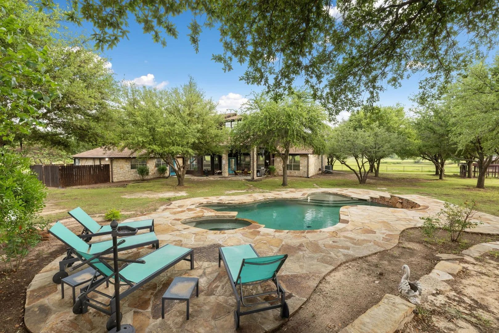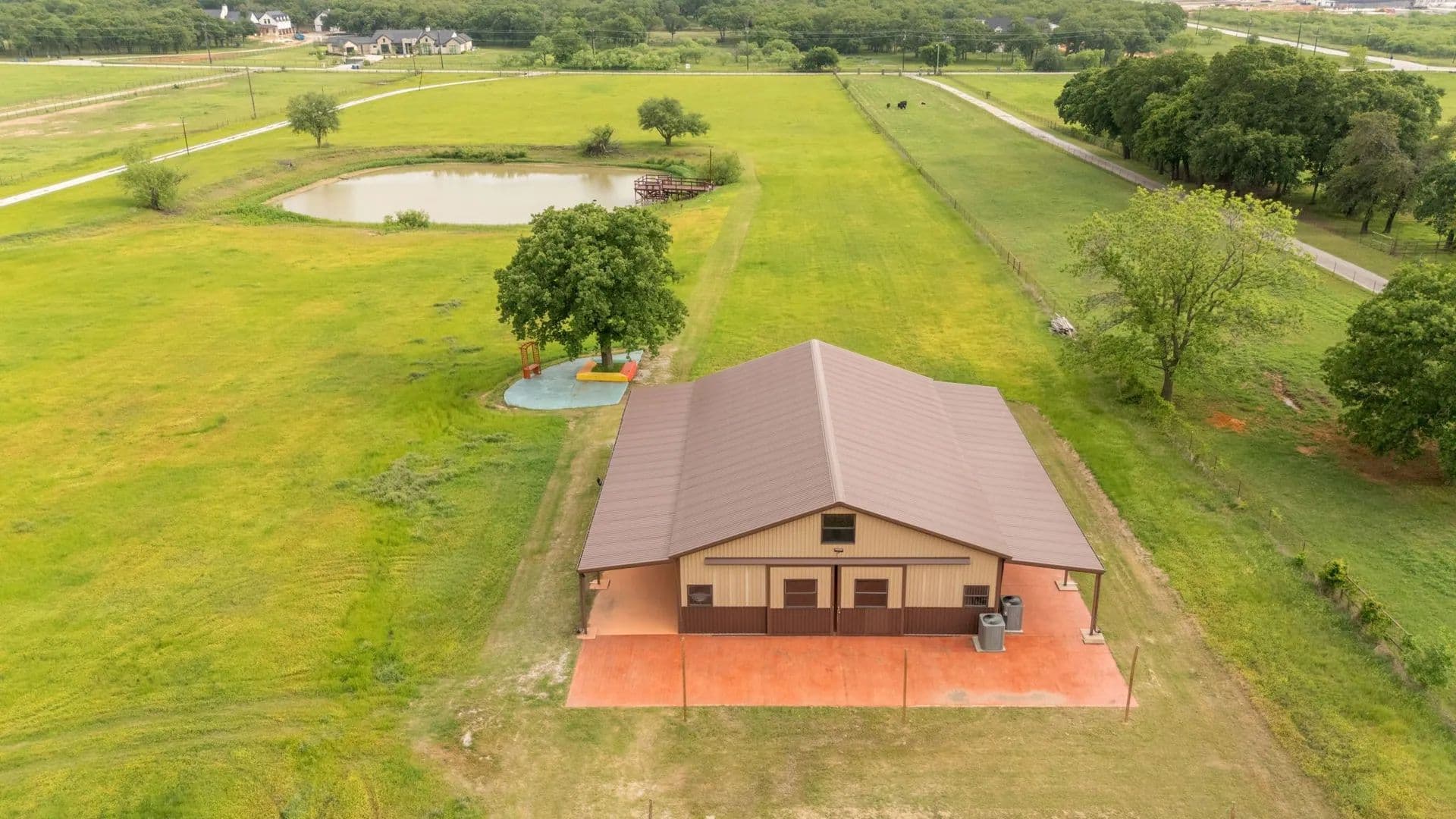Welcome to Kava Ranch – A Private Oasis in the Heart of Argyle Welcome to your private ranch retreat on 12.54 acres in sought-after Argyle—where modern upgrades meet timeless charm. This fully renovated 4,397 sq ft home offers both convenience and tranquility. Inside, you’ll find 4 spacious bedrooms (2 bedrooms downstairs, 2 bedrooms upstairs with ensuite bathrooms), 4 bathrooms, a dedicated office with a built-in 250-gallon fish tank, and a large family room featuring high ceilings, hand-scraped wood floors, and wood fireplace add character and warmth throughout. The gourmet kitchen is a chef’s dream, complete with premium appliances and elegant finishes. The luxurious primary suite includes a spa-like bathroom and a generous walk-in closet. Step outside to unwind by the sparkling pool or host unforgettable gatherings in the air-conditioned party barn—complete with a bar, kitchenette, and wine cooler. Perfect for animal lovers, the property includes loafing sheds, a chicken coop, and multiple storage buildings all with picturesque views of the pond. Additional features: 3-car garage, in-ground storm shelter, energy-efficient LED lighting, and a Trinity aquifer well for irrigation.
