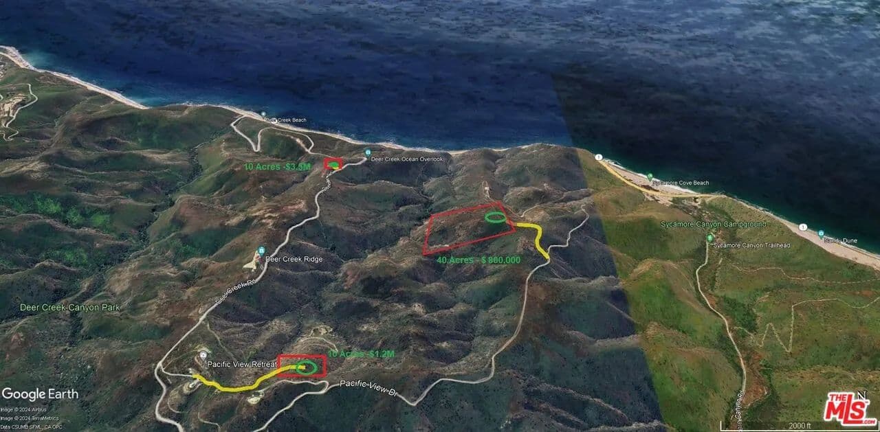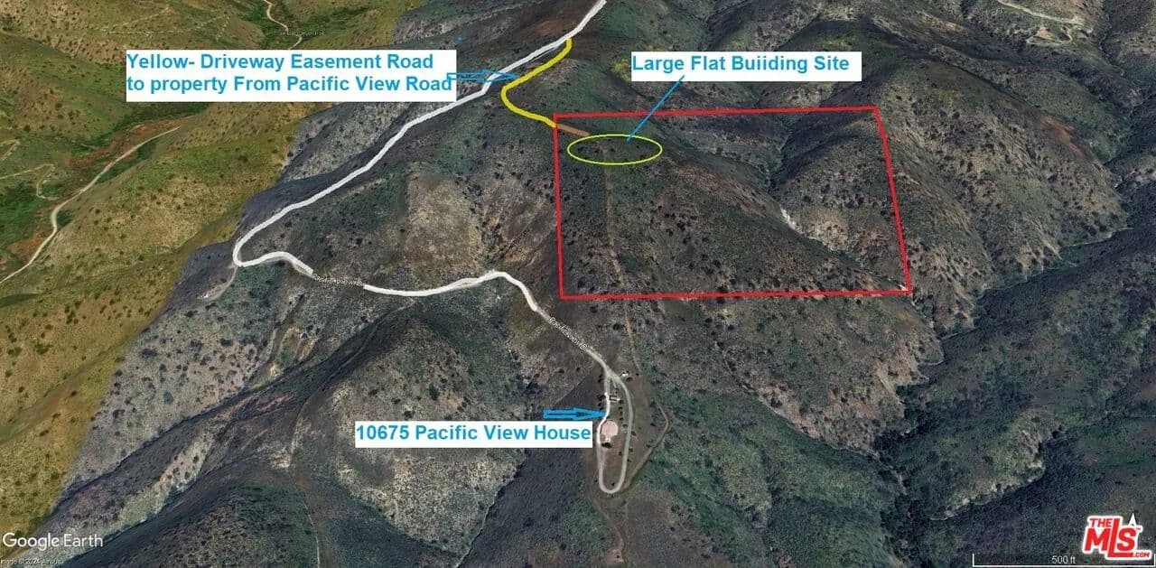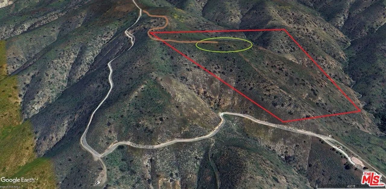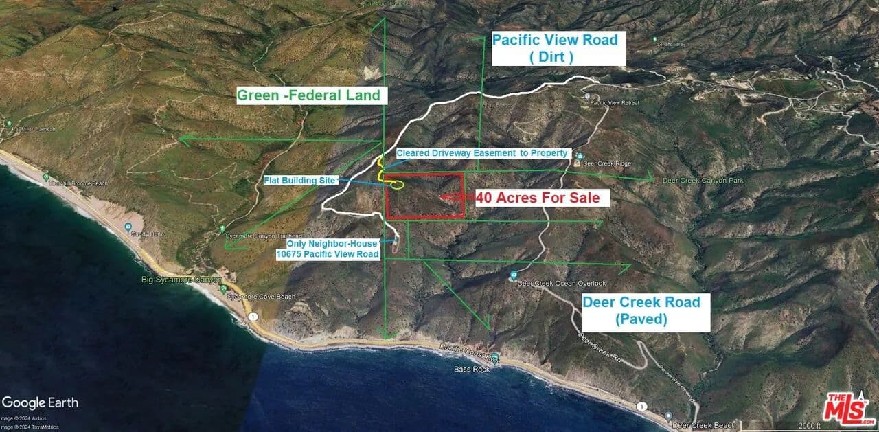Ultimate Spectacular Ocean View Malibu Mountain Top Estate Lot - 40 Acres ! Incredible forever views of coastline, whitewater and Islands in every directions . Private Retreat Site with three sides of this property bordering thousands of acres of Federal Land to the ocean with only one neighbor 1/2 mile below property . Huge flat building site with insurable easement access driveway to property off of Pacific View Road. Driveway to building site was recently cleared of weeds and easy to walk on to view property. Located approximately 4 miles from PCH with 3 miles of paved roads and 1 miles plus of graded roads to property driveway. There are no reports or studies yet completed on this property. When developed this will be a 10 to 20 million dollar or more estate property.