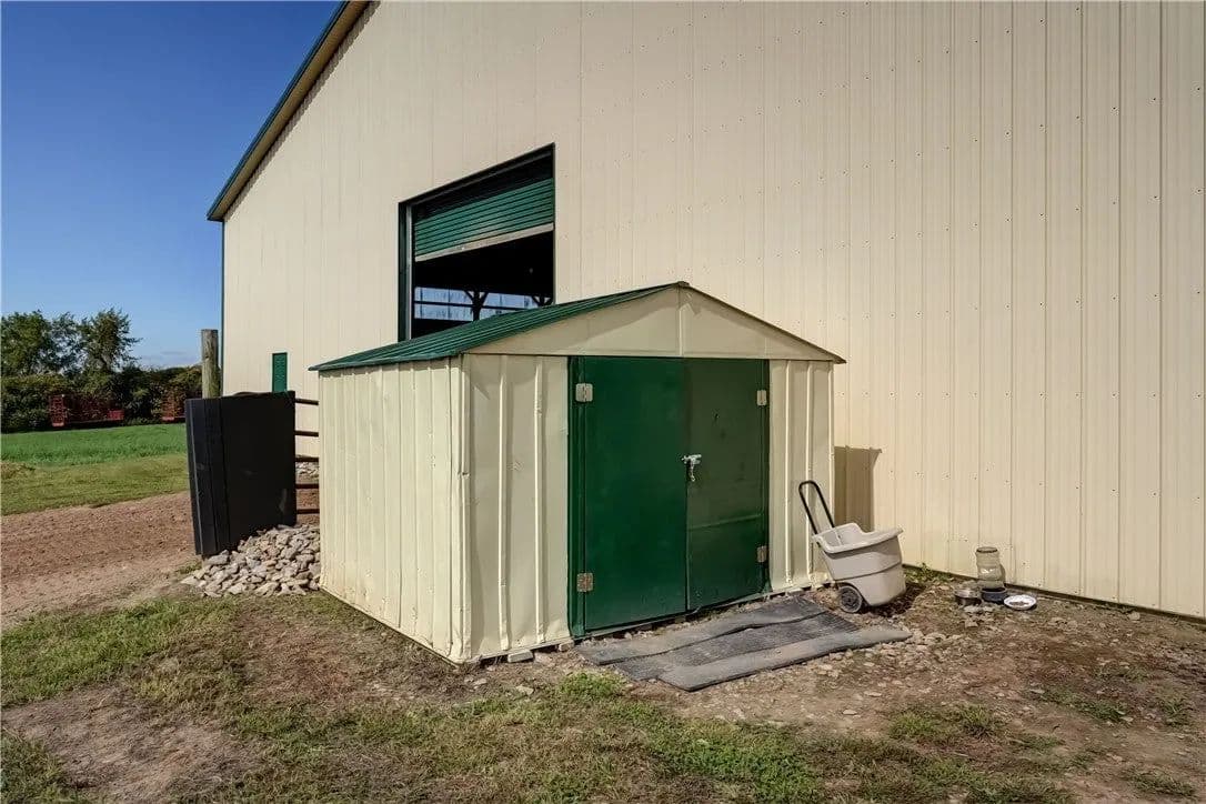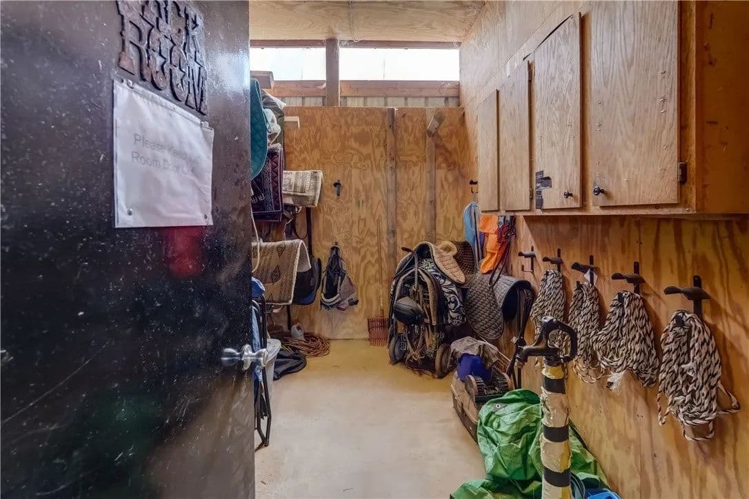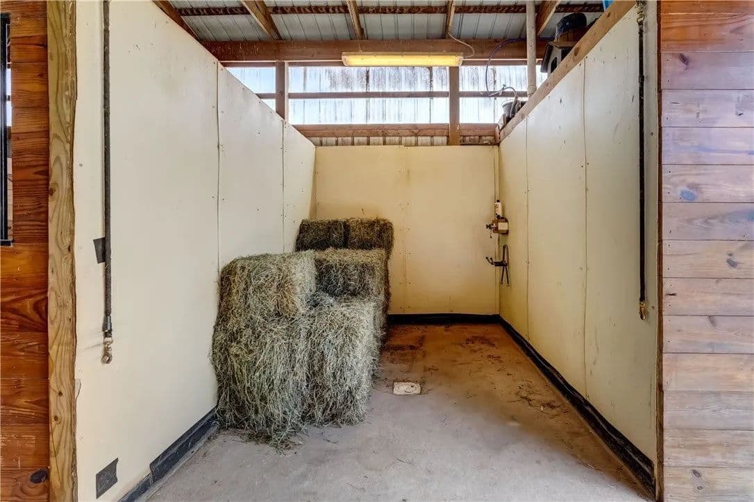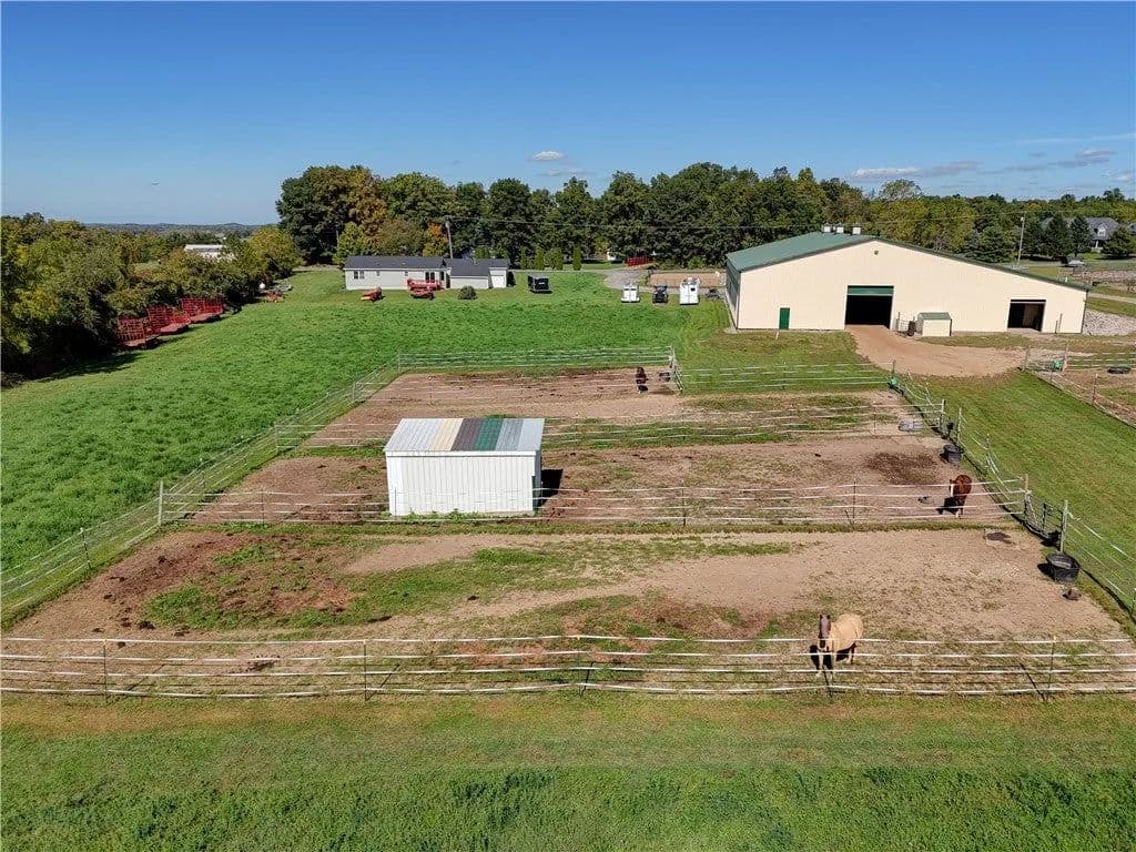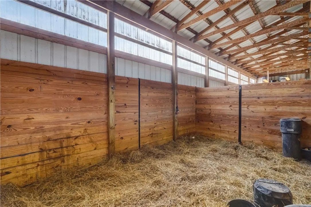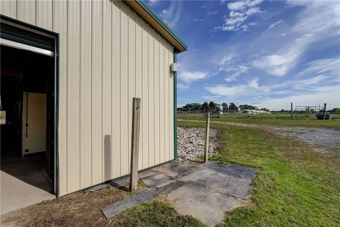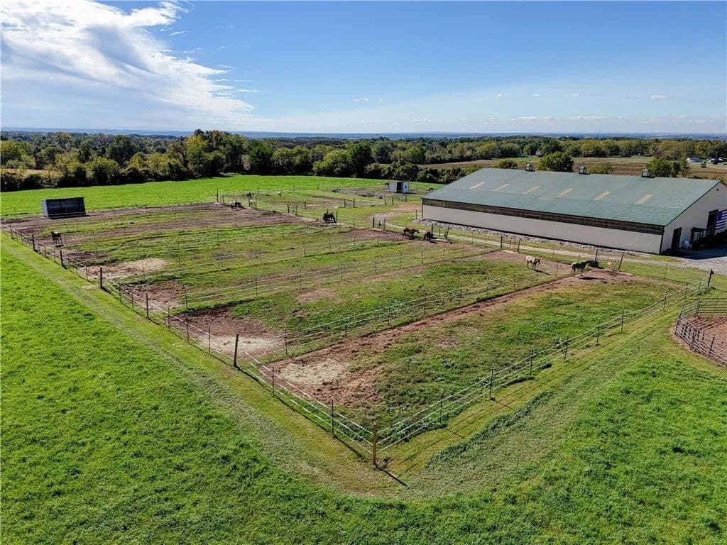 Built in 2009. 13.25 acres. (with additional 5 acres to be attached to the 13.25) Income producing facility currently at 88% capacity with a waiting list. 144x 114 indoor arena with 8" base consisting of sandy loam footing. Outdoor arena 90x180, also 60-foot round arena for lunging both consisting of 8" base of sandy loam footing. 12 indoor stalls: 12' by 10' tongue and groove, polyurethane, matted stalls with automatic thermostatically controlled in-stall waterers. 14 outdoor paddocks 40ft by 150ft with access to 220-amp electrical outlets. Indoor overhead arena watering system on a timer for dust control. Indoor Wash Bay, hot and cold-water spigots. 10ft by 12ft Heated 6ft by 12ft Bath with utility sink and HOT/Cold water. Overhead storage space. Tack room with 18 saddle holds with overhead storage 8x12. Heated judging booth, with timer in loft above arena. PA system. Hay loft above stall area accommodates 800 bales 8ft by 104ft. 4 wireless Nest Bluetooth Cameras on premises. 2 of 10ft by 20ft Runs. In Sheds that can accommodate 4 horses outside, 2 horses in each. Energy efficient LED and skylights both overhead and side walls provide natural lighting for the HORSE-RIDING ARENA and HORSE STALLS. Septic system with 1,000-gallon tank back corner of arena. Property is equipped with generator hook up, (generator not included). Public water, 200-amp service. All stalls are 12x10 and have slide-out walls that can be easily converted to foaling stalls, so they become 12x20. 5 Roll up overhead doors with remote control. (2 are 14ft, 2 are 10ft, 1 is 7ft). Wi-Fi is free NYSIS. Laser locator for barrels. Open free span 15,000 SF arena. Arena is 18 feet to rafters with ample room for Equestrian hunter/Jumpers, Dressage, western pleasure or barrel racing/Gymkhana. Also, Tractor trailer accessible. Outside Dusk to Dawn lighting. Horseshoe gravel driveway with ample trailer/vehicle parking. Access to local trail system from barn. Feed/storage shed 8 ft by 12 ft. 9.25 acres consist of tillable timothy and alfalfa mix. Barn roof refurbished 2024. Timer with digital display output. House and Horse Barn ea have attached leach fields for septic system.