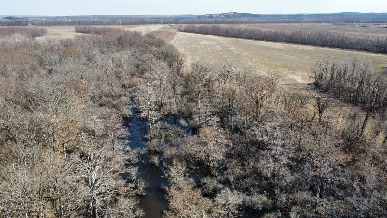 Approximately 68± acres located just west and north of Pinnacle in West Little Rock, Arkansas, offering a rare combination of recreational, agricultural, and riverfront features. The property includes approximately 7± acres of bottomland hardwood timber on the west side, with a duck blind that is subject to seasonal flooding.