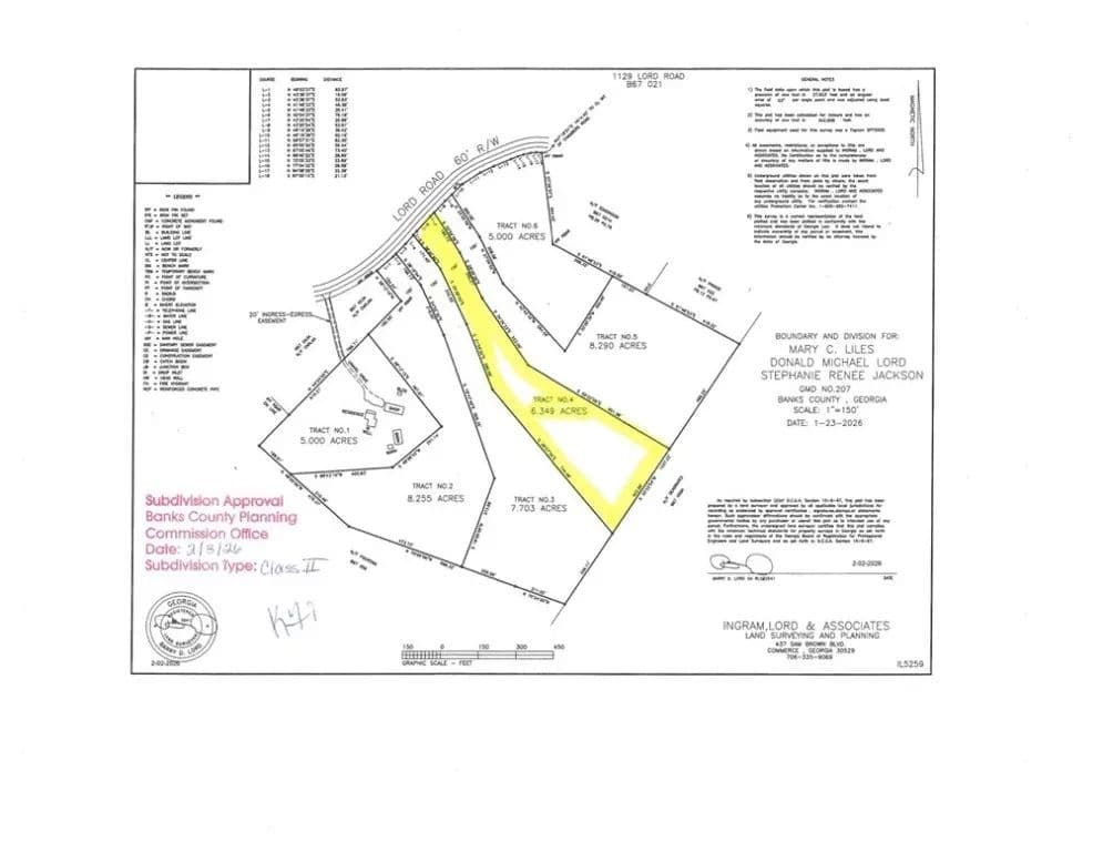 Tract #4 on Lord Road offering a great opportunity to own acreage in Banks County. An approved preliminary plat is attached, with recording currently in process with Banks County. This tract is part of a larger parcel being divided, offering space and flexibility for a future homesite while maintaining a rural setting with convenient access to Commerce and surrounding areas.
