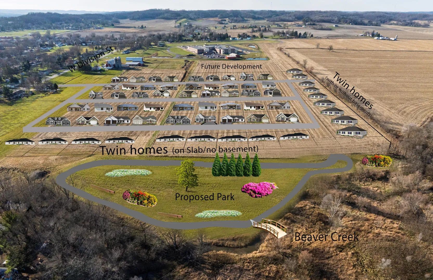 Exceptional development site ideally located in a thriving residential area minutes from downtown,local schools, hospitals, & Municipal Golf Course. 33 (plus or minus) acre parcel (final acreage to be confirmed by surveyor prior to closing) offers a strategic blend of accessibility & natural beauty, w/ the Beaver Creek meandering through the property-- ideal for a community park or scenic walking trails. Located in the Town of Sparta's extraterritorial jurisdiction. eligible for annexation w/ water & sewer laterals already extended to the property & full utility access along Division Street. Conceptual map (s) included in documents and/or photos, SELLERS ARE OPEN TO REVIEWING DEVELOPERS CONCEPT/DESIGN IDEAS. Opportunity for additional acreage may be considered under favorable terms.