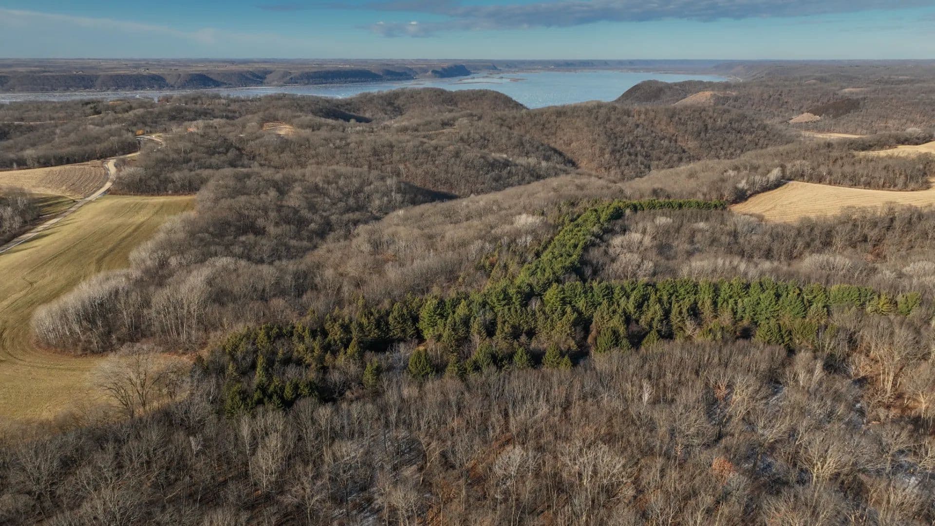 You’re looking at a stretch of Driftless Wisconsin that flat-out stirs the soul—the kind of ground that makes you slow down at the gate, take a deep breath, and realize you’ve just found something special. This 128+/- acre recreational sanctuary in Crawford County sits just minutes from the mighty Mississippi River, tucked into a landscape of cascading bluffs, deep sweeping valleys, and timbered ridgelines that define the very best of southwest Wisconsin.