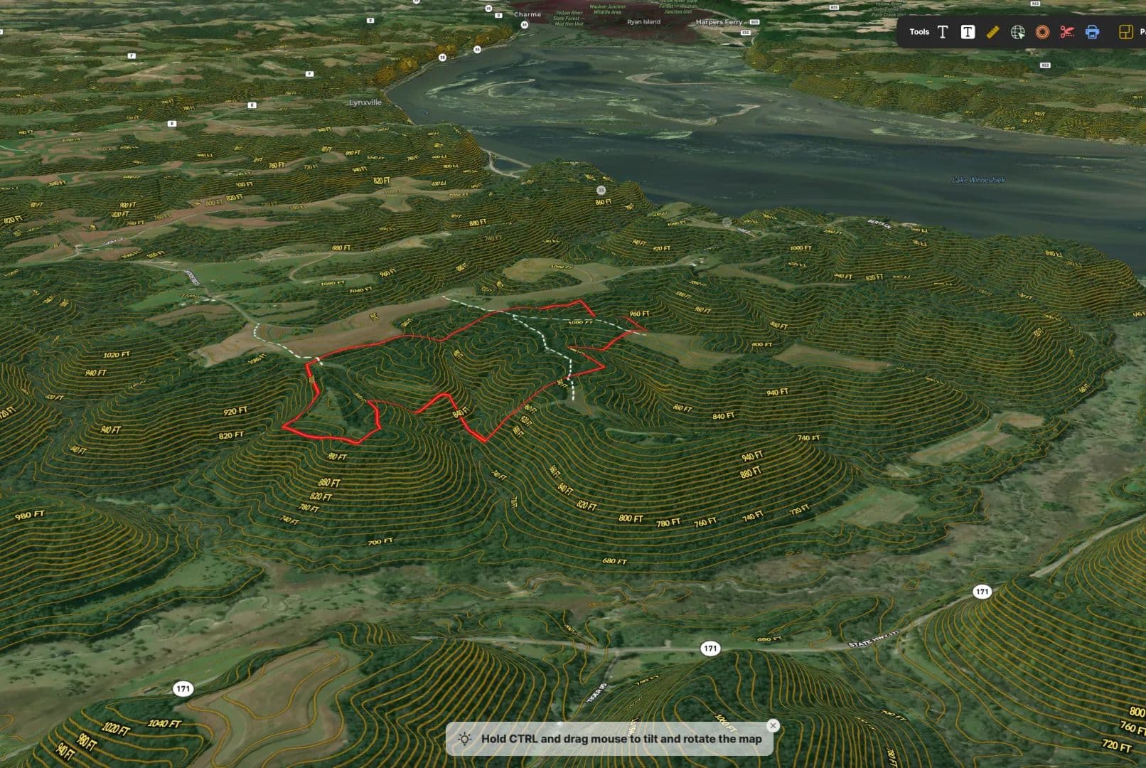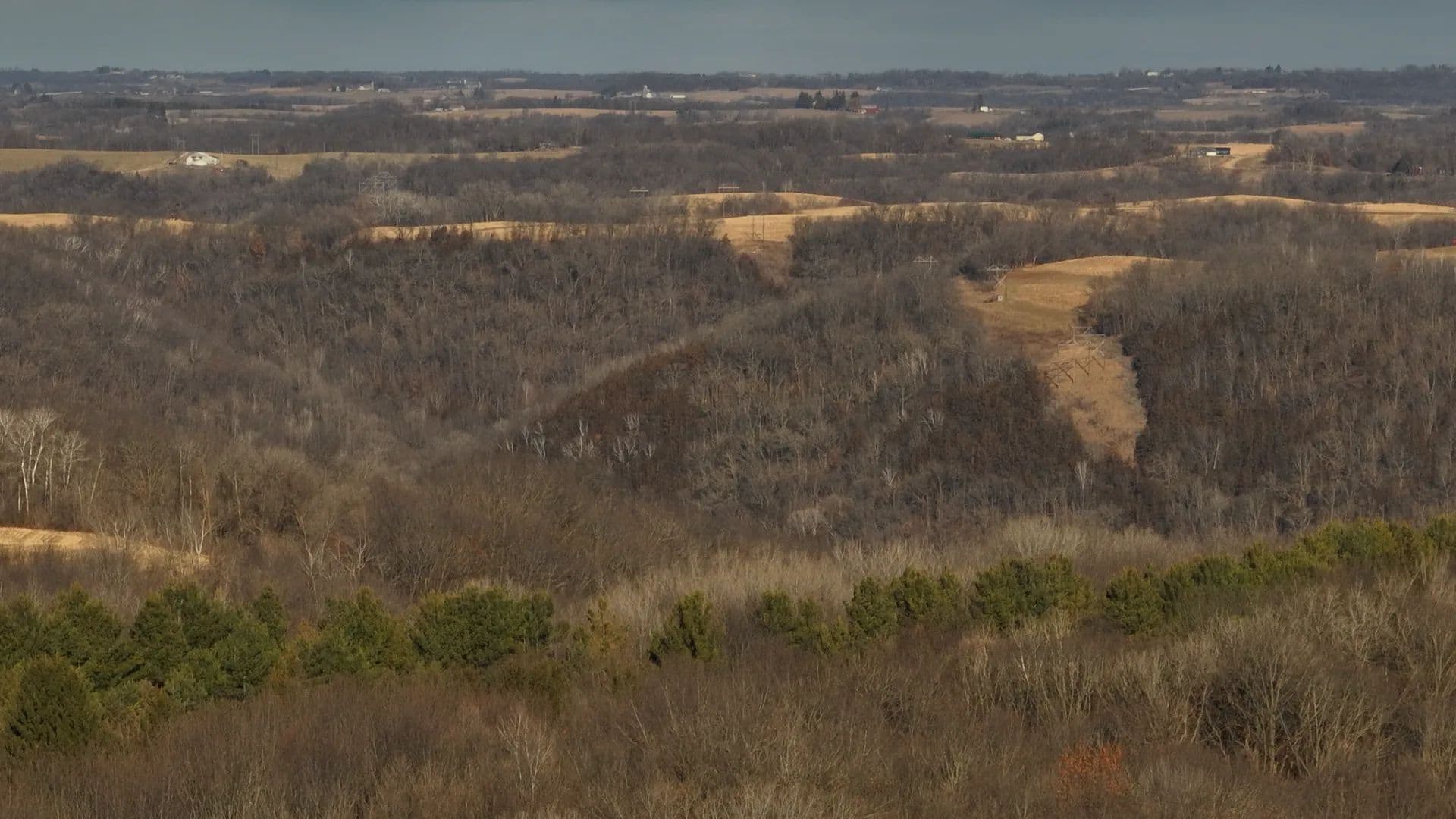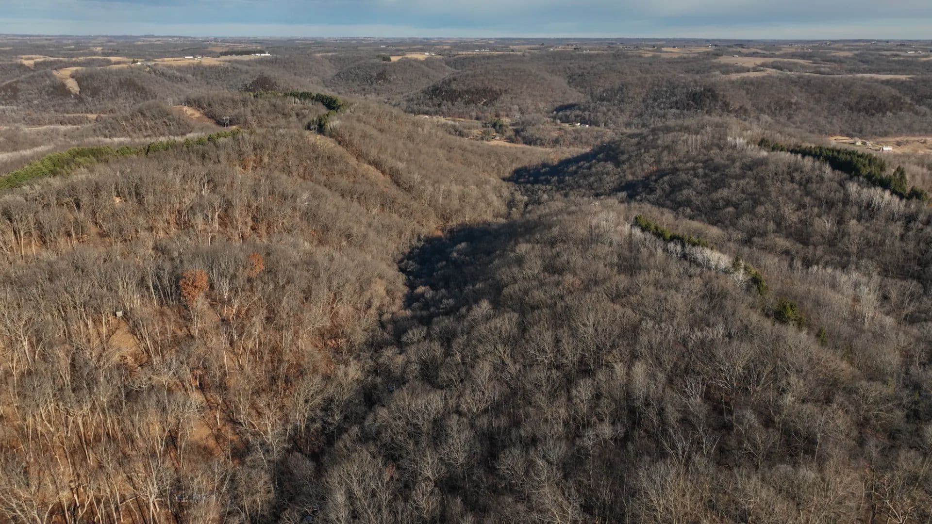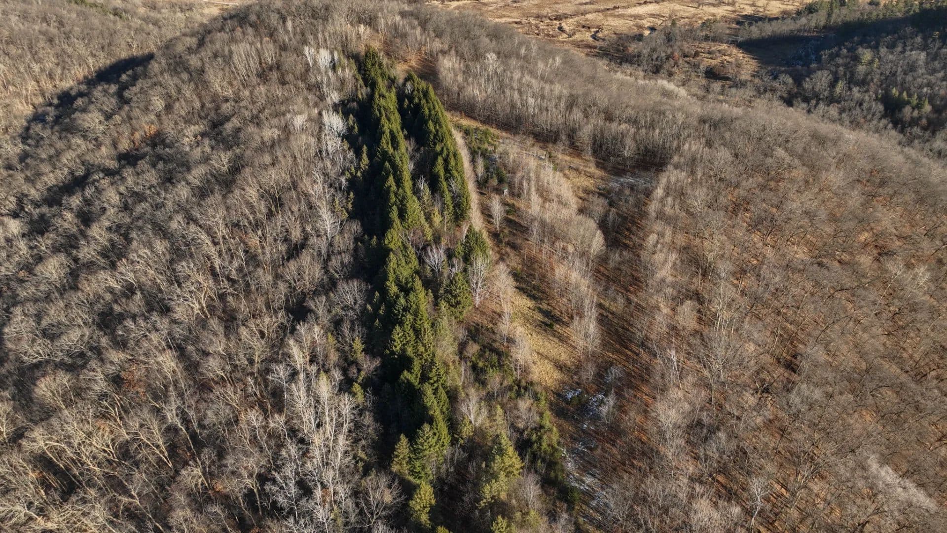 The land itself is classic Driftless magic. Four dominant ridge systems roll outward into a maze of timbered fingers, side-hill benches, and subtle saddles that funnel wildlife with surgical precision. These aren’t random crossings—they’re generational travel routes etched into the hillsides over decades of use. Deer trails carve through the ridges like cattle paths, converging in predictable pinch points that set up beautifully for early-season patterns, peak-rut cruising, and late-season food pushes. This is a property that hunts well in every phase, year after year.