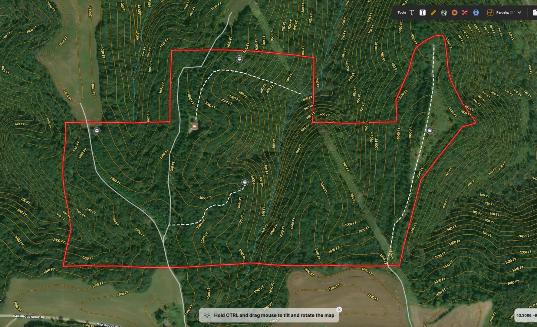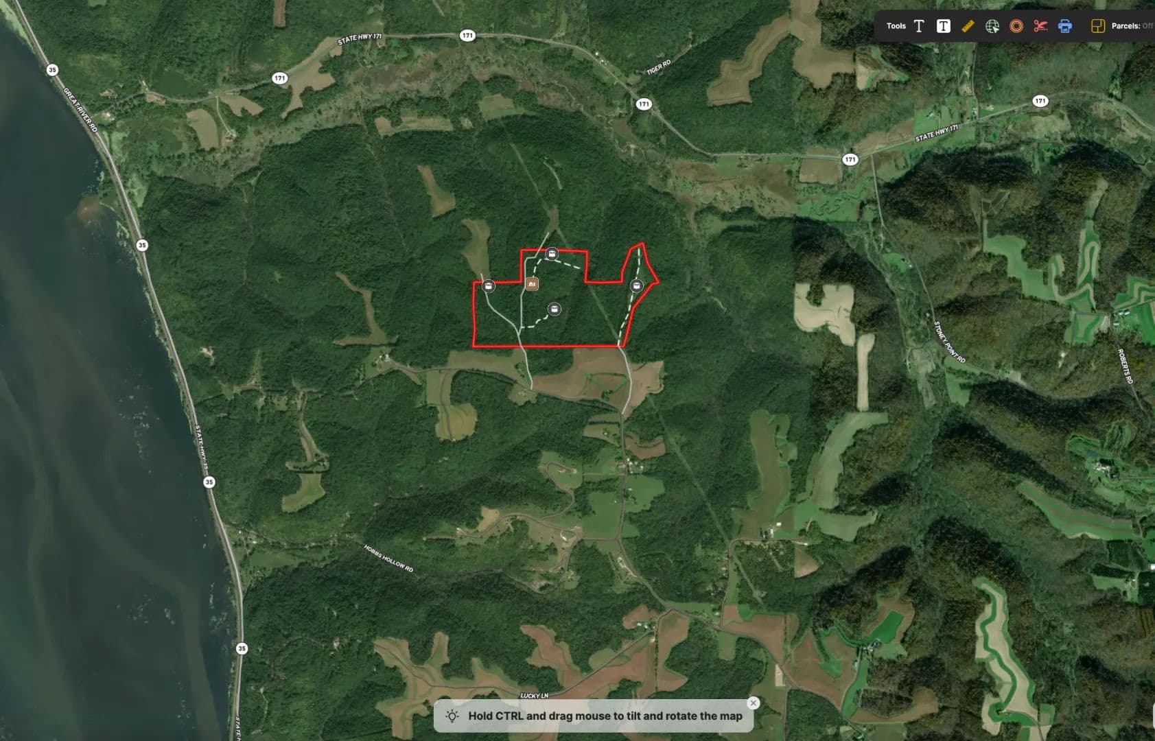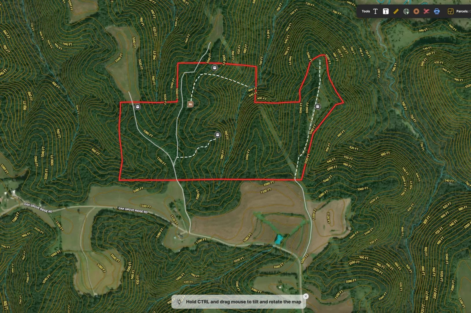 Access is dialed in. The property enjoys two established easements off Oak Grove Ridge Road, one from the west and another from the east, allowing you to approach the heart of the property with intention and strategy. A well-defined farm road carries you nearly a half-mile into the timber, climbing high along a commanding ridgetop where an older rustic hunting cabin waits quietly among the trees. The cabin is equipped with electric service and even fiber optic internet—an uncommon and valuable feature for a remote woodland retreat. Whether you envision this as a turnkey hunting camp, a weekend basecamp, or a temporary headquarters while you design and build your dream blufftop getaway, the bones are here and the setting is exceptional.