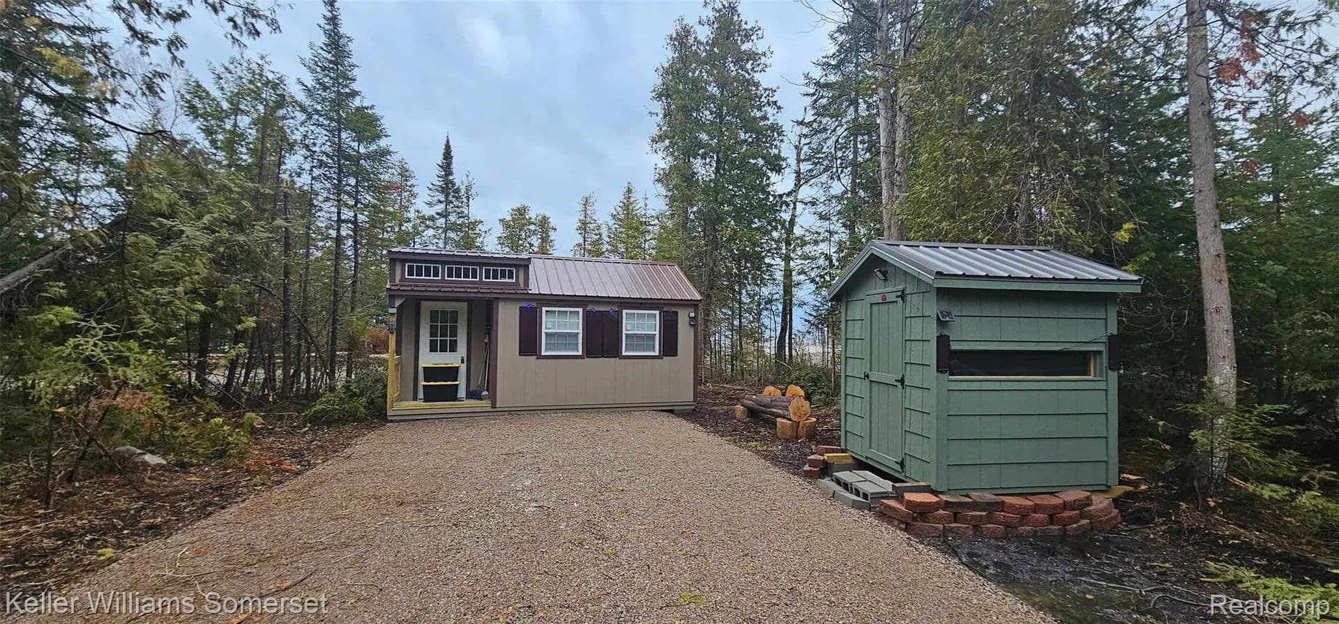 The property includes multiple sheds, including one with a finished interior, and the seller has made numerous recent improvements to the land since purchase. A Lake Huron boat launch is located just over a quarter mile away, offering convenient water access.