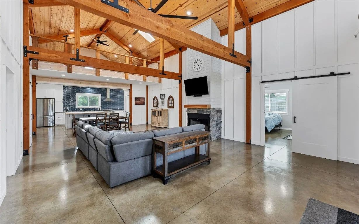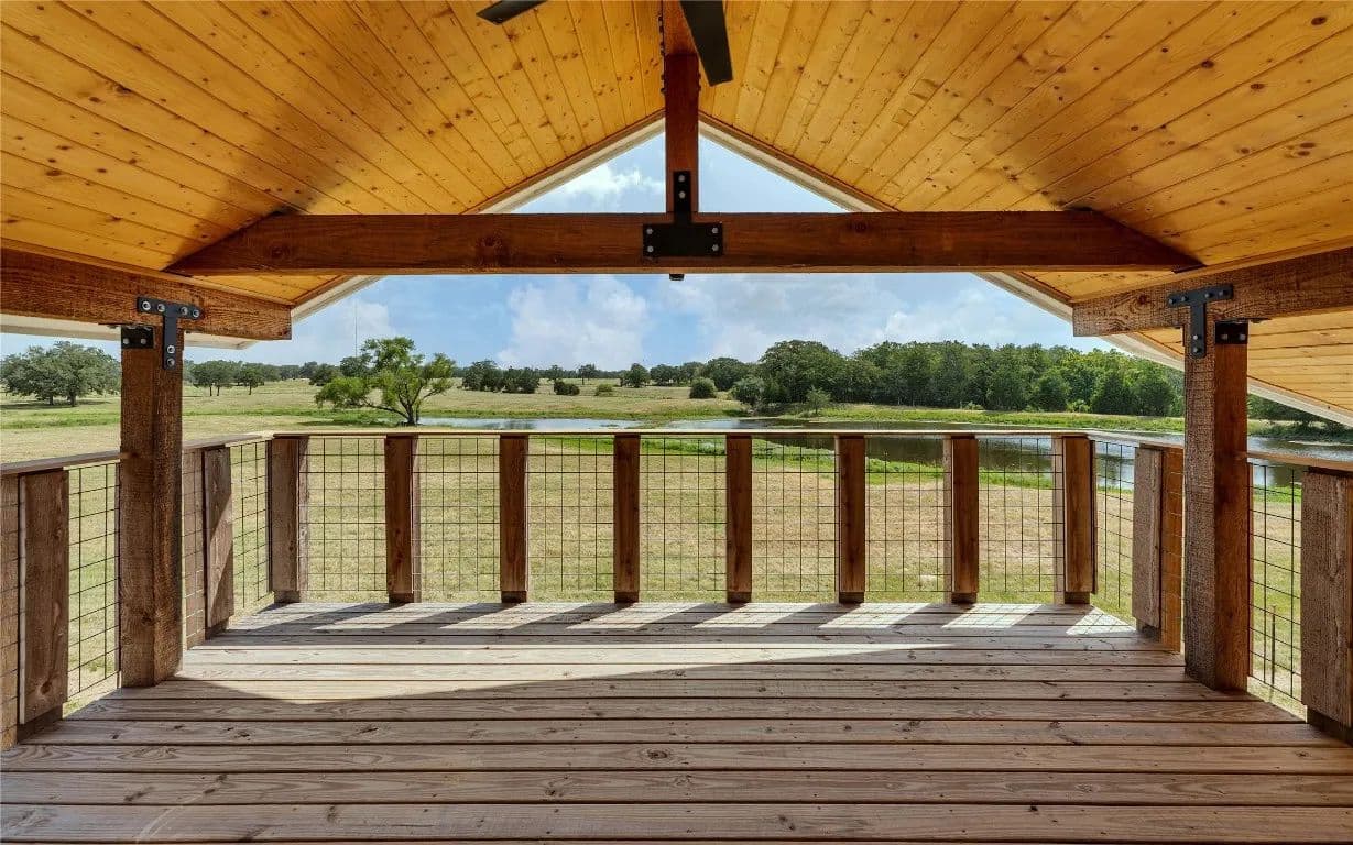 Introducing an awe-inspiring ranch-style house nestled on 26 acres in the southern region of Smithville. This remarkable home boasts soaring ceilings adorned with Douglas Fir beams and cedar accents. Offering 3 bedrooms and 2 bathrooms, there's ample space for hosting guests. Step out onto the elevated back patio, perfect for savoring morning coffee while gazing over the 2-acre pond. The spacious kitchen features top-of-the-line appliances, ensuring a delightful cooking experience.