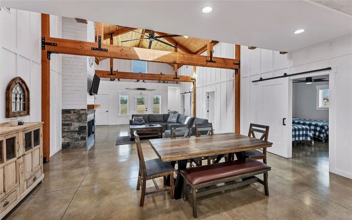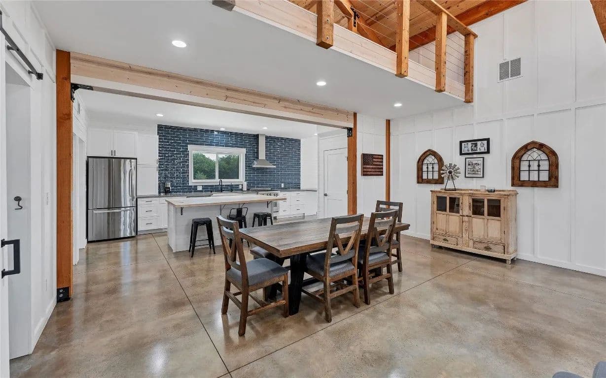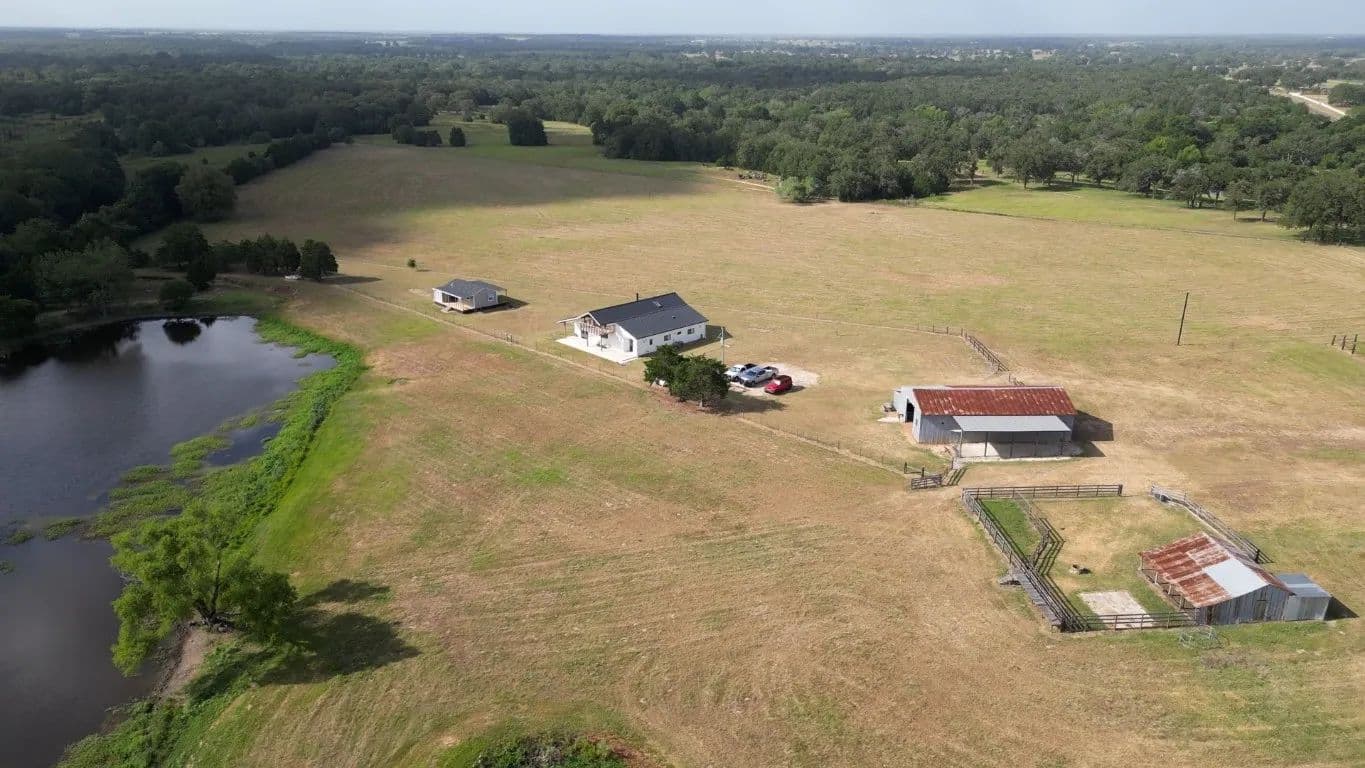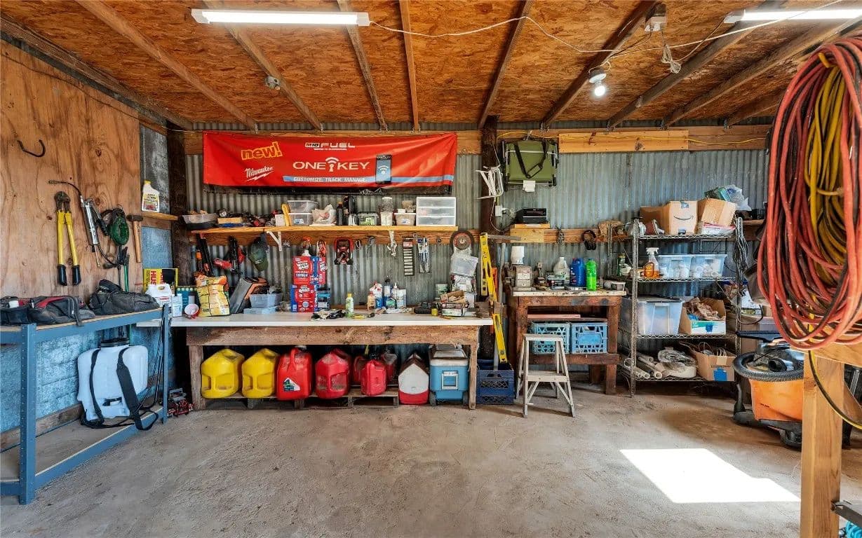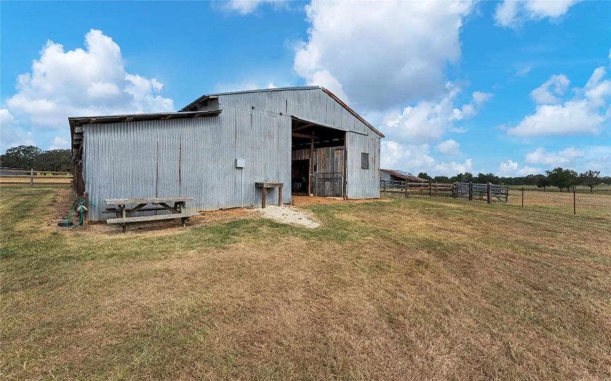 As an added bonus, a separate guest house, constructed in 2019, awaits with a full kitchen, front and back porch, and convenient washer/dryer hookups. On the property, various outbuildings serve multiple purposes: a large barn with a concrete floor workshop and drive-through barn doors, cattle pens featuring another concrete floor barn ideal for hay storage or feed, and an equipment barn for that extra storage you've always desired.