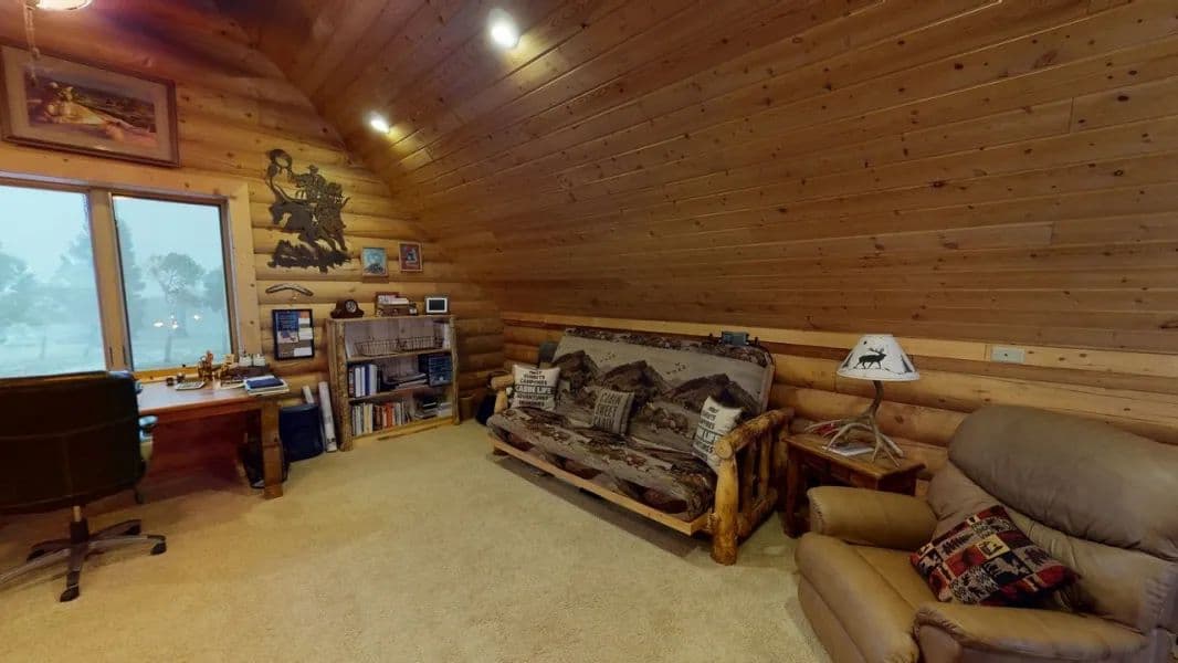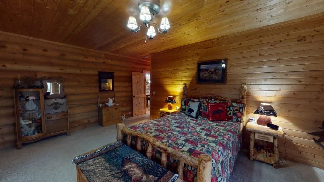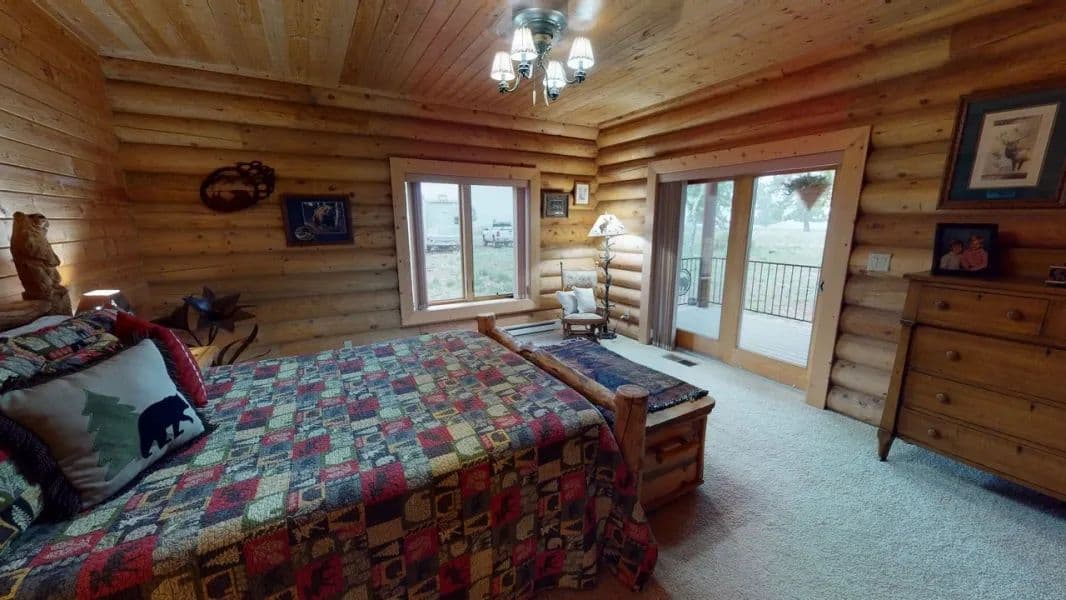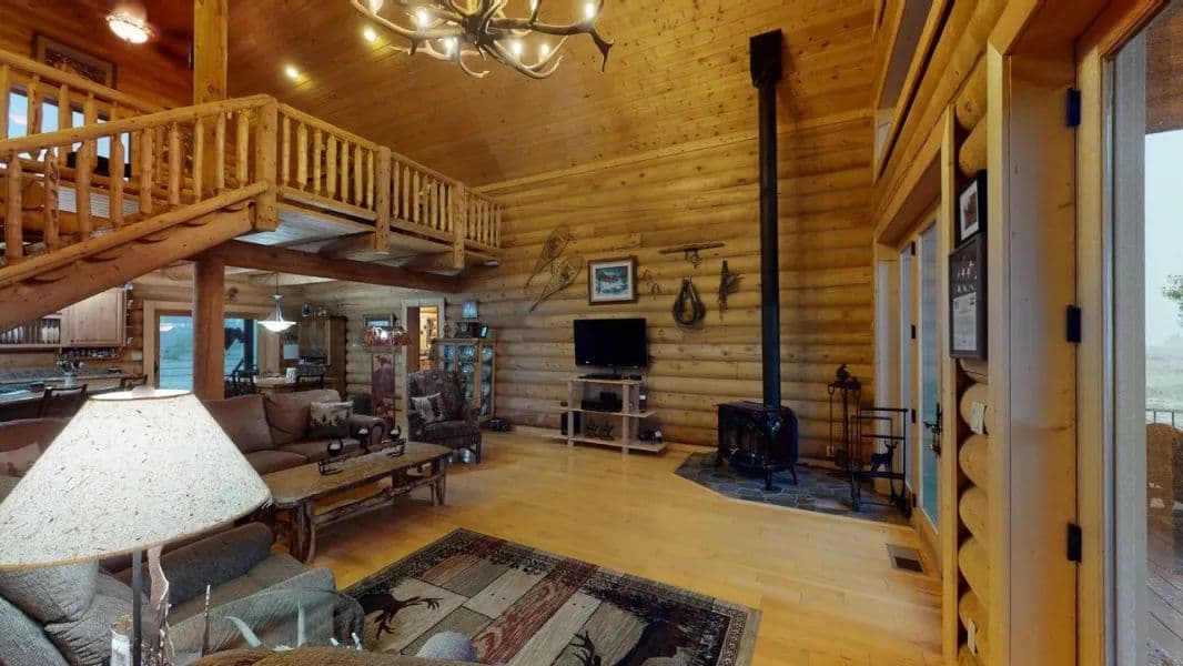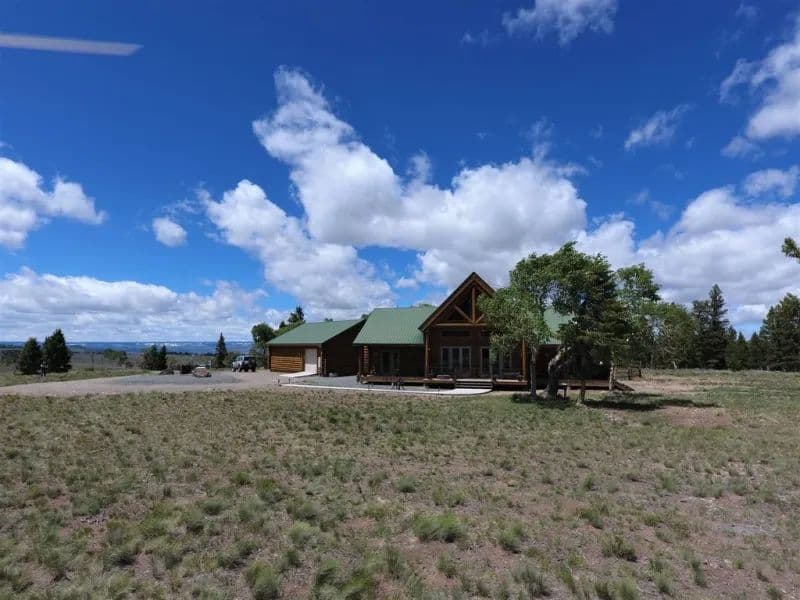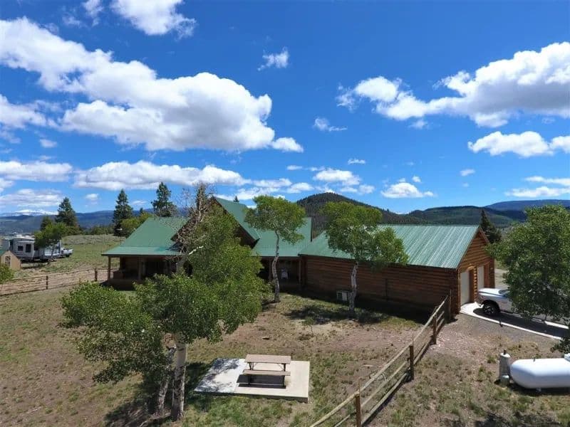 Contemporary custom log cabin within the Blue Mesa Subdivision, but this holding is not part of the Blue Mesa Homeowners Association, so no HOA regulations or dues. The cabin sits on 35 acres up on a hill giving you captivating views in every direction. Exterior features include a fenced backyard, storage shed with woodshed, full RV hookup for your guests, covered decks, and an attached 3 car garage. The property is serviced by a well that has been permitted for domestic, livestock, and one acre of lawn and garden use. The 2,528 square foot cabin is beautifully done inside, giving you 2 bedrooms and 2 baths, open kitchen/dining/living, and a large loft for flex space to use for whatever you need. The cabin utilizes forced air heating and a cozy wood-burning stove. The cabin showcases tongue and groove ceilings throughout, Hickory wood floors in the kitchen and living areas, gorgeous tile in both bathrooms, and cozy warm carpet in the bedrooms. The custom features throughout the cabin make this a showstopper. The cabin is located near the Lake Fork of the Gunnison River and Blue Mesa Reservoir, both known for outstanding fishing. National Forest and BLM are practically out your front door, and the property is in Game Management Unit 66, known for its big game. Custom cabin living with proximity to lots of outdoor activities and adventures sums up this stunning mountain property.