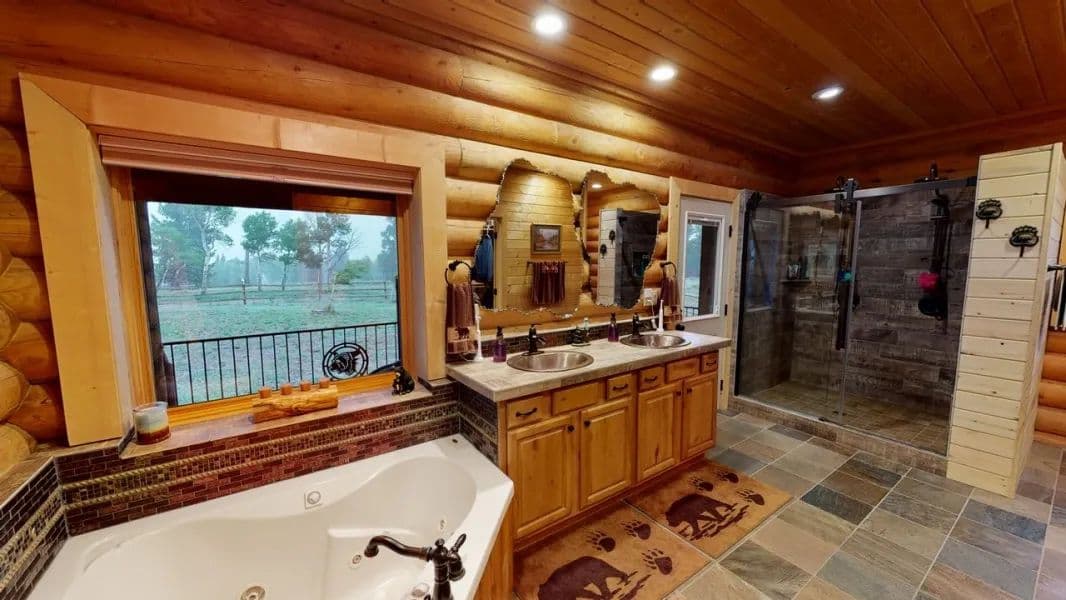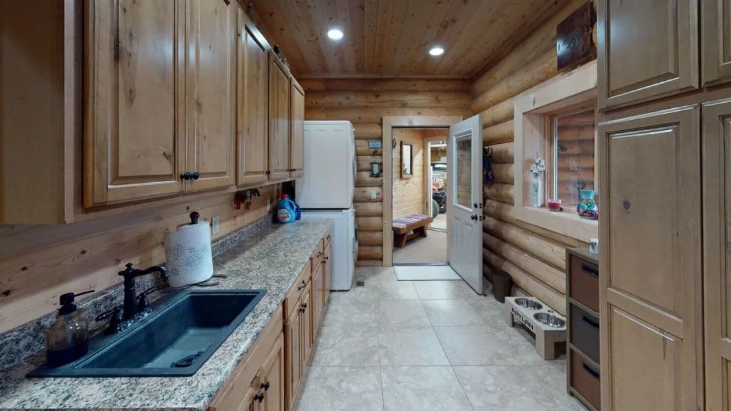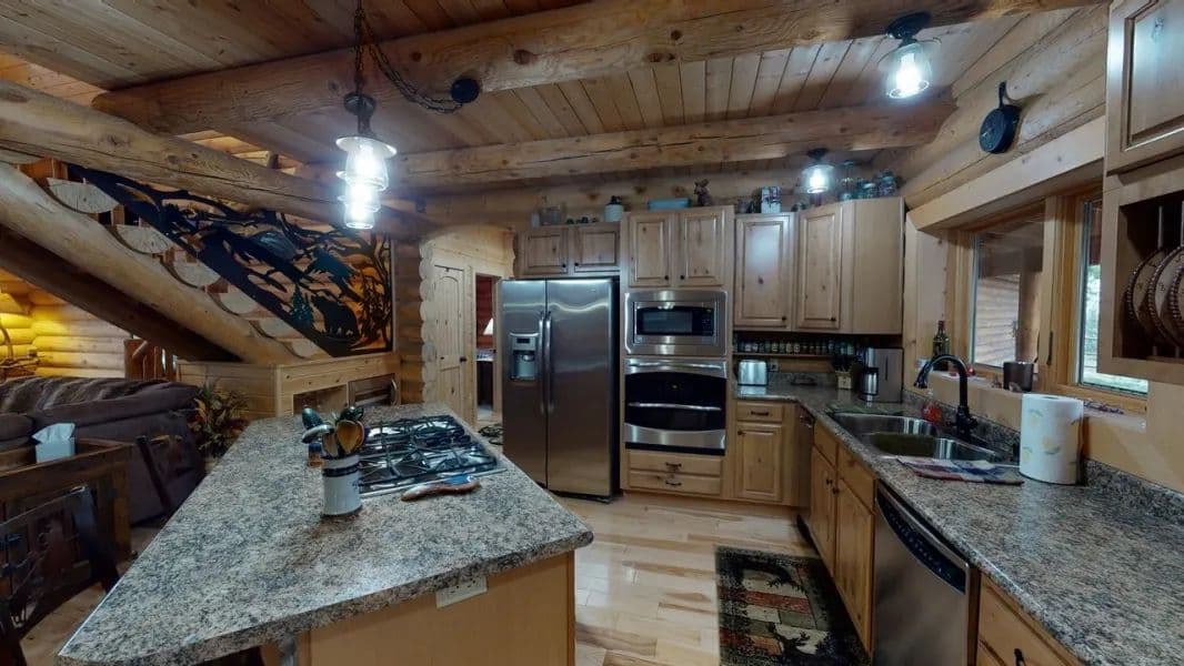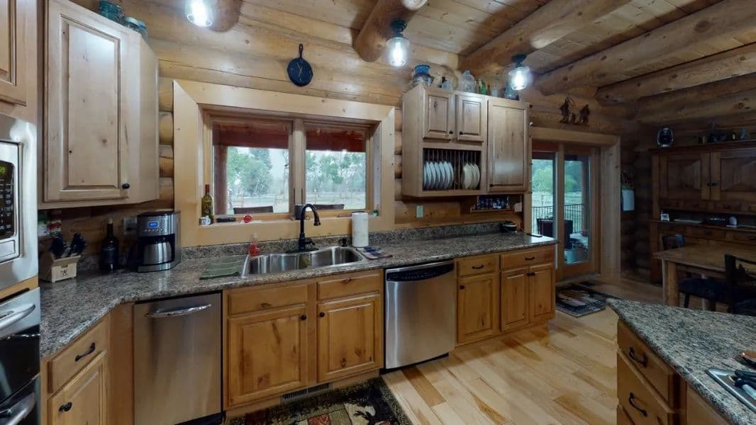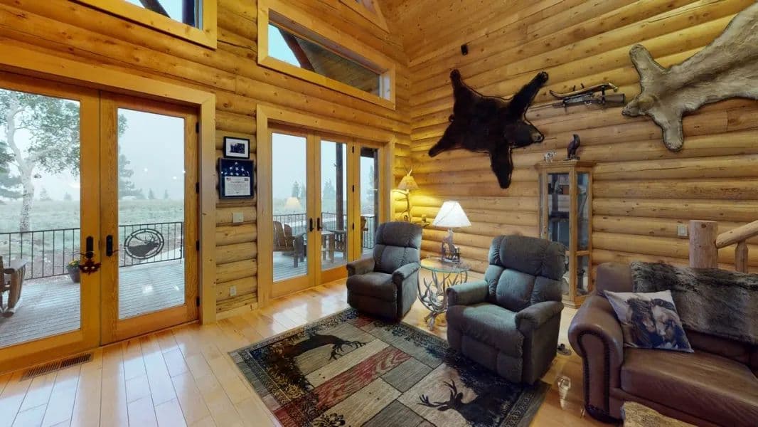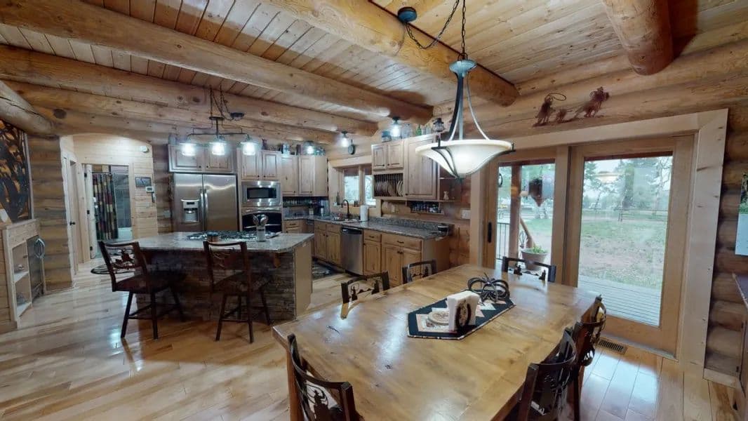Contemporary custom log cabin within the Blue Mesa Subdivision, but this holding is not part of the Blue Mesa Homeowners Association, so no HOA regulations or dues. The cabin sits on 35 acres up on a hill giving you captivating views in every direction. Exterior features include a fenced backyard, storage shed with woodshed, full RV hookup for your guests, covered decks, and an attached 3 car garage. The property is serviced by a well that has been permitted for domestic, livestock, and one acre of lawn and garden use. The 2,528 square foot cabin is beautifully done inside, giving you 2 bedrooms and 2 baths, open kitchen/dining/living, and a large loft for flex space to use for whatever you need. The cabin utilizes forced air heating and a cozy wood-burning stove. The cabin showcases tongue and groove ceilings throughout, Hickory wood floors in the kitchen and living areas, gorgeous tile in both bathrooms, and cozy warm carpet in the bedrooms. The custom features throughout the cabin make this a showstopper. The cabin is located near the Lake Fork of the Gunnison River and Blue Mesa Reservoir, both known for outstanding fishing. National Forest and BLM are practically out your front door, and the property is in Game Management Unit 66, known for its big game. Custom cabin living with proximity to lots of outdoor activities and adventures sums up this stunning mountain property.