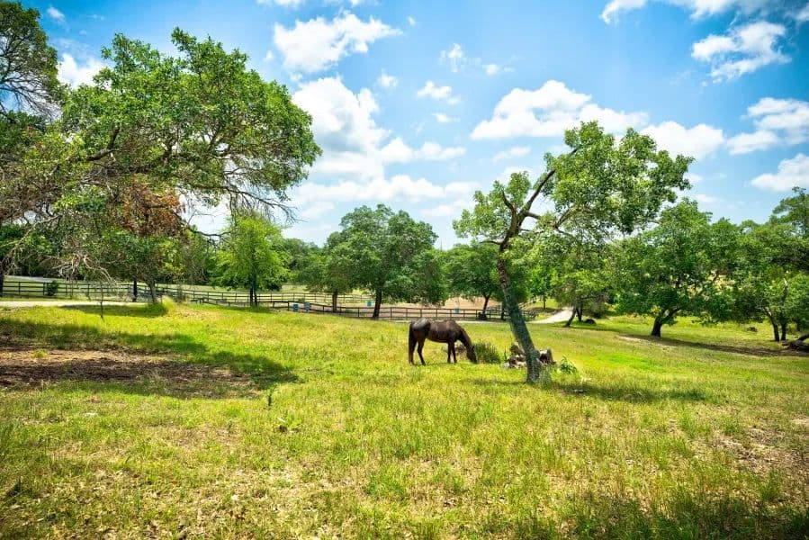 HORSE LOVERS DREAM WITH VIEWS & LOCATION! Move out of the city to your picturesque 8.85-acre HORSE PROPERTY just minutes from downtown Boerne with quick access to IH-10! Revel in the hill country starry nights & cooler temps while taking in the 180-degree, 20+ mile VIEWS from 5 porches, wide upper patio, putting green & from the custom-built 5000+ sq. ft. home nestled high on the property. Fantastic horse facilities include 3 lush pastures and two barns separated with cross fencing so you can own & board or have a place for your guests' horses. Two-acre turn out from the main 4-horse barn provides a large arena for roping and barrel racing, etc. (underground electric installed). This custom gem offers wood floors almost throughout and thoughtful finishes with charming hill country flair! Large entertaining spaces open to the kitchen for fantastic flow. Spacious and elegant master suite down with two porches and -suite bath with a claw foot tub, walk-in shower & multi-closets. Private office with a wall of built-in bookcases and large windows delivers sweeping views of the property. Three bedrooms, two baths & a "hidden" kids retreat up. Large game room in walkout basement with separate exercise room, storage rooms and another guest suite with full bath. (Specific electric is available to create a functional, full "apartment".) Don't miss the cigar patio and putting green just outside the game room area. A brick three car garage with tack room connects to the main barn. Outdoor living continues with covered patio w/tv, outdoor kitchen, fireplace & refreshing pool and bubbly hot tub! Make this one-of-a-kind property your private oasis... and bring those horses!