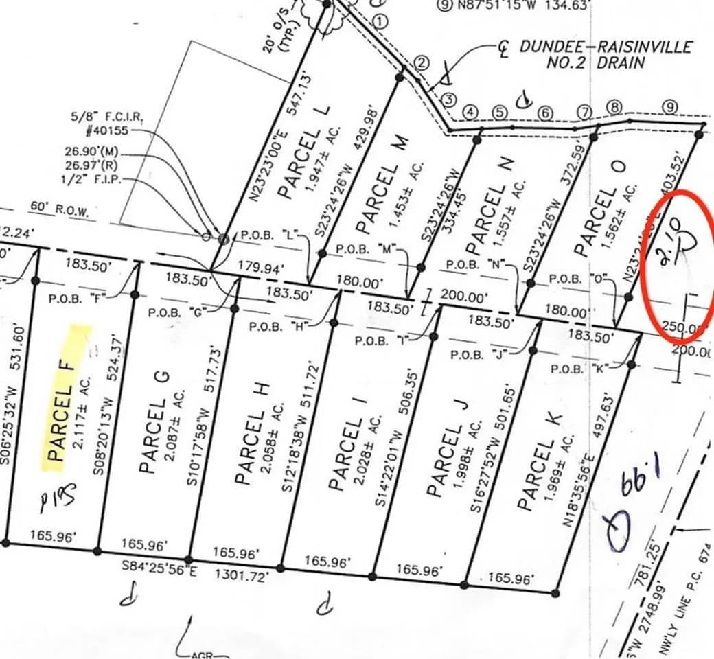 Located in Dundee School District, Raisinville Township. Time is now to choose this or from 10 other parcels ranging from 1.4 to 2.10 acres. Water assessment paid. City water at road and natural gas. EZ access to US23. Don't delay select yours now! Deed restrictions apply PARCEL P. 2.10 acres.Parcel does not perc. Although perc info to the best of Sellers knowledge is provided as well as public record. It is recommended for Buyers to verify by attaining their own boring test at desired location of their build at Buyers expense.