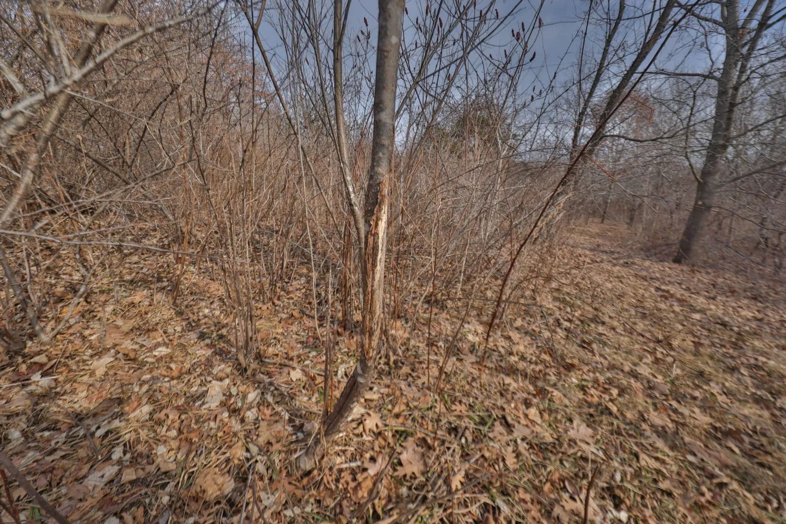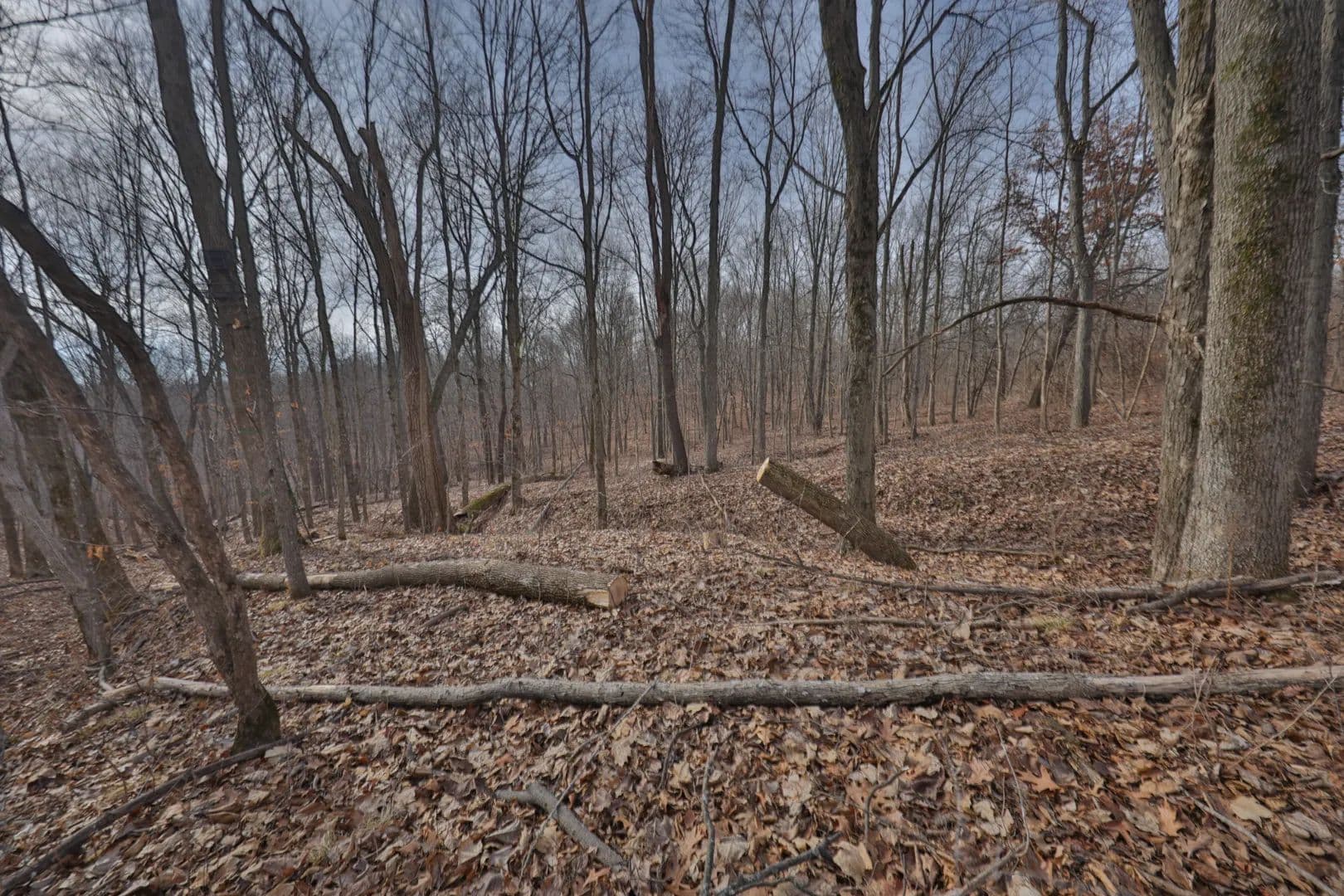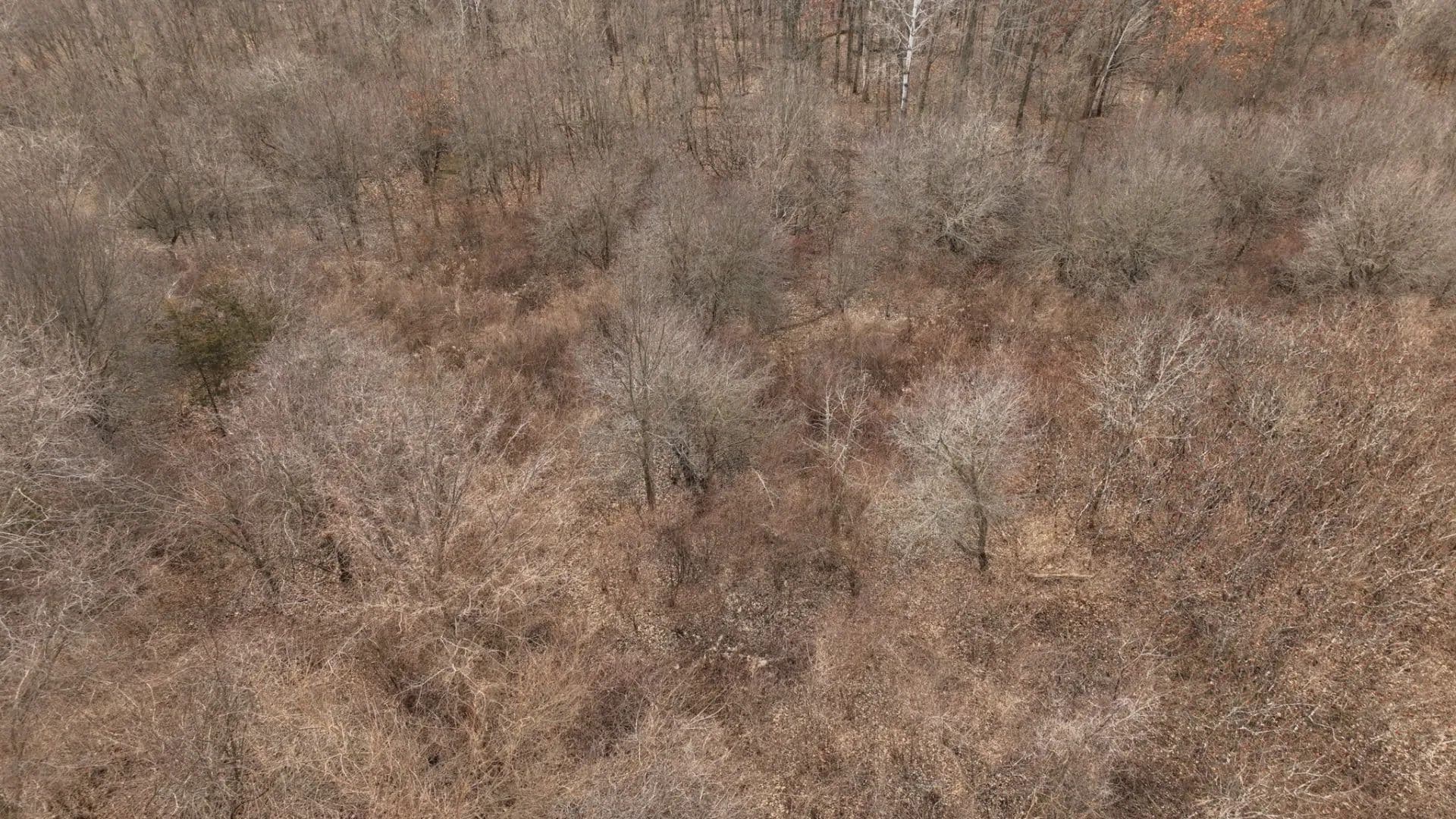 The beauty of this tract starts right from the road. Dense, tangled underbrush and gnarly young growth create immediate security cover — the kind mature bucks crave during daylight. Push beyond that edge and the timber opens into a handsome hardwood flat before gradually tapering into a subtle ravine that naturally directs deer movement. It’s classic Driftless topography: rolling ridges, steep sidehills, and natural terrain features that create textbook funnels.