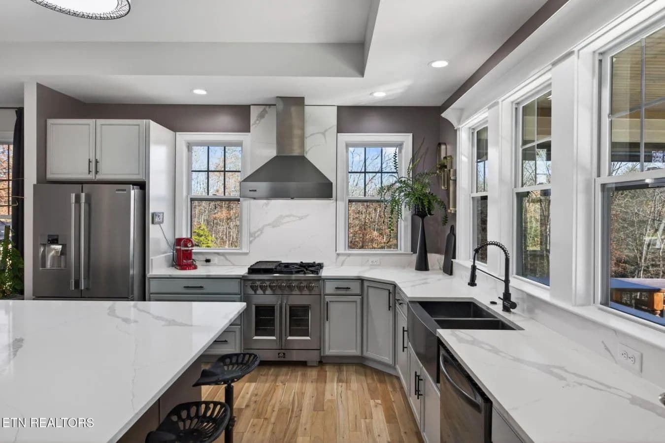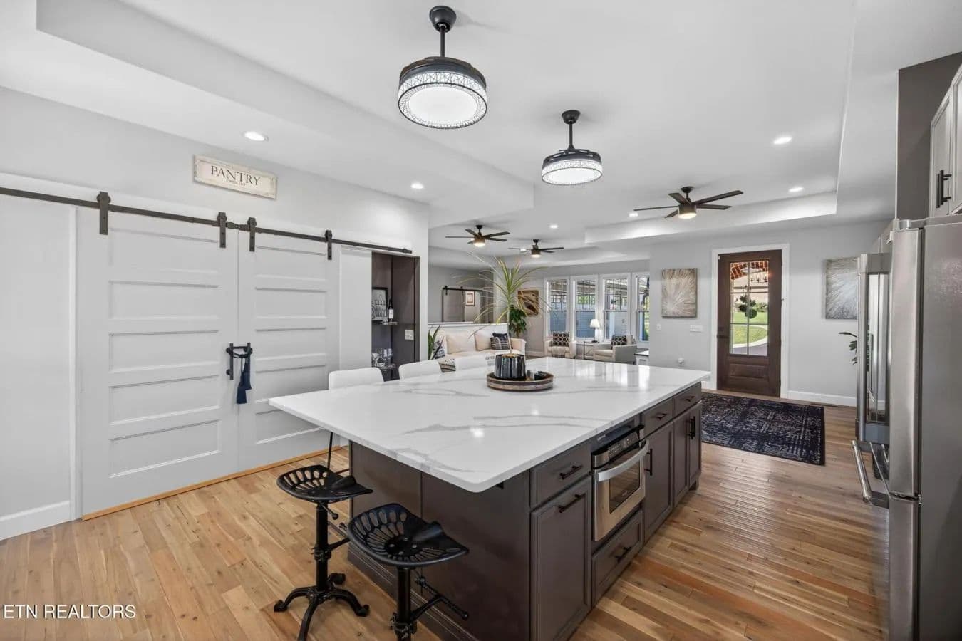 LUXURY DESIGNED RIVERFRONT HOME WITH A CHEF'S KITCHEN AND CUSTOM DECKS ON OBED RIVER! Situated in one of Crossville's most desired neighborhoods within city limits, this exquisite brick residence delivers privacy on an impressive lot just under 2 acres featuring 325 feet of pristine Obed River frontage. Enjoy the best of both worlds: a secluded retreat just moments from shops, restaurants, schools, parks, the hospital, and downtown. Spanning 2, 804 sq ft, this stunning 5 bedroom, 3 bathroom home is an entertainer's dream. The outdoor space is truly world-class, defined by custom, architecturally designed upper and lower decks (over $100K invested) installed by Jeff Woods Construction. Experience seamless indoor and outdoor living with remote-controlled retractable screens, ensuring year-round riverfront enjoyment regardless of the weather. The kitchen is a statement of modern luxury with its quartz countertops, retractable fan lighting, stainless steel appliances including a brand new Forno gas range (April 2025) and a massive 60 sq ft island (10' x 6') - perfect for hosting - complemented by a generous pantry. In the living room cozy up to the double-sided gas fireplace. The main level offers the primary suite with its own bathroom and walk-in closet and another full bathroom and two guestrooms. On the lower level enjoy a spacious second living area or game room complete with mini bar area. On this level is a full bathroom and 2 more rooms that can be used as bedrooms, an office, or craft room. Unmatched flexibility is provided by the rare 5 car garage with 3 bays on main level (garage is 34' x 25') and 2 more bays on the lower level (garage is 23' x 24') with a U-shaped refinished driveway for extra convenience. Thoughtful details include a new QA-Deluxe 5500 energy efficient whole house fan (2025), tankless water heater, central vacuum, security system, and new hardwood flooring in the main floor bedrooms. Here is your coveted chance to own a high-end designed riverfront property offering peaceful luxury and unparalleled convenience within the beautiful city limits of Crossville, TN. Buyer to verify all information before making an informed offer.