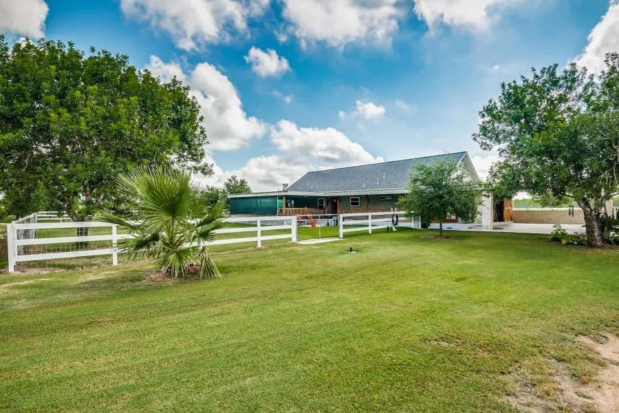 Serene country living couples with all the conveniences of the city. Fabulous 59+ acre ranch property, just 17 miles east of San Antonio and minutes from Seguin. This beautifully improved property is fully fenced with coastal hay and borders a seasonal creek. Behind the automatic gate and up the tree-lined driveway, you'll find plenty of updates, inside and out, plus a 4-car covered carport. Within a ranch-style single story lies three bedrooms, two baths, and a light-filled loft. Lovely details include vaulted ceilings, custom, stamped concrete floors, and a spa-like master shower. Outside, an expansive covered patio is great for both relaxing and entertaining, with views of the fenced pastures and large pond. Enjoy a sea of Texas bluebonnets in the spring, Crepe Myrtles all summer, plus plentiful deer and wild turkey year round. Improvements to the land consist of a barn with pens and corrals plus irrigation in front and back of the home, with water faucets in all pastures. Perfect for horse owners, this peaceful property is Ag-Exempt, ideal for escaping the busyness of everyday life. https://youtu.be/7SHu5Afw59o