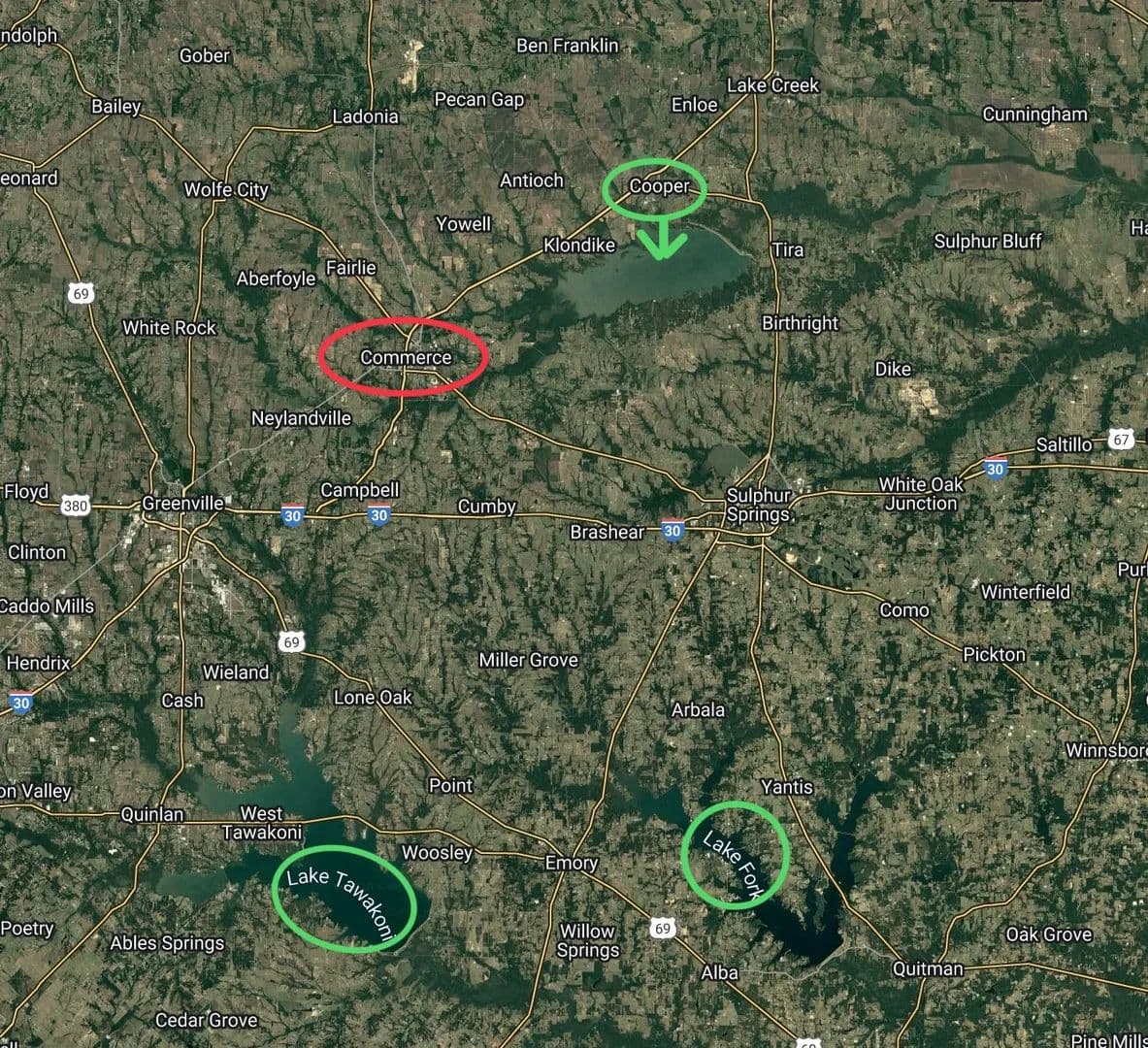 A perfect land opportunity to create your very own weekend or full time get away that offers PEACE & PRIVACY close to town but feels miles away. Located just outside of Commerce Tx (actually in the city limits) close to the Sulphur River. The property offers a trail system thru out & around the property for easy access everywhere (see pic’s) and active tributaries that run through out the property that draw & promote wild life (see pics), one sizable small lake & another small pond. Approx 75-80% of property is in the flood plain which offers beautiful towering trees and tons of open areas ideal for cultivating and managing food plots etc. Situated on a FM road for easy access and water, sewer & elec are located at the street (buyer to verify) for those that desire a residence, barndo or hunting quarters. Just 1.5 Hrs from Dallas & even quicker from Rockwall or McKinney. Mostly fenced but there are some gaps and the soil is sandy loam. Sellers relocated out of state so it’s time to sell. Currently in AG exemption so taxes are minimal.