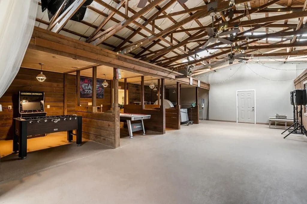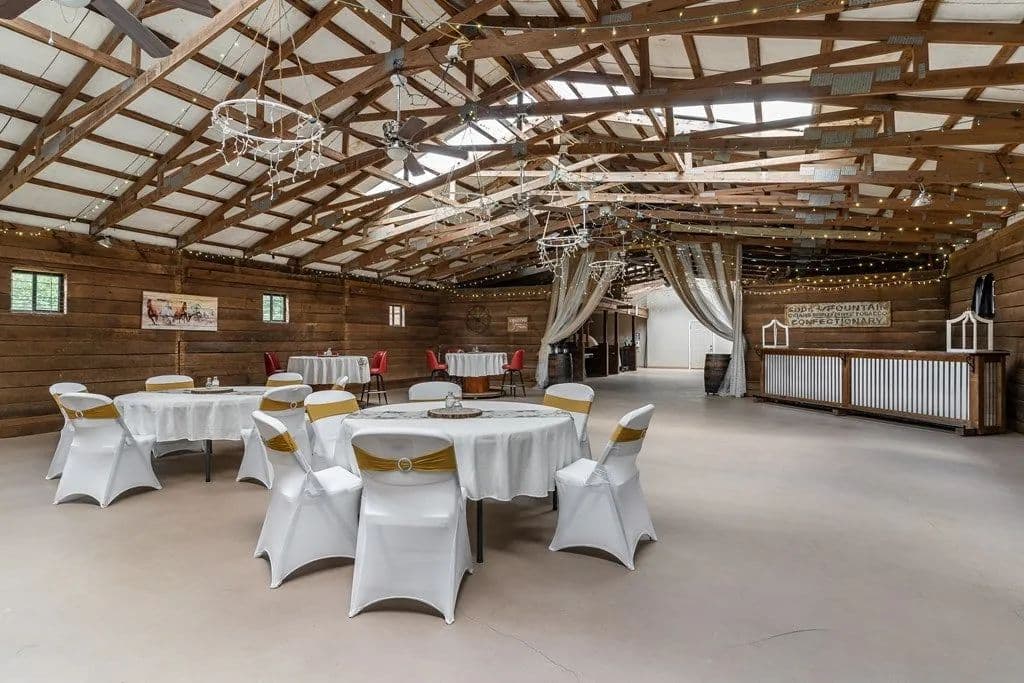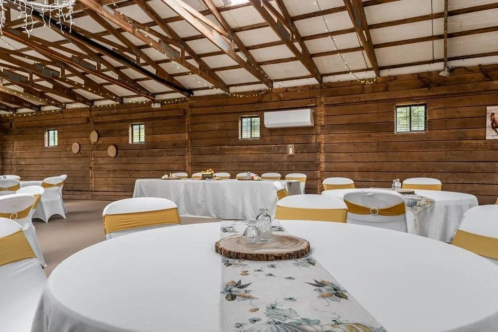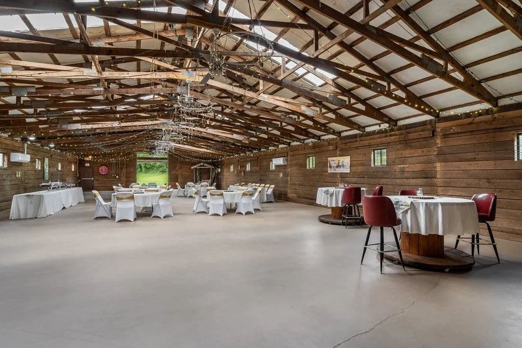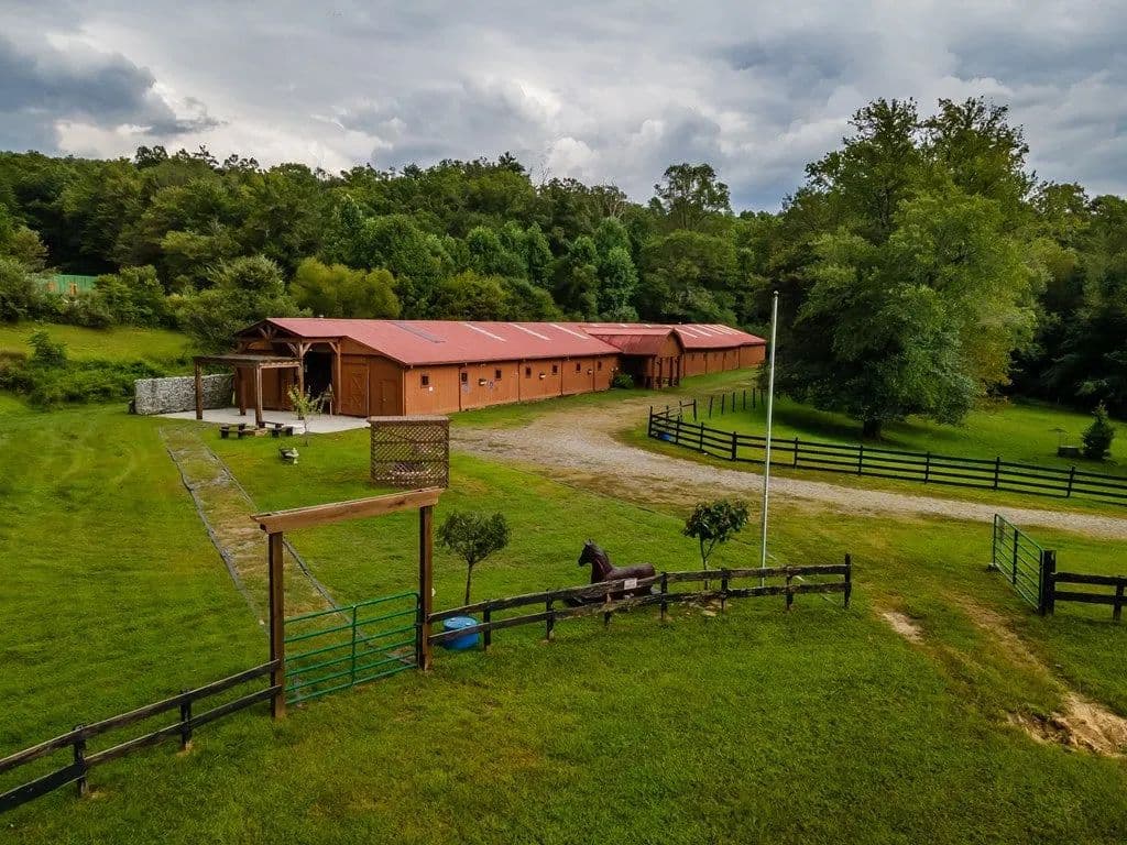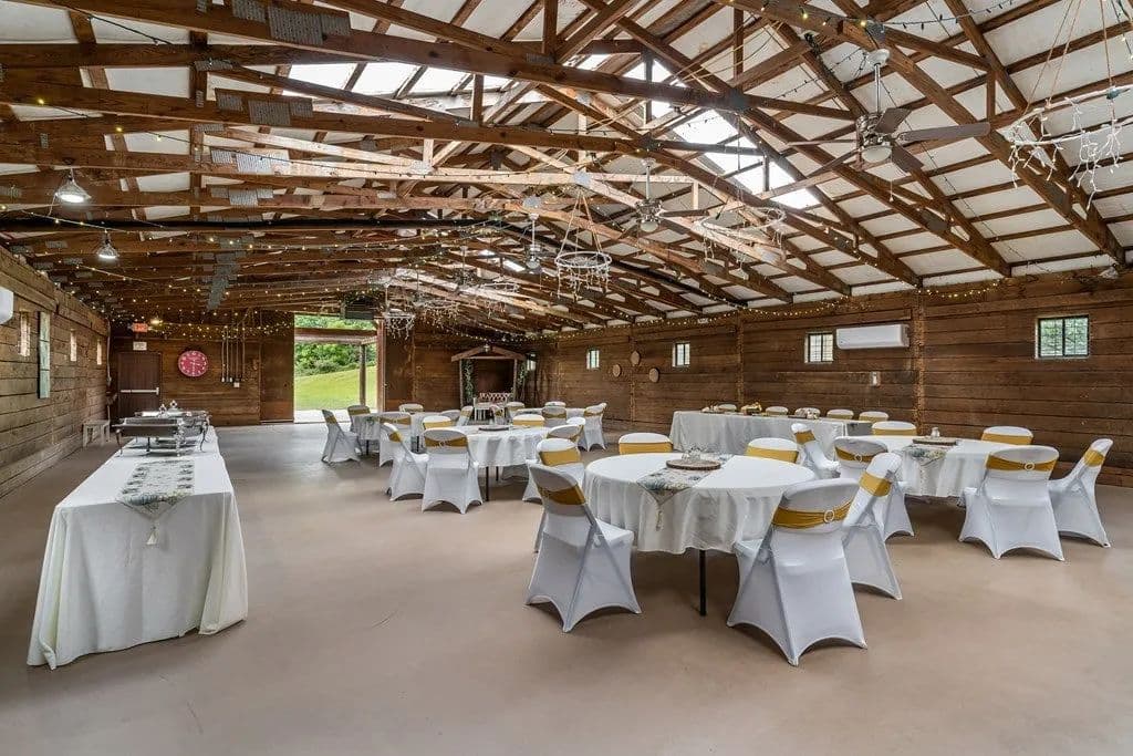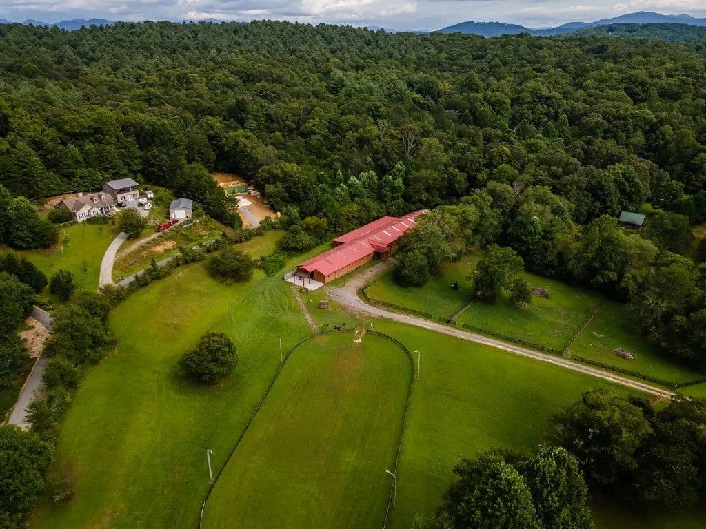 Fabulous EQUINE BARN VENUE, on 5 level acres with 12,000 square foot barn with metal roof, divided by a firewall to host enumerable events, such as weddings, parties, dinner-theater, open mic night at one end, and board horses in the stables, including an indoor exercise arena at the other end. Horses and their owners will also enjoy outside a lighted riding arena for nighttime exercise, (also used for parking during large events), and fenced pastures. The entertaining end of the building includes: a large event room with barn doors, and pergola to bring the outside in, a foyer, groom's room, bride's room, warming kitchen, two bathrooms. The stable is currently licensed to board 5 horses with the potential of up to 10 horses. Property is surrounded by nearby USFS with abundant trails in the Mountain Lake area of Northeast Georgia. Convenient to Blairsville, Blue Ridge, GA and Murphy, NC. Come see the endless possibilities of this amazing venue! Call me today!