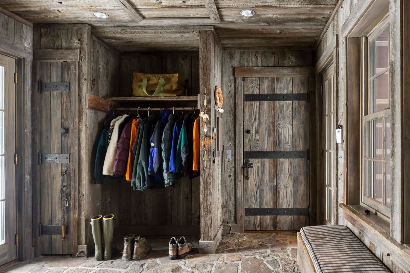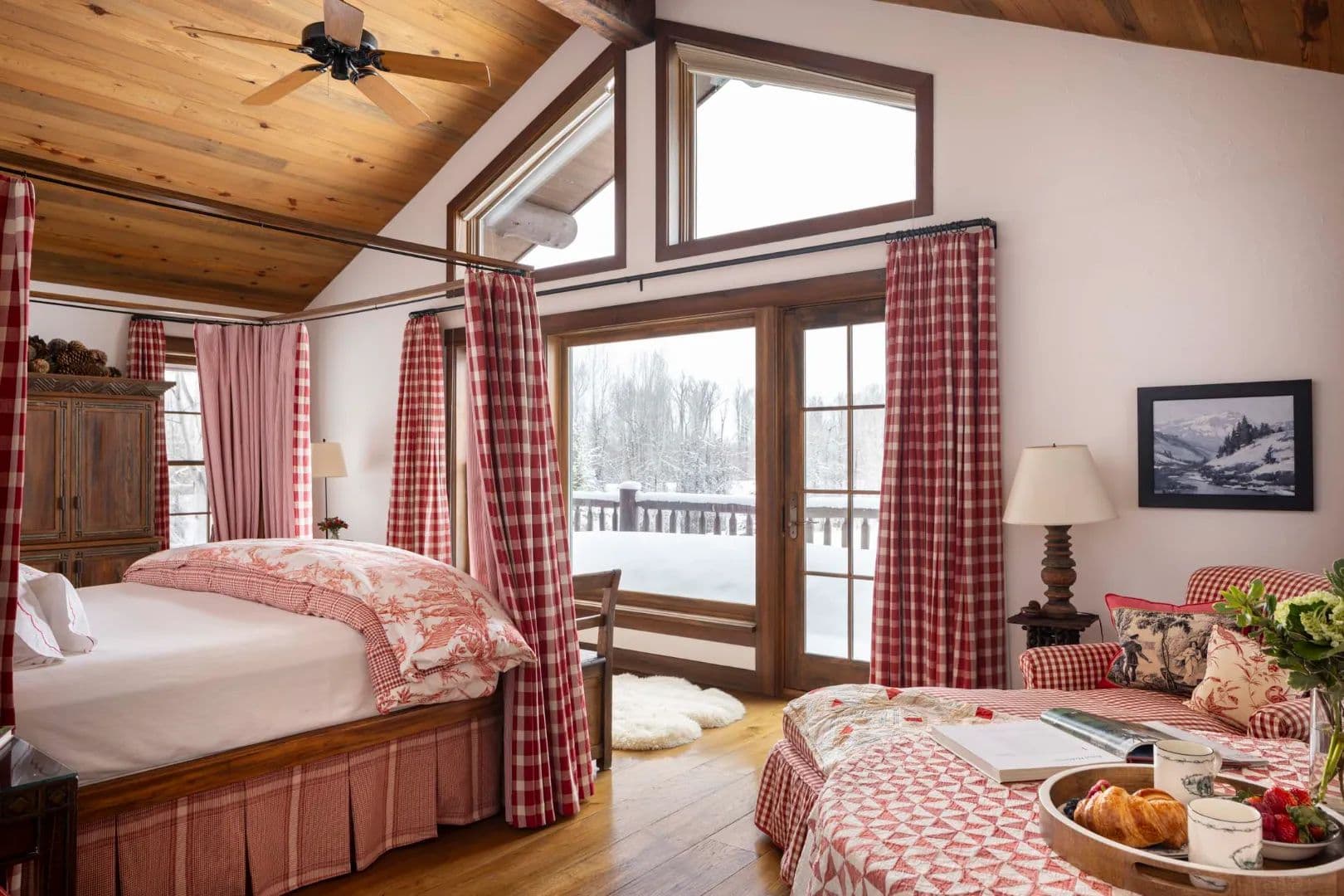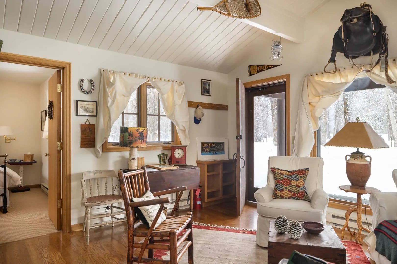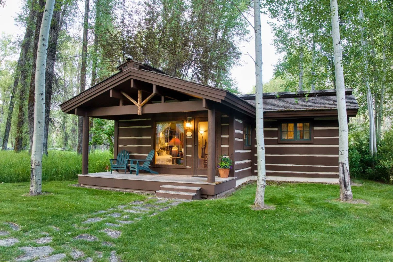 Built in 1997, the 5,906 sq ft main house is a refined Western lodge, crafted in log, stone, timber, reclaimed wood, and birchbark cabinetry. It offers six bedrooms and six baths across two wings, with the great room, dining areas, and stone alcove office centered between them. Large windows frame views of water, meadow, and mountain in every season. The home is offered fully furnished and move-in ready.