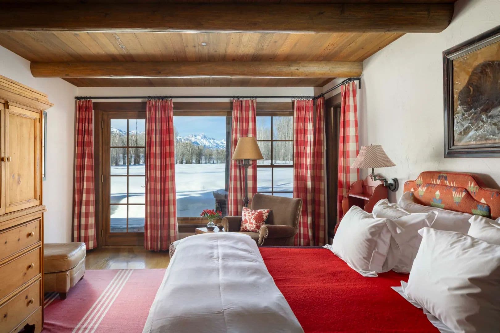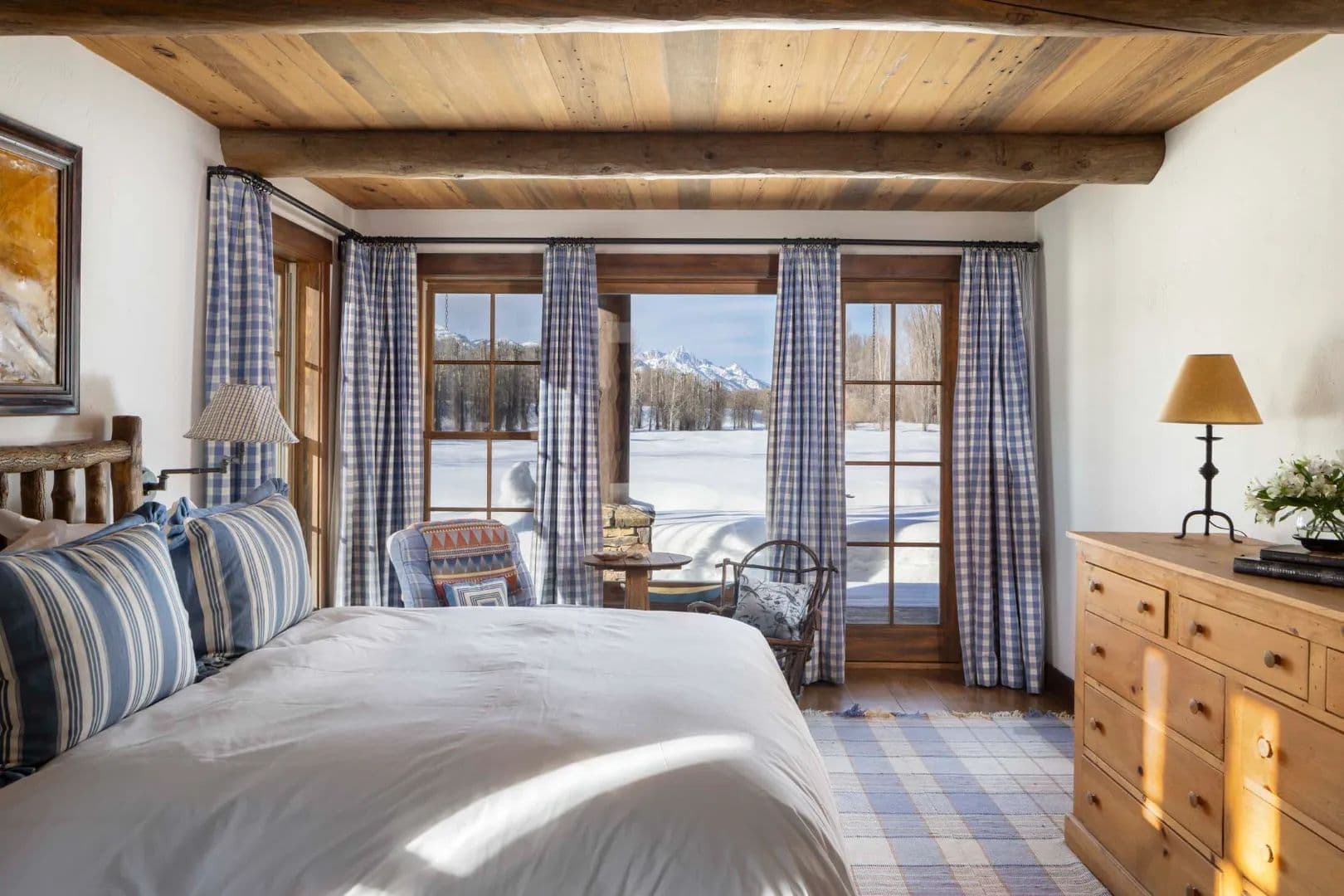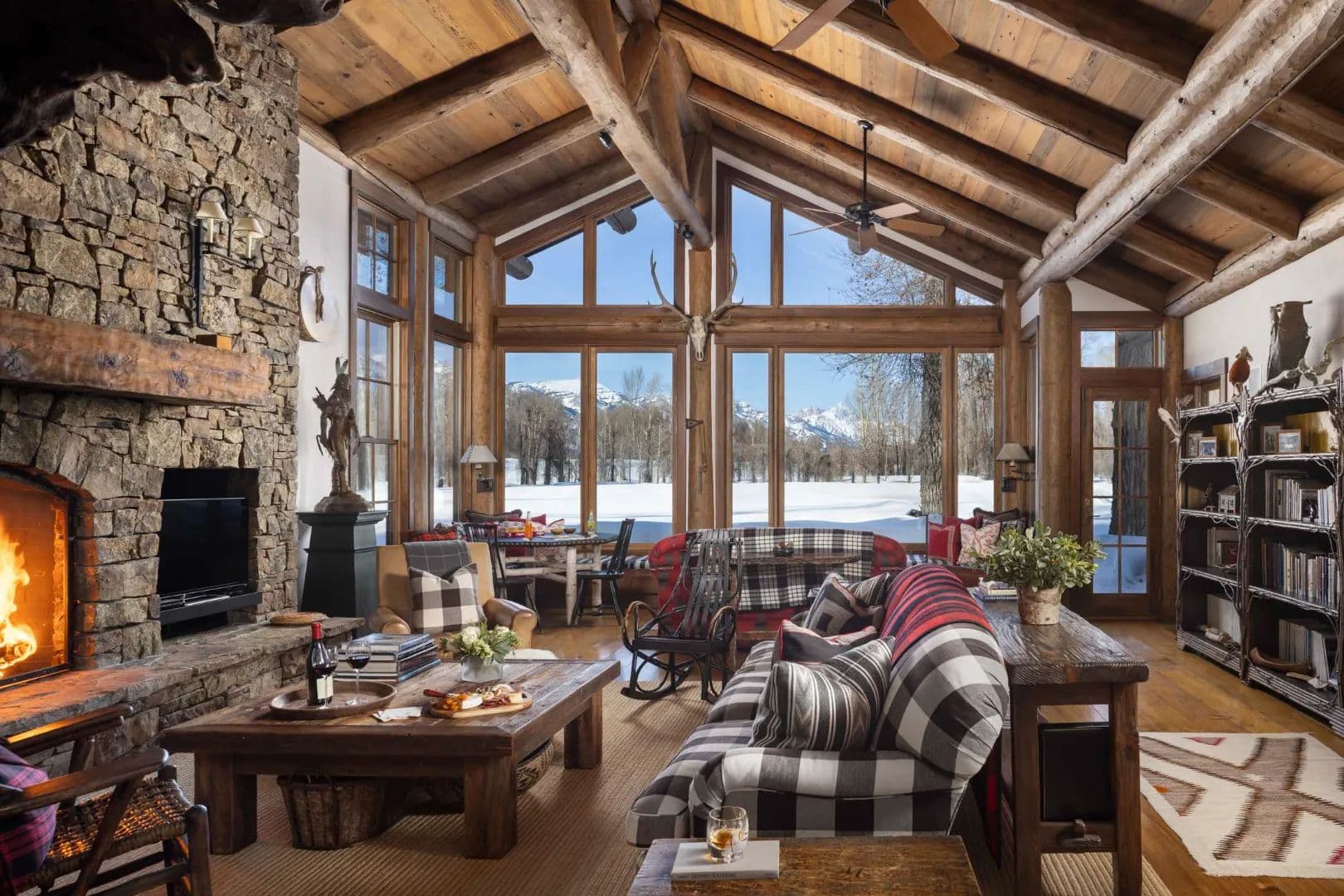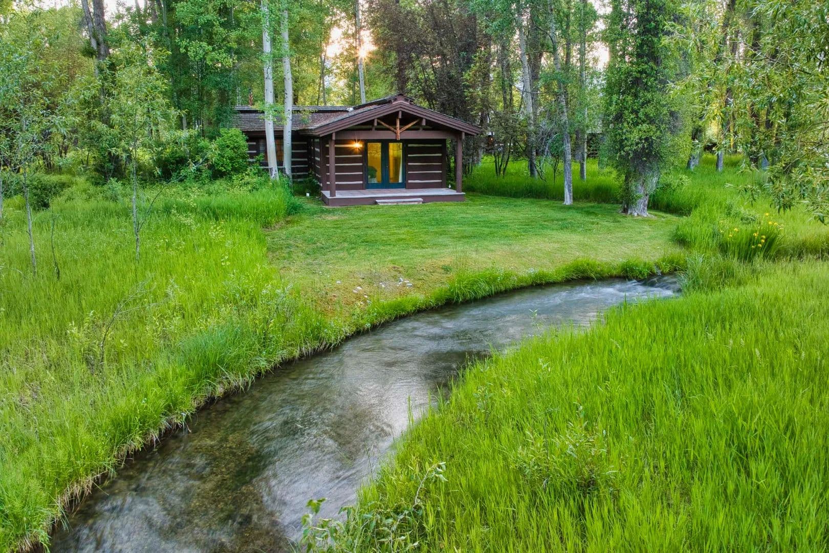More than a third of a mile of live water flows across the property, including a restored trout-rich creek and private Snake River access. Elk and moose wander through daily. A private river dike offers walking, skiing, and stillness, all within minutes of town, healthcare, and the airport.