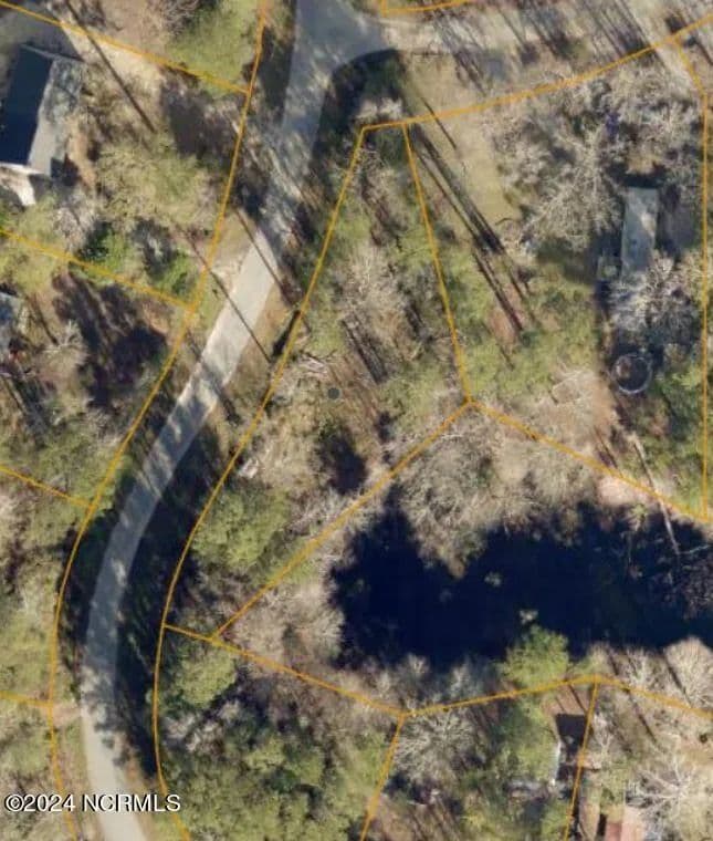 Triangular shaped lot has large street frontage that slopes away toward a nearby pond. Ideal privacy with large trees surrounding the cleared area. Electric service, phone and cable services available at the front of the lot. Original Developer HOA was discontinued by residents several years ago. Currently no dues or organization exists.