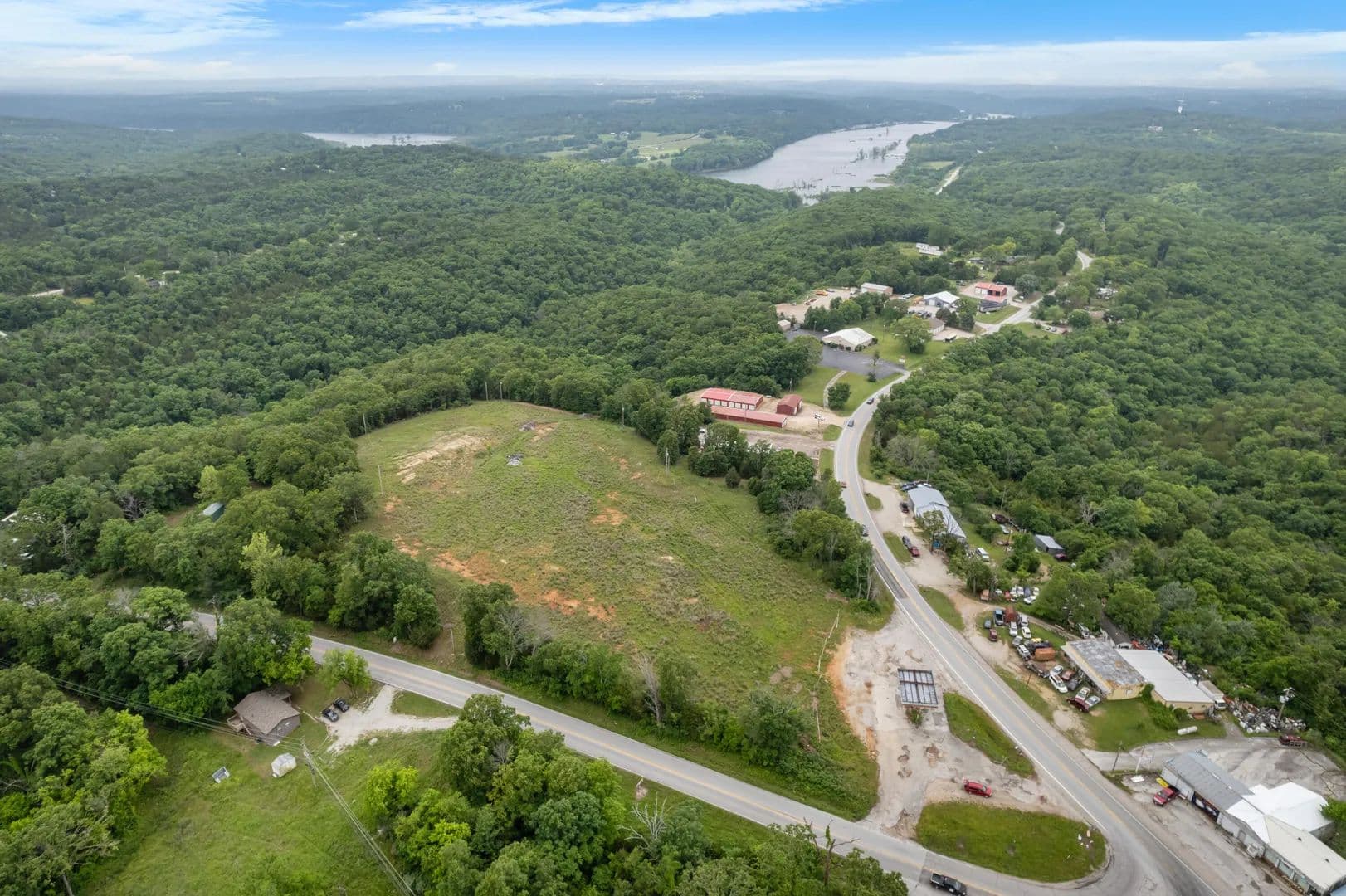 7.2 Surveyed Acres in a fantastic, well traveled location on US Hwy 160 / 76 East. If you have big ideas for development, this property is definitely worth a look. Offering Bull Shoals Lake Views, Over 1000+ ft of Hwy frontage, just minutes to Forsyth Shopping, super close to both Bull Shoals Lake & Lake Taneycomo, and within 30 minutes to Branson, MO! This property has been surveyed and cleared. Electric is in place and the property is serviced by Taney County Water District 1. There is also a canopy in place at entrance. Let 2025 be the year your dreams turn into your reality and take a look at this great property today.