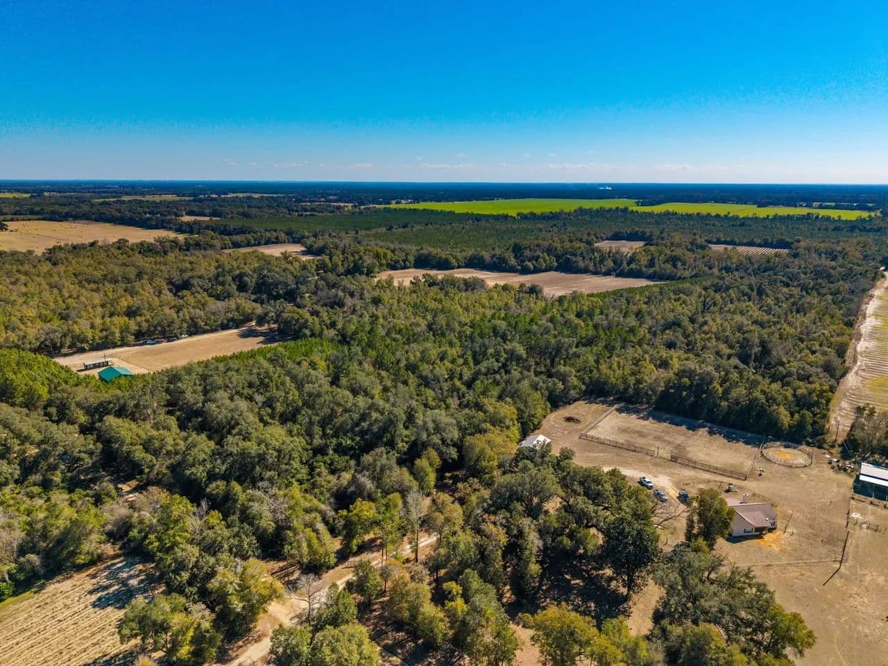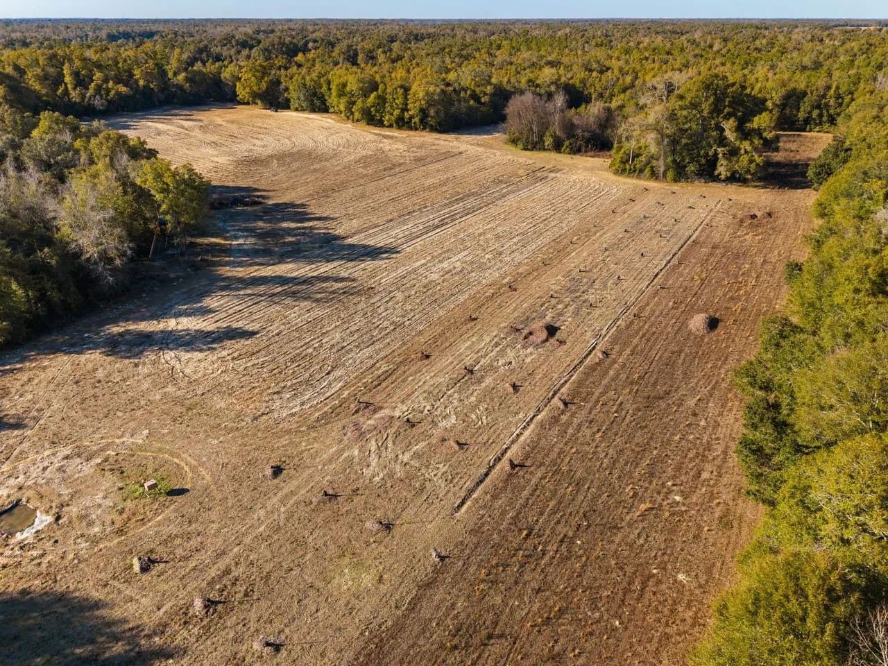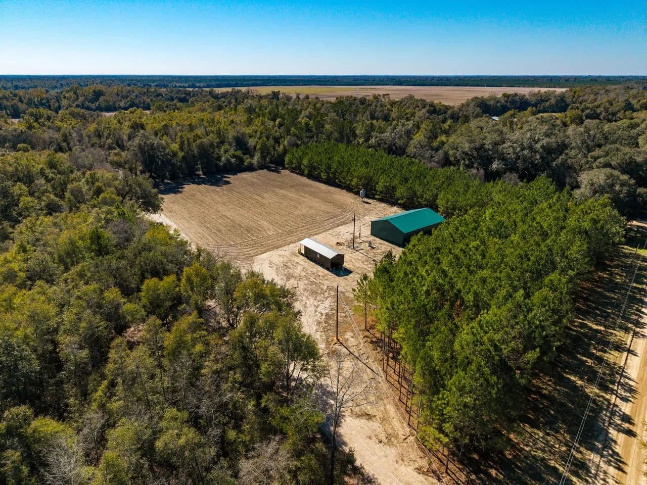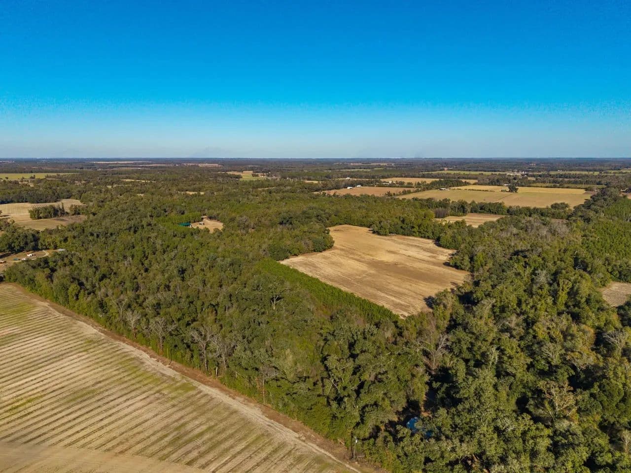 The land is a practical mix of open ground and timber, including interior agricultural row crop fields, planted pine timber, and hardwoods with scattered mature live oaks. The live oaks give the property a classic North Florida feel, and several areas are naturally suited for a beautiful homesite overlooking fields and woods.