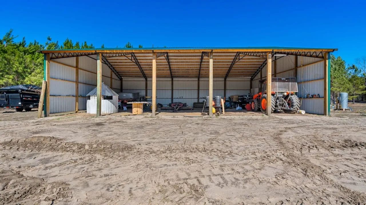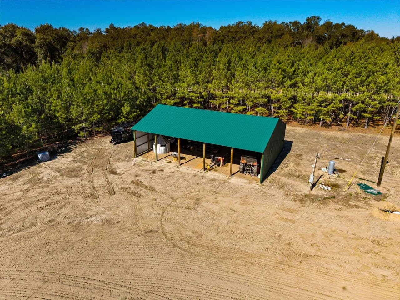 Improvements include a custom-built 14x48 cabin, a newly constructed 40x60 pole barn, water well, and power already in place, allowing the property to be used immediately.