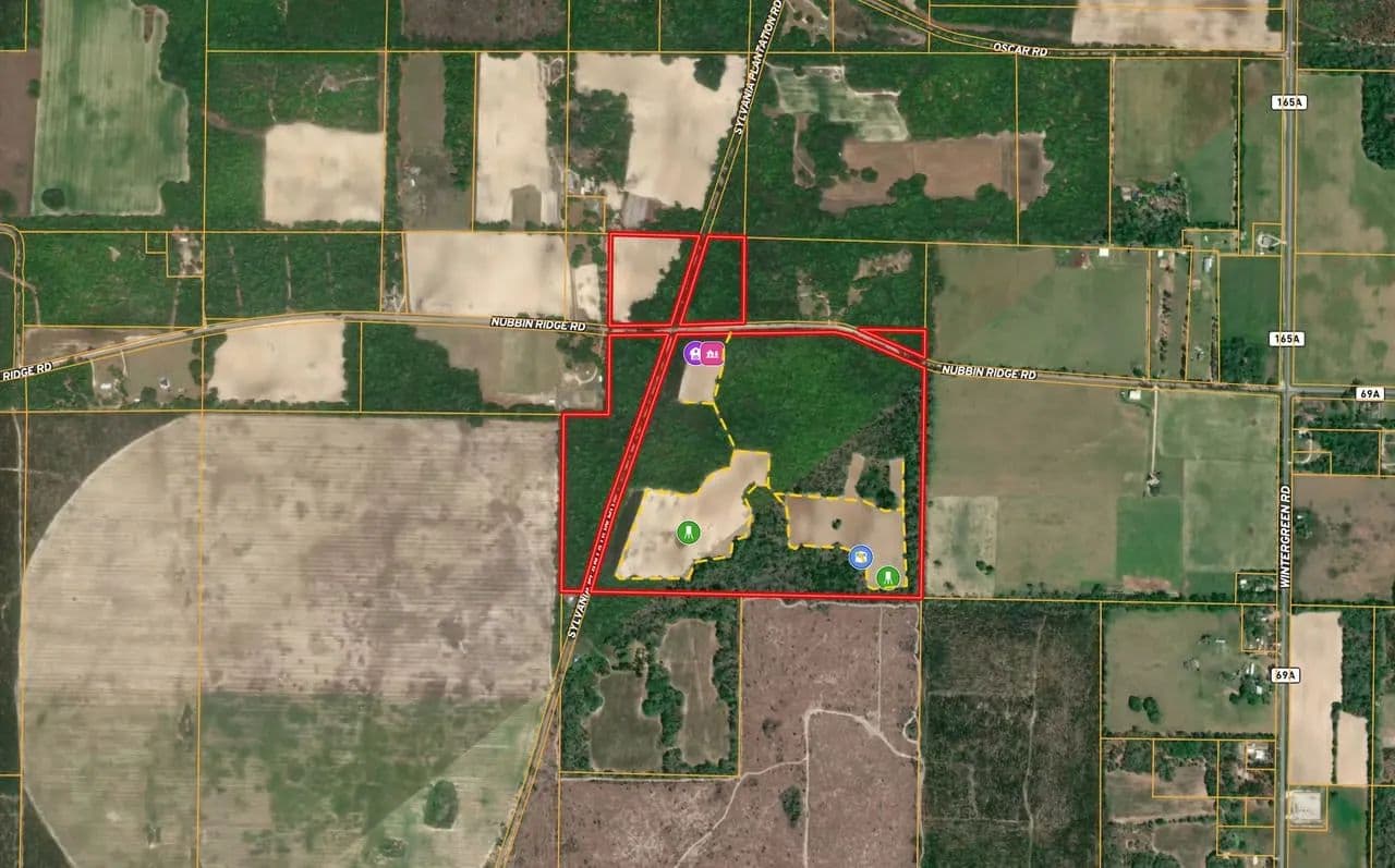 The property sits on all four sides of an intersection along Nubbin Ridge Road and Sylvania Plantation Road. A gated and fenced entrance provides security and privacy, and the internal road system allows the property to be used efficiently from corner to corner.