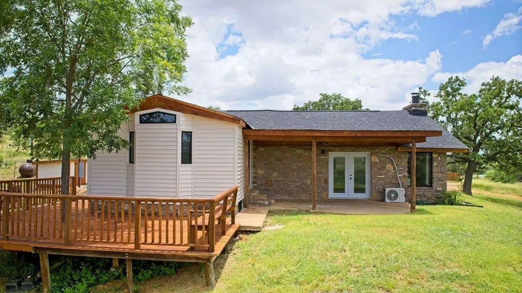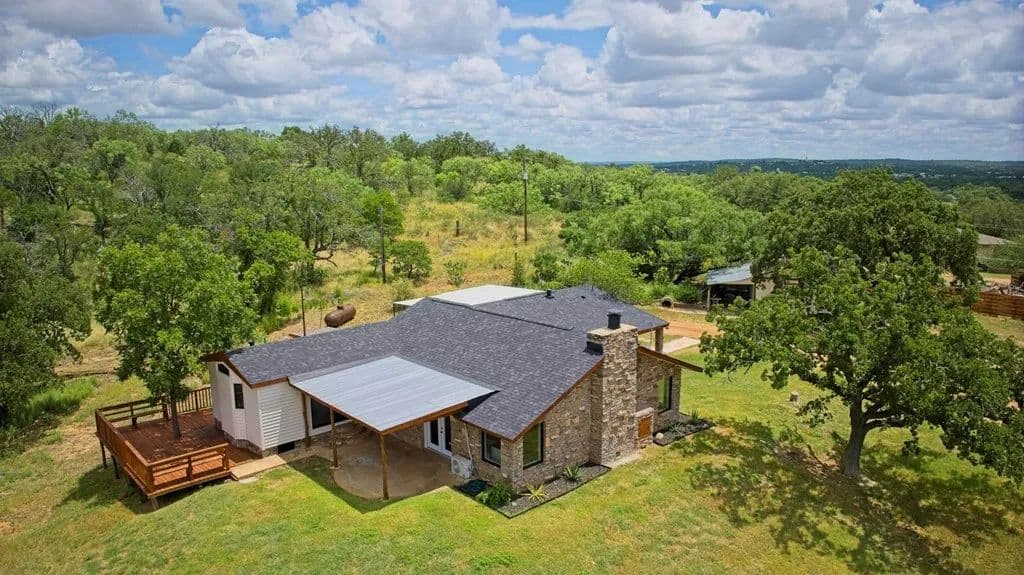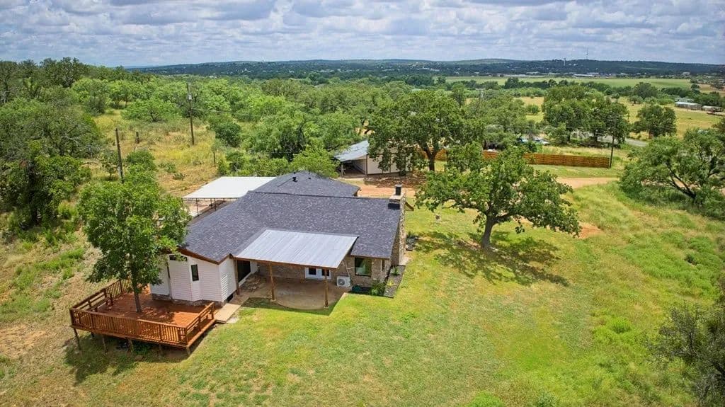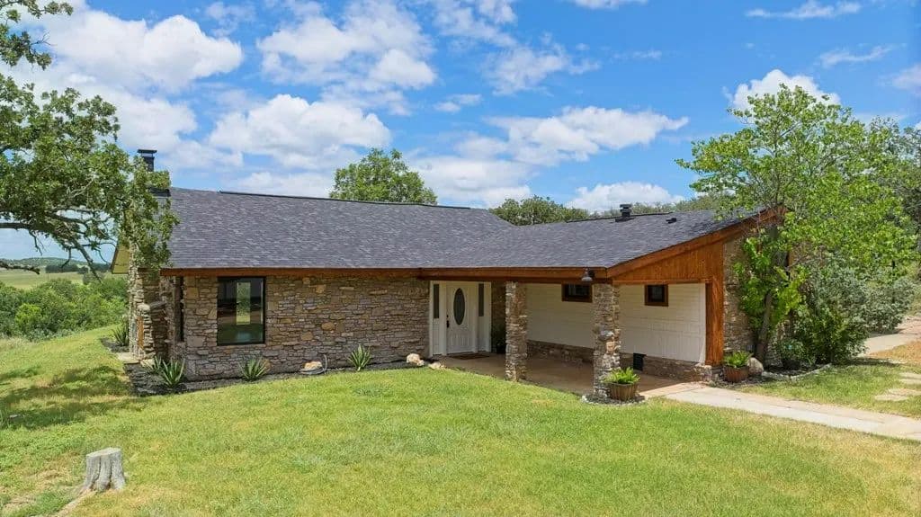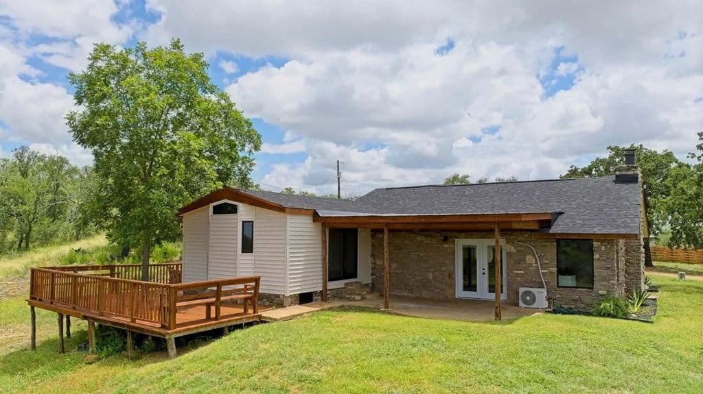 Just outside the Mason city limits, this updated 3-bedroom, 2-bath home offers the space and privacy of acreage living with the convenience of city services, including trash pickup. Situated on 1.75 acres and bordered by open land, the property provides a peaceful setting only minutes from downtown. The remodeled interior features a rock wood-burning fireplace, custom bar, and abundant natural light from large windows that showcase Hill Country views. An expansive deck with built-in seating extends the living space outdoors and is ideal for entertaining or quiet evenings under the stars. A separate bonus structure offers flexible use as guest quarters, a home office, or studio. Move-in ready with room for gardening, animals, recreation, or future improvements, this property presents a rare opportunity to enjoy country living with close proximity to town.