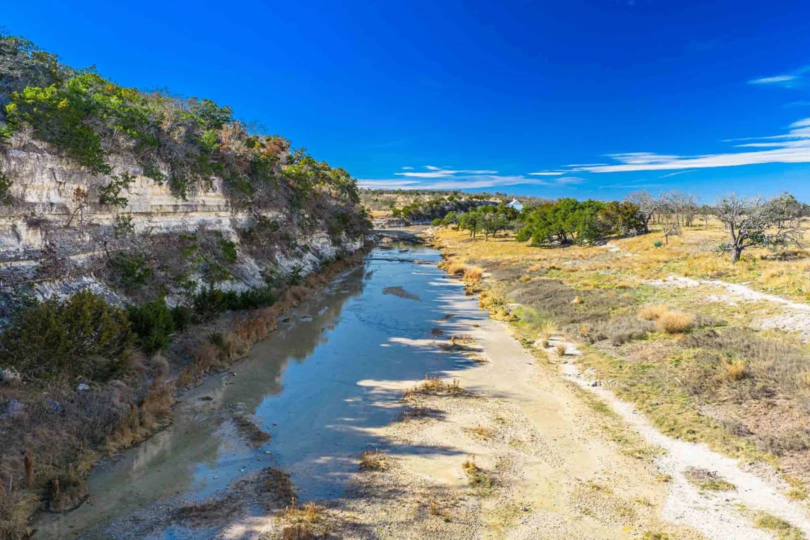 The ranch showcases approximately 440’± of frontage on both sides of the Pedernales River, offering a tranquil stretch of water beneath an impressive limestone bluff. This is a shallow section of the river with a predominant rock bottom. The combination of river and bluff enhances the property’s character, creating a serene backdrop and attracting native wildlife.