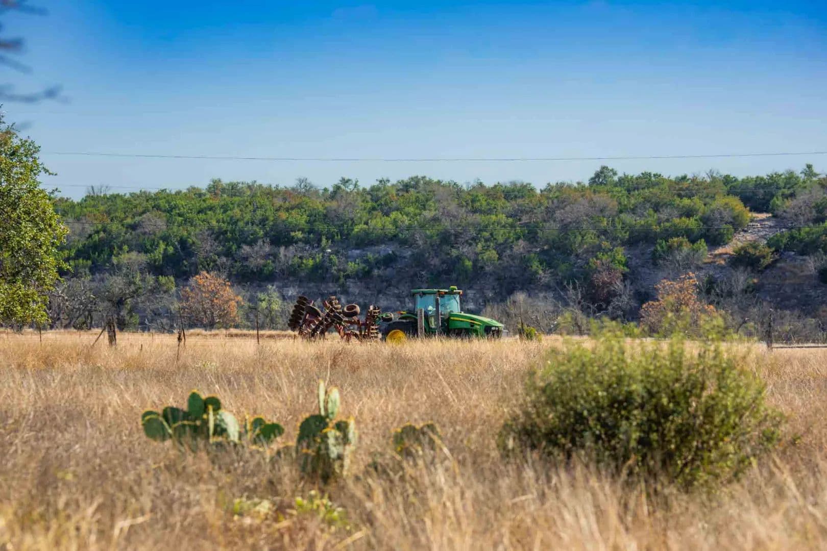 The property features gently rolling terrain with approximately 19± acres of productive hay fields and well-maintained native pastures. Selective cedar clearing over the years has allowed native grasses to thrive and encouraged the growth of hardwoods, including live oak, post oak, pecan, and cedar elm. A particularly inviting area of the ranch is dotted with magnificent cedar elms, offering a potential homesite with elevated views of the dramatic limestone bluff and the Pedernales River below.