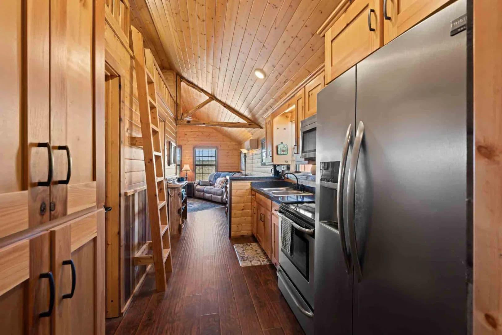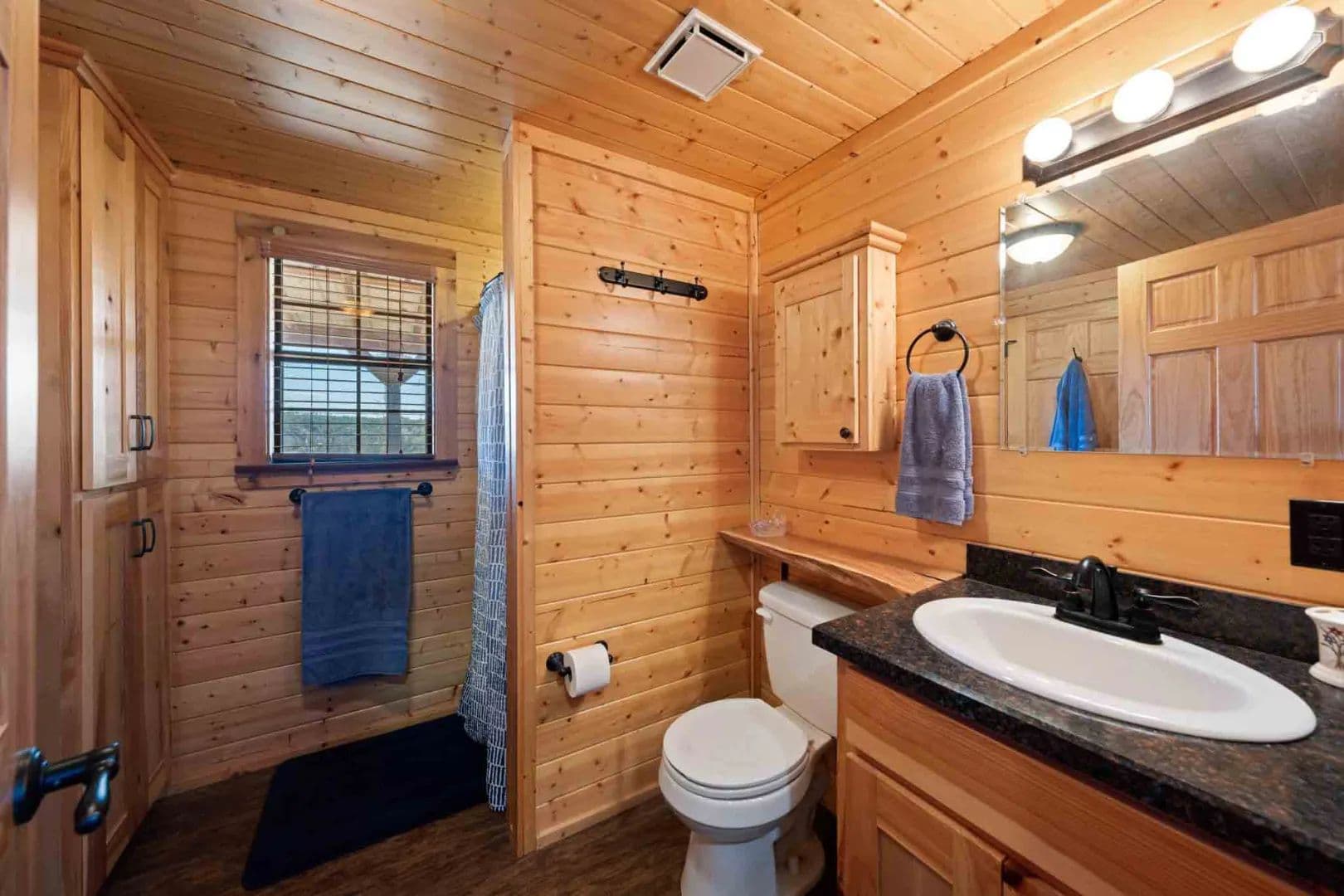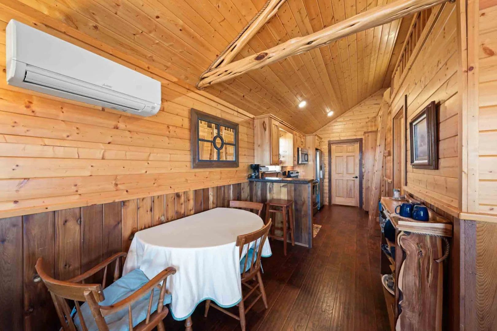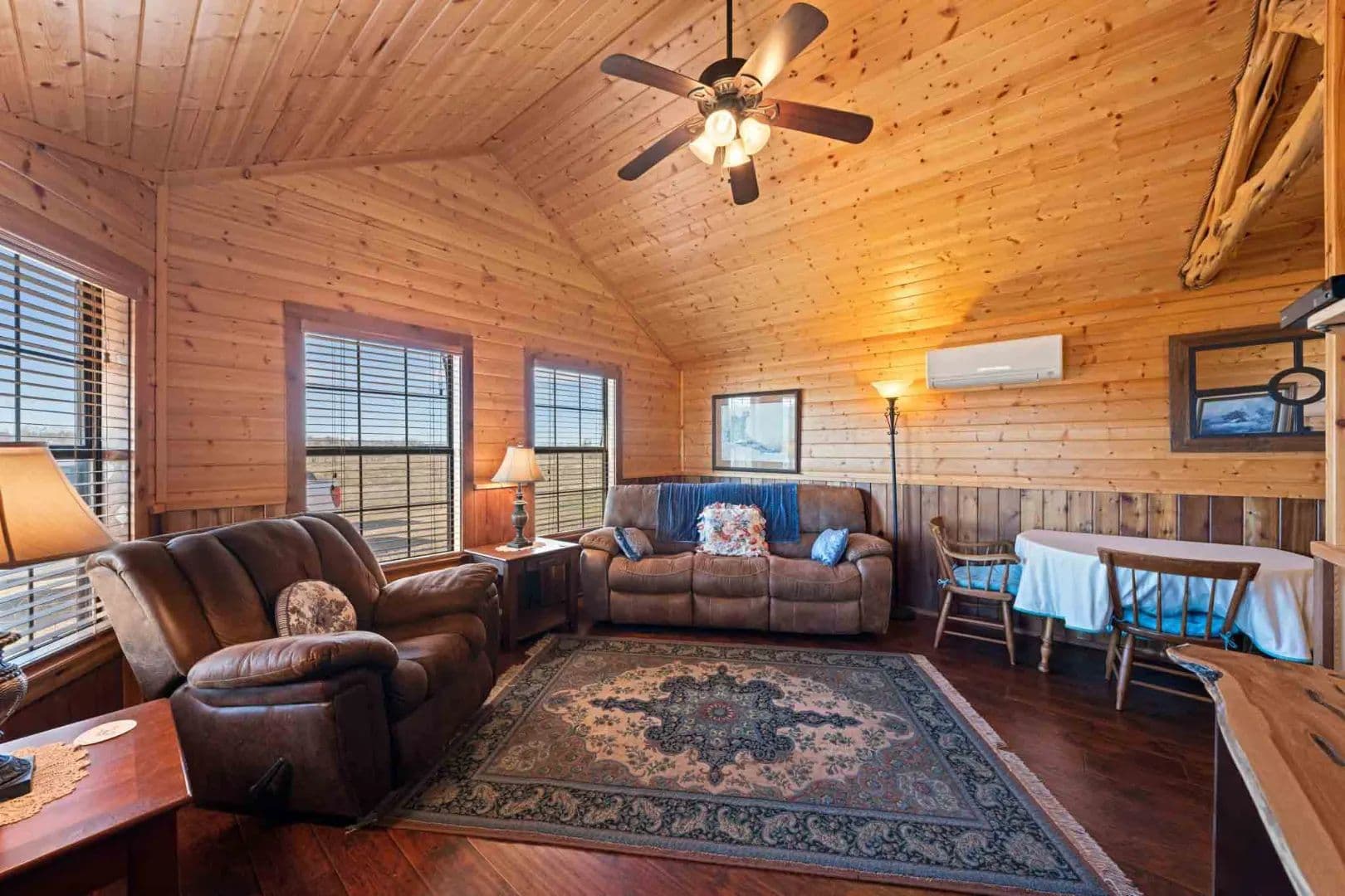 Throughout the cabin, wood accents—including a wood-paneled ceiling—add character and a cozy, rustic feel. This well-appointed cabin offers flexible, comfortable space, well-suited for personal use or guests. The cabin also has a metal roof.