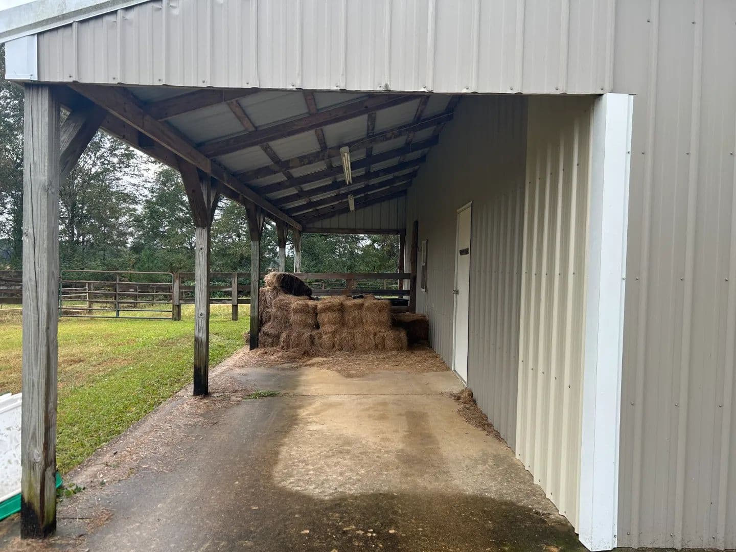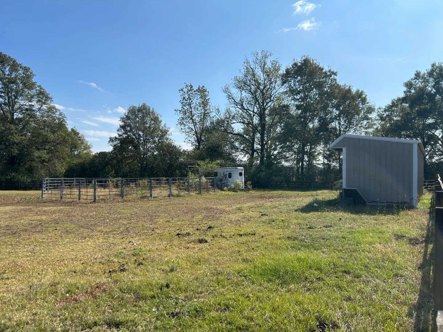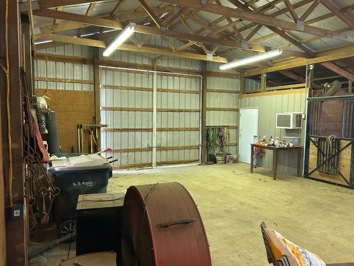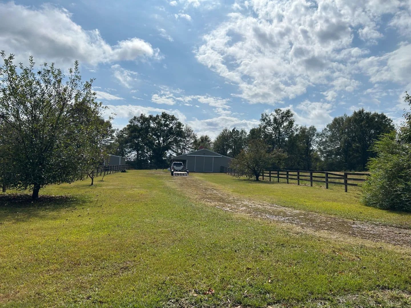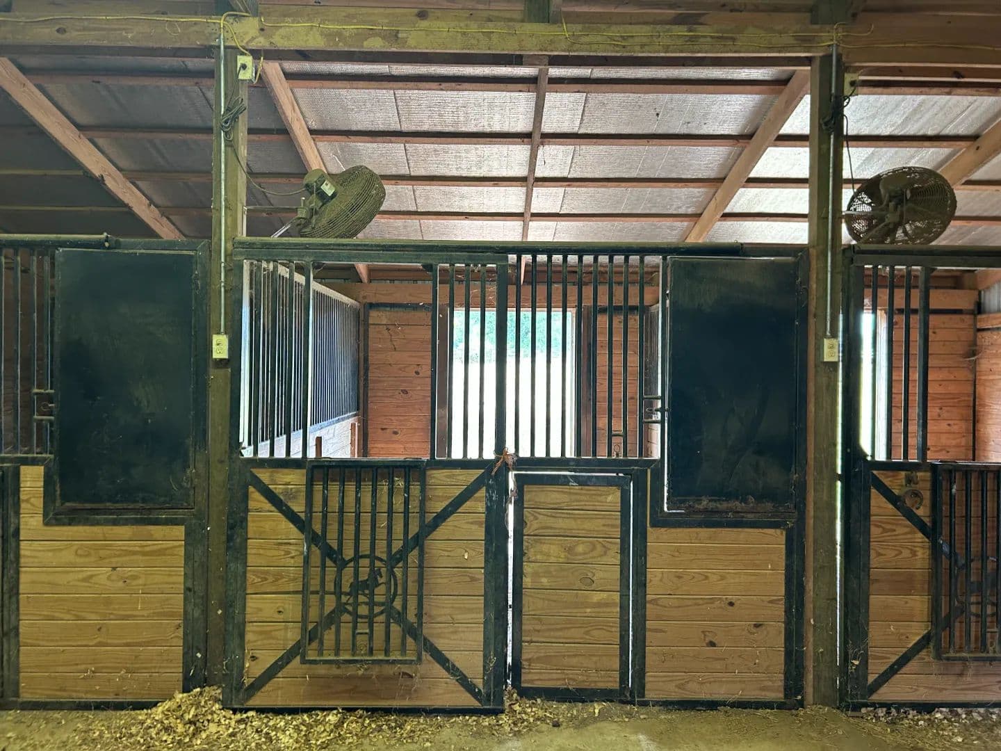 As you arrive at the property, you will notice the horse barn with horses currently enjoying the pasture area. The three-stall barn features concrete floors, a storage room, and one 1⁄2 bath. The pasture area encompasses a little over 2.5 acres with a three-rail wood fence.