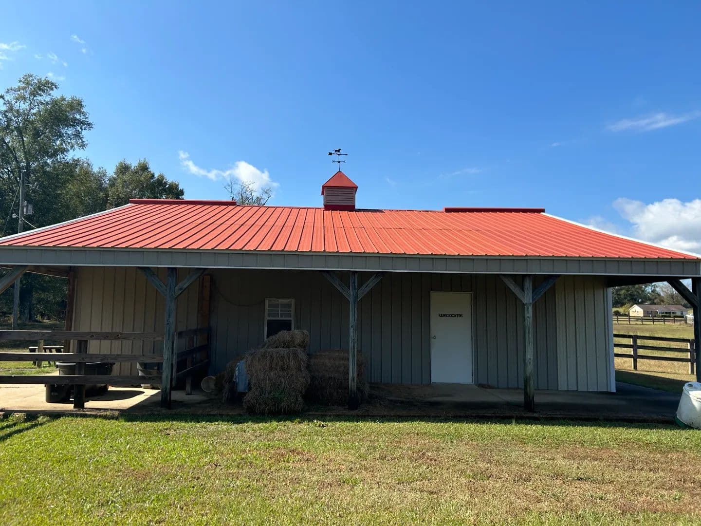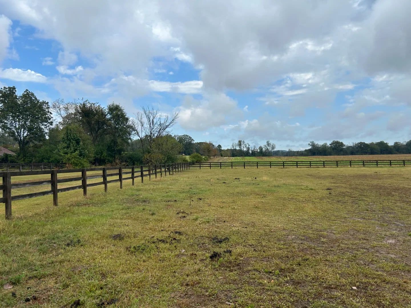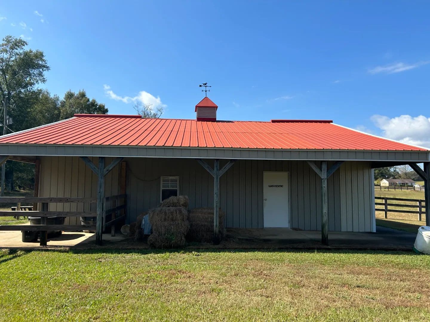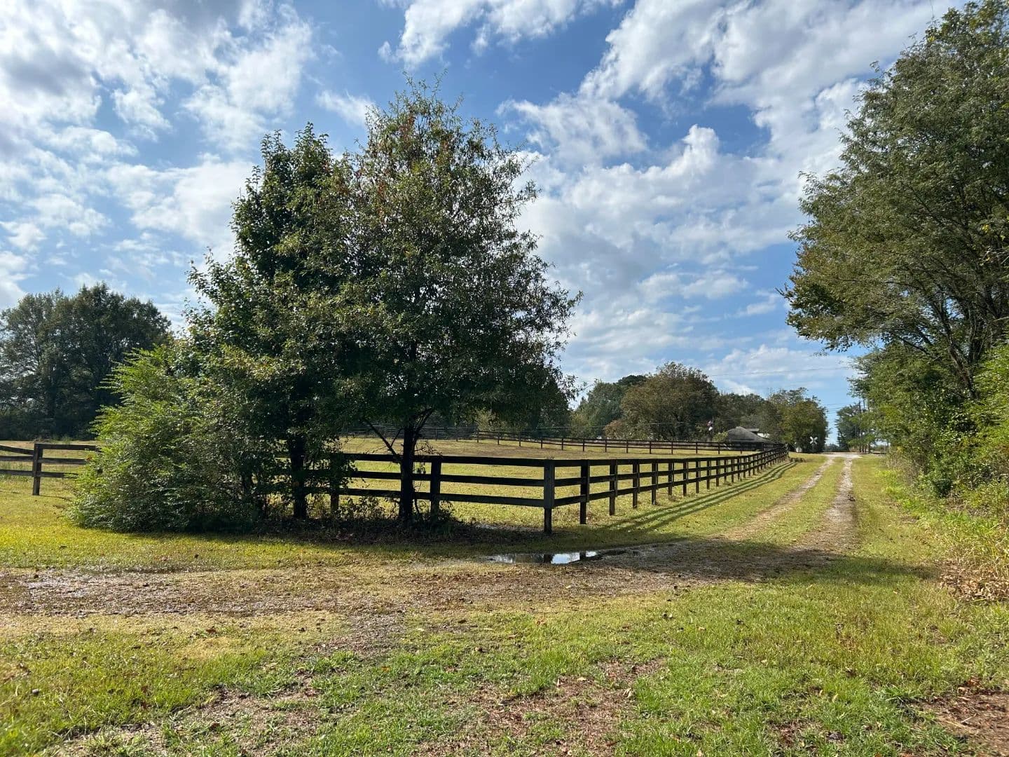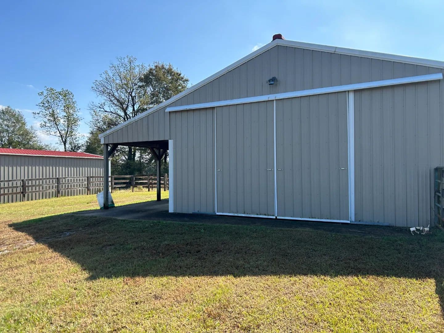 As you arrive at the property, you will notice the horse barn with horses currently enjoying the pasture area. The three-stall barn features concrete floors, a storage room, and one 1⁄2 bath. The pasture area encompasses a little over 2.5 acres with a three-rail wood fence.