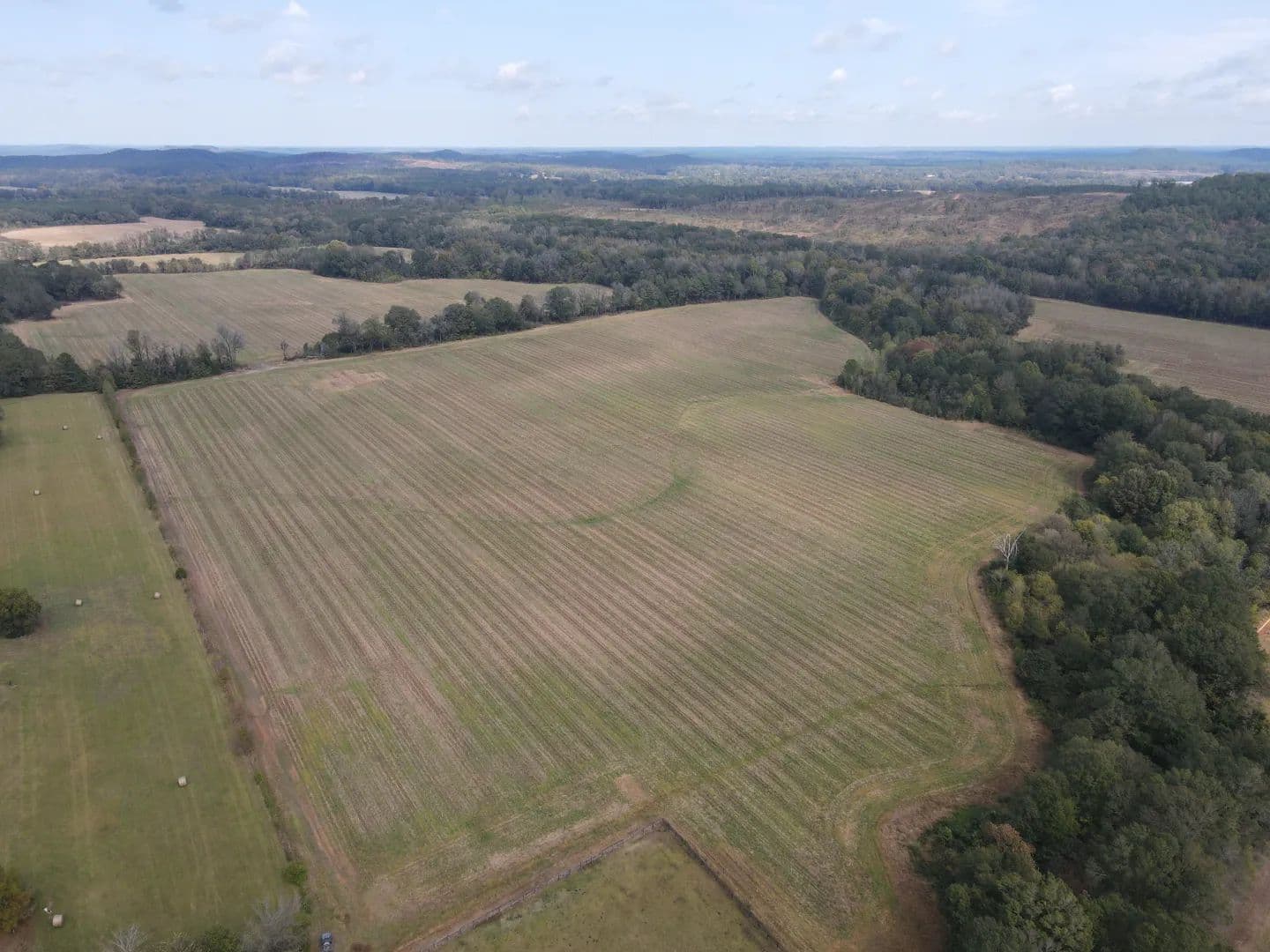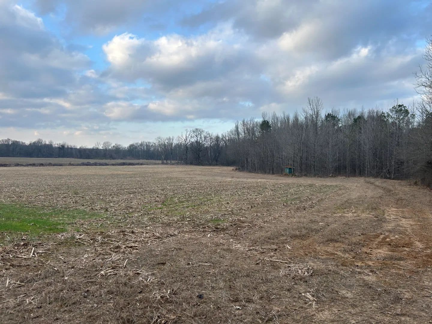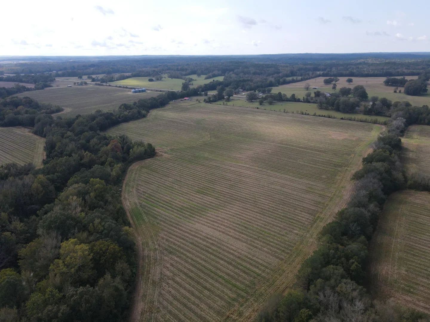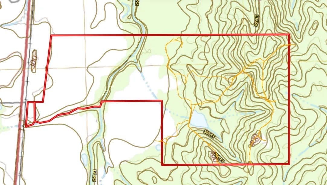 After crossing the low water at the creek, you will access the timbered area, which is the eastern portion of the property. The timber make-up is mostly a mature mixed pine/hardwood stand offering the perfect diversity for a deer and turkey tract. You will find an excellent road system allowing you to reach most areas of the property. Wildlife plots are scattered about with opportunities to hunt every wind direction. From a turkey hunting standpoint, they can’t not be in there—big timber, big ridges, big bottoms, and open ground...it’s the recipe you want! There is also a small pond within the timber area that is full of bass. Lastly, a 18± acre farmland area is on the east side of the creek that you could leave in production or convert to a monster wildlife plot.