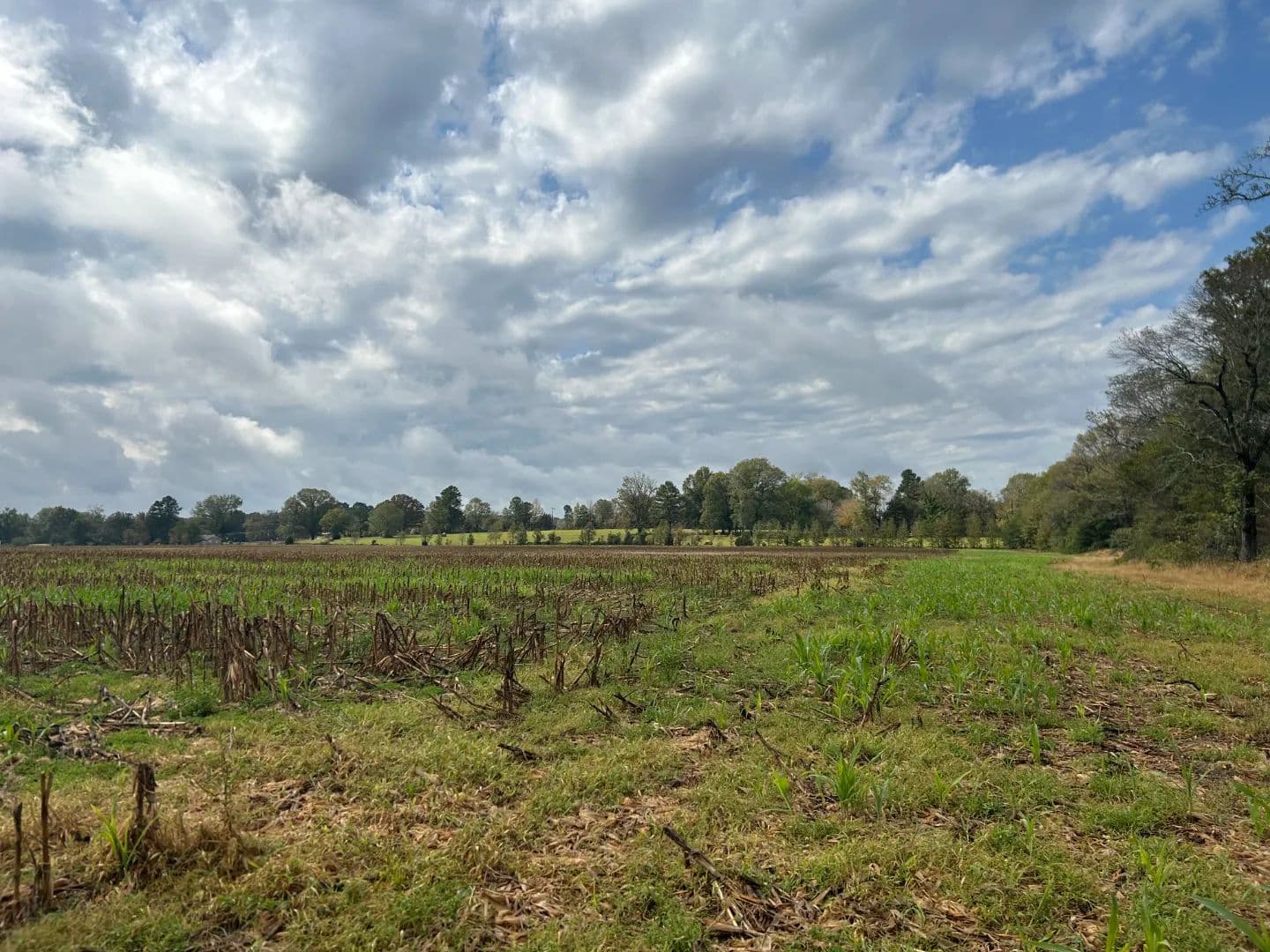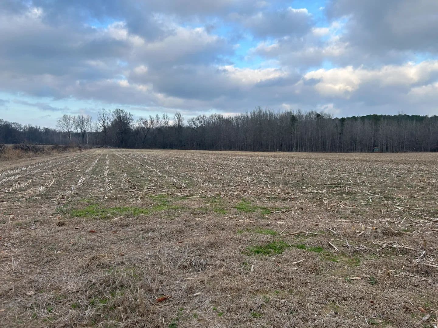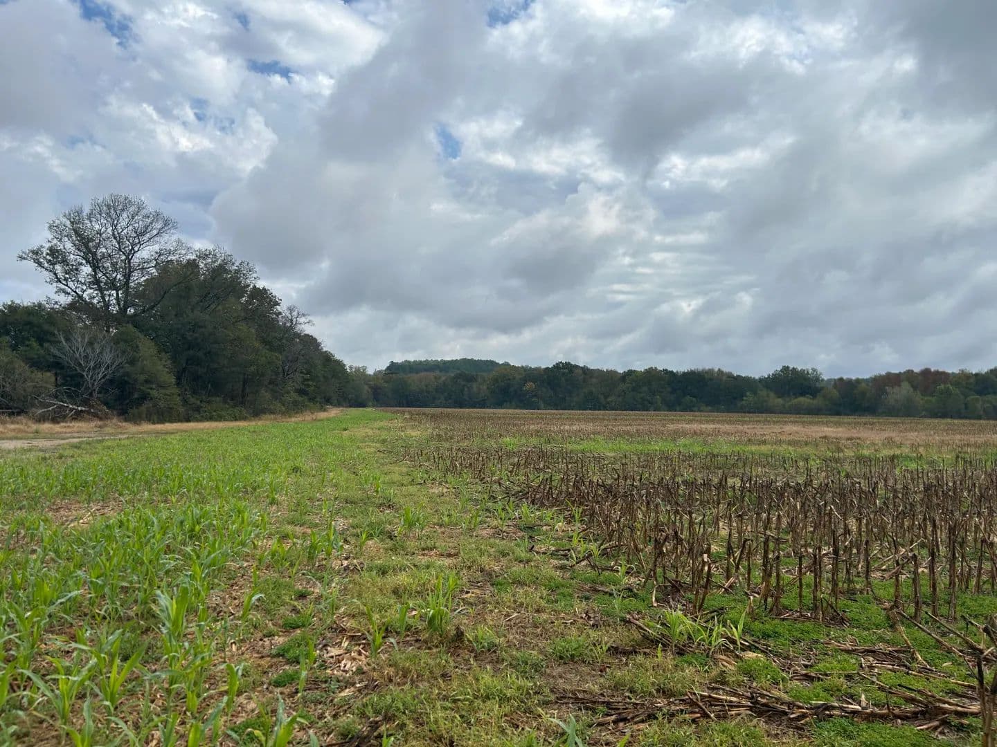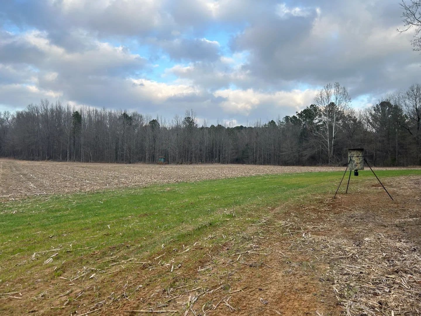 After crossing the low water at the creek, you will access the timbered area, which is the eastern portion of the property. The timber make-up is mostly a mature mixed pine/hardwood stand offering the perfect diversity for a deer and turkey tract. You will find an excellent road system allowing you to reach most areas of the property. Wildlife plots are scattered about with opportunities to hunt every wind direction. From a turkey hunting standpoint, they can’t not be in there—big timber, big ridges, big bottoms, and open ground...it’s the recipe you want! There is also a small pond within the timber area that is full of bass. Lastly, a 18± acre farmland area is on the east side of the creek that you could leave in production or convert to a monster wildlife plot.