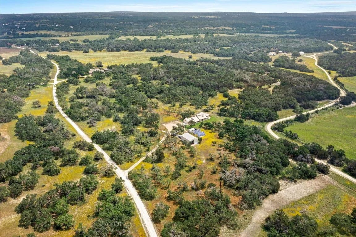 ZILLOW SHOWS INCORRECT BOUNDARY LINES. UNRESTRICTED! the serene beauty of this gentlemen's ranch, adjacent to 1000 acre ranch, nestled in the heart of Blanco, Texas, and spread across over 15 picturesque acres. This enchanting property is adorned with vibrant wildflowers and numerous native trees, creating a natural haven for wildlife viewing. The comfortable one-story ranch home features a large kitchen and walk in pantry and 3 bedrooms and 2 full baths with office/flex room. lots of natural light through the numerous windows and clerestory windows allow for airflow in living and primary bedroom. Two fireplaces for those cold Texas nights. Jetted tub in primary bathroom. The house has durable concrete floors and a generous primary suite with an en-suite bath, leading to a private patio—your own secluded retreat. Enjoy the outdoors from the comfort of your partial wrap-around porch that surrounds the home, perfect for relaxing and taking in the scenic views. For those with a passion for projects or hobbies, the property includes a versatile 30x50 RV barn with workshop complete with electric, water, and a carport and RV hookup, offering ample space and convenience. Equestrian lovers will appreciate the allowance for horses, making this ranch an ideal spot for both relaxation and recreation. Additionally, the presence of solar panels, 2750 gallon water tank and a stand by propane generator (total 750 gallon propane tank capacity in two tanks), underscores a commitment to sustainable living, blending modern efficiency with rustic charm. PEC bills are incredibly low and excess power can be sold back to PEC. Embrace a lifestyle of tranquility and connection with nature in this exceptional Blanco ranch. Wildlife Valuation for lower taxes. Convenient to Austin, San Marcos, Fredericksburg and San Antonio. Sprinklers in yard, water softener and an outdoor shower. Washer/Dryer may convey.