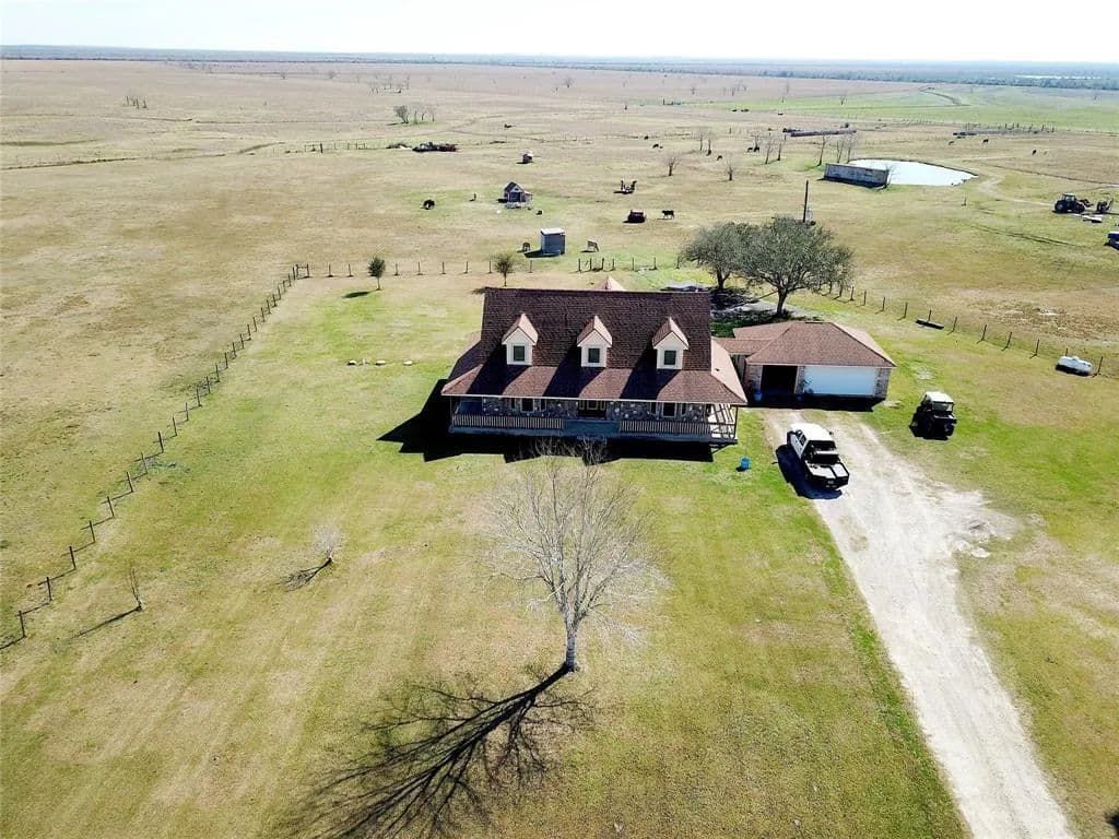 Dreaming of living on a ranch away from the hustle and bustle of the city? Well here's your chance to own a 320 acre parcel that sits less than 100 miles from Downtown Houston. The 2,275 sqft 3 bed/2.5 bath ranch style custom home has been recently remodeled and ready for the new owners personal touches. Highlights of the home include oversized primary bed/bath and huge his/her walk in closets, custom cabinets throughout, 20ft high ceiling in living area, wood grain tile flooring, large kitchen with island and an abundance of counter space. The entire property is completely fenced & the owner has carefully laid out the cross fencing to strategically set up 7 separate pastures all connected to a center alleyway to easily move cattle between grazing areas. Underground lines provide water to holding tanks accessed from each enclosure. For the outdoorsman, this property can be irrigated by a private water canal & sits in the middle of some of the best waterfowl hunting in Southeast Texas.