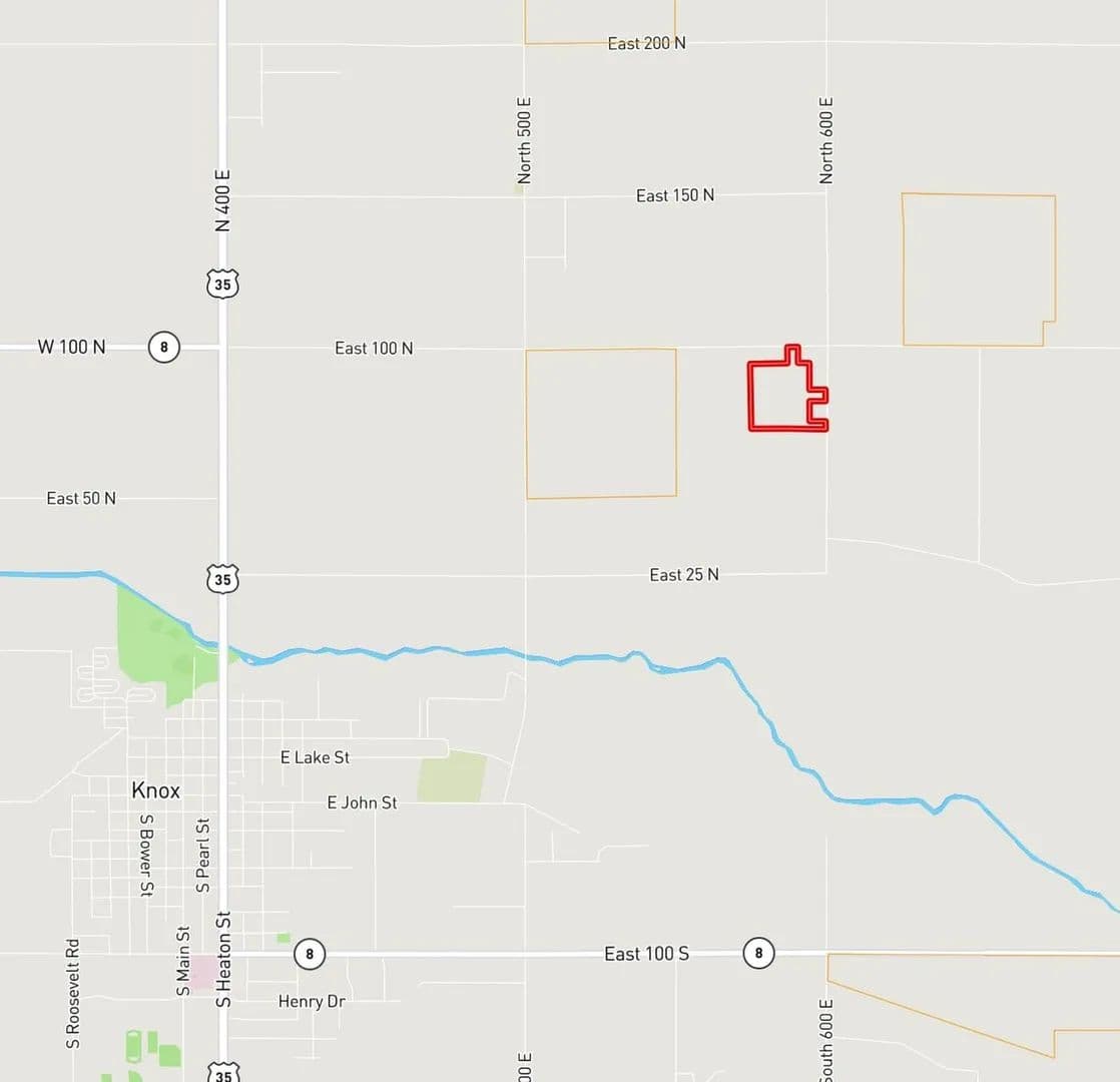 This 30± acre recreational property is located just northeast of Knox, Indiana, in Starke County. The tract offers excellent accessibility with road frontage on both 100 N and 600 E, providing multiple access points.