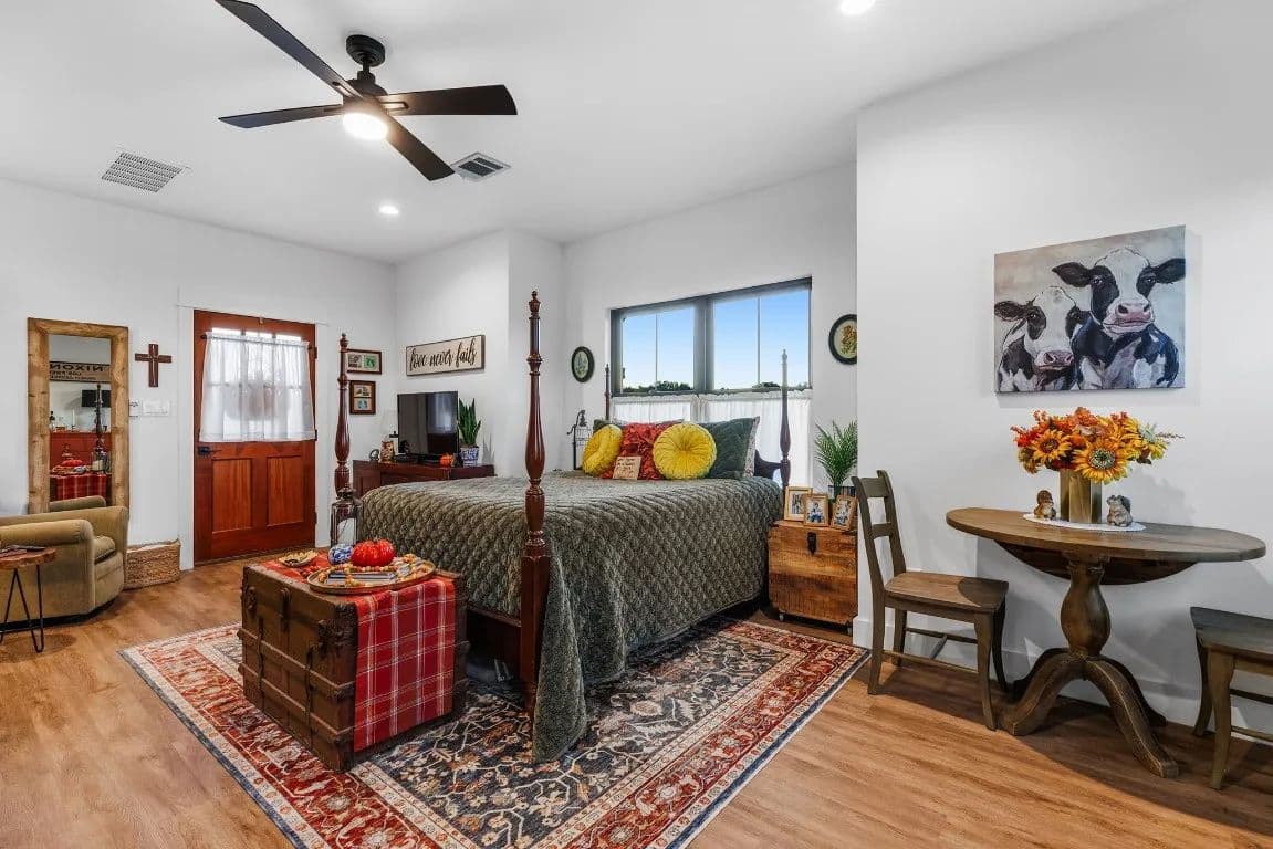 closet—perfect for guests or a home studio. The luxury primary suite includes a spa-like bath and an oversized walk-in