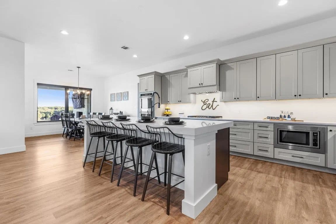 blend of luxury and country living, sitting on 10 acres with breathtaking hill country views. The open-concept kitchen,