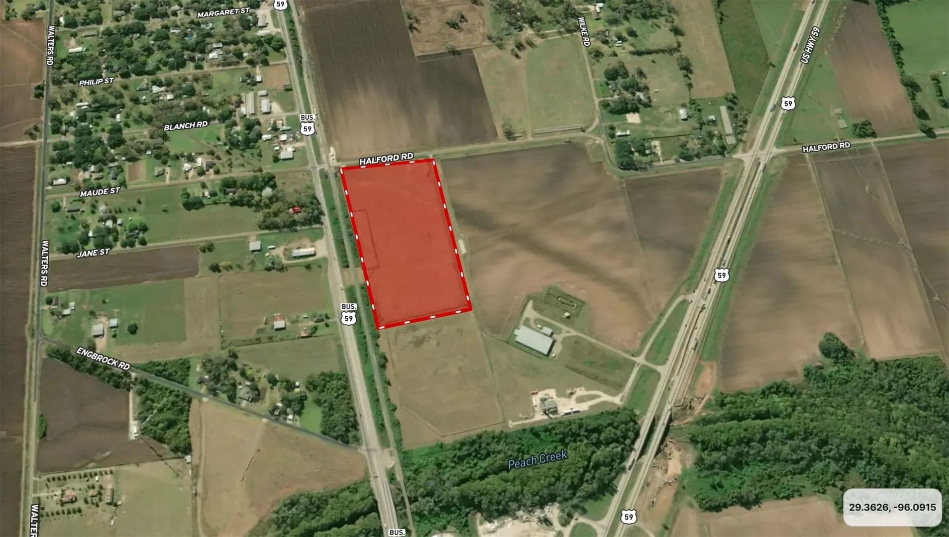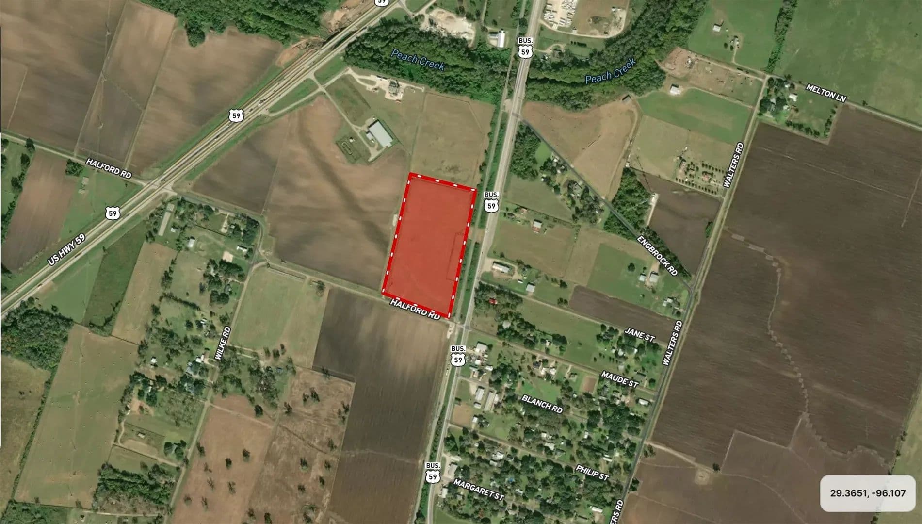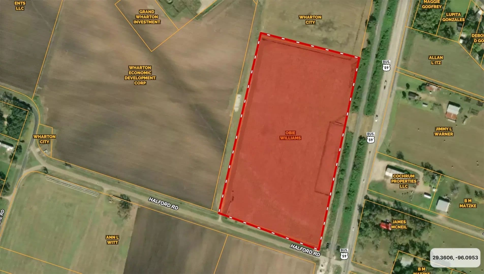 Discover 14+ acres of prime real estate located at the corner of CR 222 (Halford) and Business US 59 in Wharton, TX. With the railroad running along its eastern boundary and boasting approximately 585 feet of frontage on CR 222, this property offers exceptional access to both Bus 59 and US 59/I-69, placing it in an ideal location for industrial, warehouse, or logistics operations. This parcel benefits from available public water, sewer, and 3-phase electric, providing the infrastructure needed for seamless development. The land is currently being used for hay production and enjoys an Ag exemption, making it a lucrative investment. Additionally, it is situated in a designated Opportunity Zone. For those seeking more development potential, Wharton Economic Development Corporation (EDC) owns the neighboring property to the west, which is also available for sale, enabling you to expand your vision into a larger-scale project.